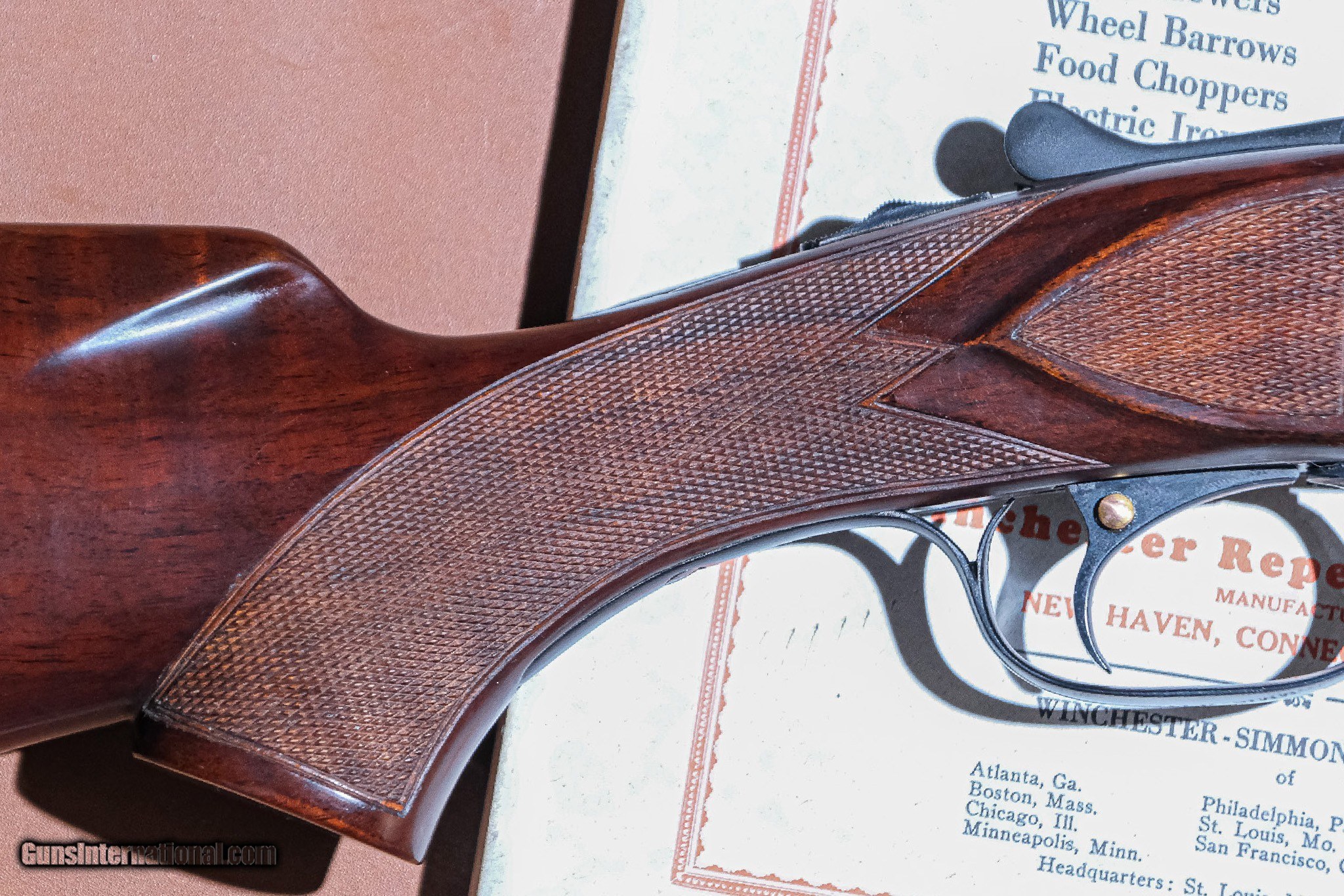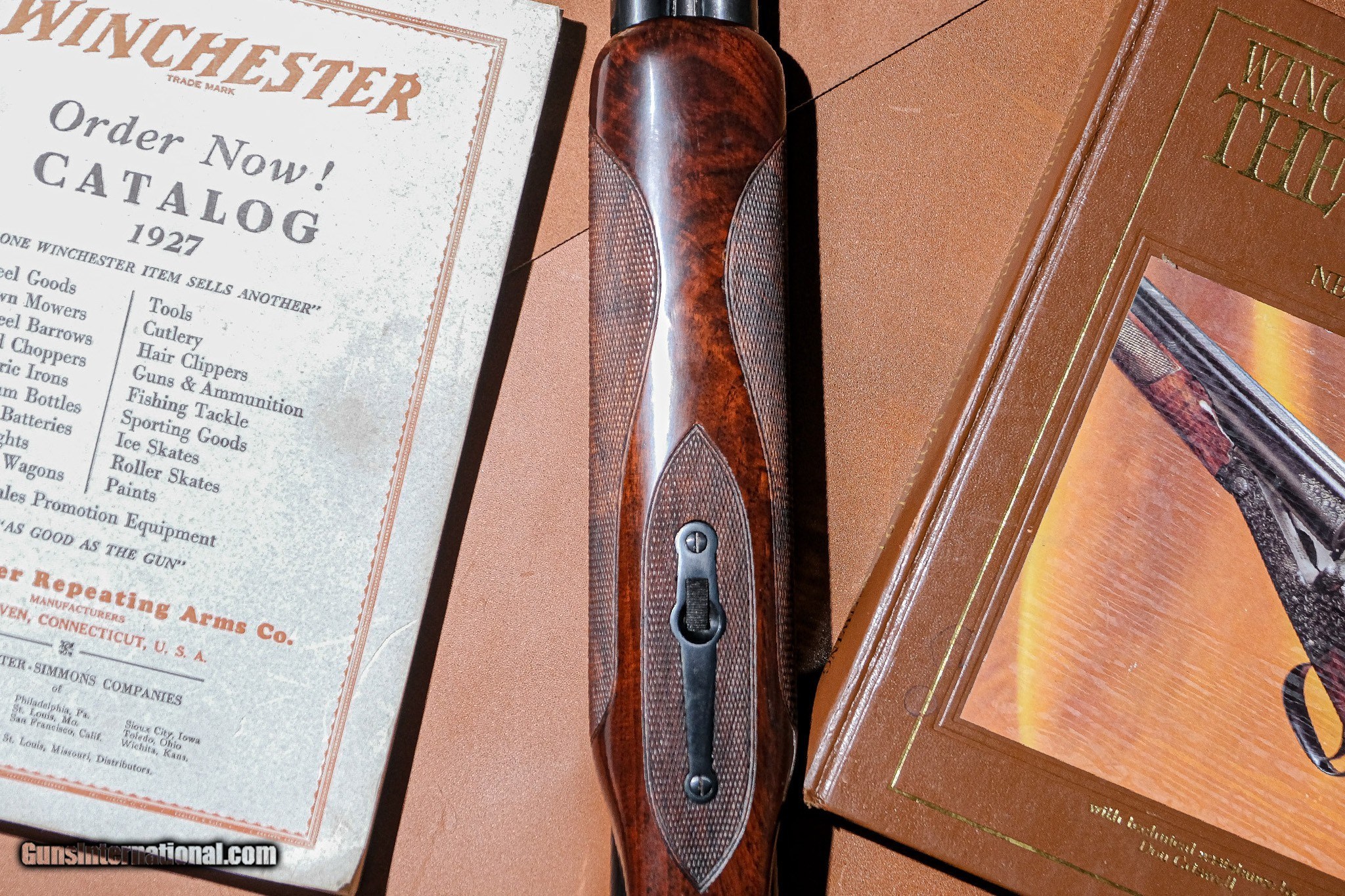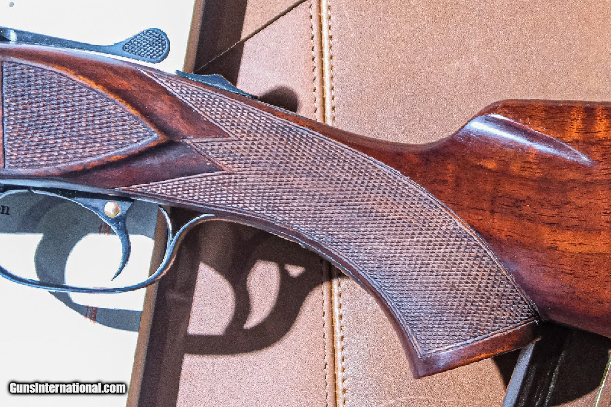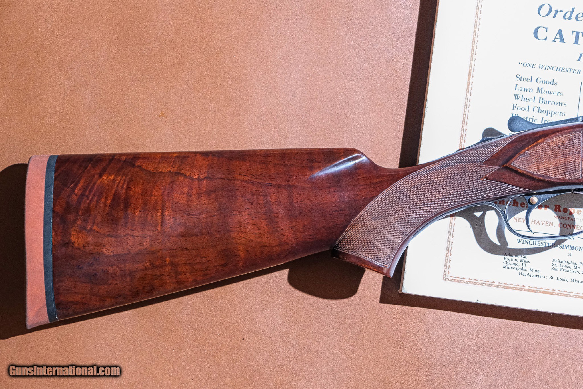 Description: Winchester - Model 21, SxS, Trap Grade, 12ga. 30" Vent Rib Barrels Choked F/F. 2 ¾” chambers, single selective trigger, automatic ejector, kidney style checkering with checkered side panels and three-point checkering on stock, Winchester pad, pistol grip. This is a rare factory vent rib gun. Highly figured wood. 99% blue, wood finish, and checkering. Perfect pins and screws. This is a rare configuration. Warrantied for life to the original owner courtesy of Connecticut Shotgun. Inv: 90656 7 lbs. 13 oz. 14" x 1 3/8" x 1 7/8" $7,995.00 CT Shotgun/Galazan buys sells and trades the world’s largest inventory on Model 21 shotguns. we are experts in all phases of buying, selling, and repairing as well as restoration of these very complex guns we have handled more Model 21 in all regards than all other companies put together. we have bought sold and manufactured most of the Grand Royal and Grand American grade guns and we understand them intimately. In 1994, Galazan/CT Shotgun purchased the Winchester Custom Shop from U.S. Repeating Arms Company and at that time designated the sole manufacturer and authorized repair for the Model 21, we purchased all of the inventory machining tooling and highly regarded trade secrets in regards to manufacturing and repairing maintaining these intricate shotguns. CT Shotgun/Galazan continues to perform the only authorized factory service on all these fine guns if you are interested in purchasing repairing or altering a Model 21 we should be your sole source when it comes to a Model 21 every gun we sell is serviced and inspected, comes with our lifetime warranty. CT/Galazan also has all assorted accessories, original style cases and recoil pads. WHY BUY A MODEL 21? 1. No one knows the gun better than us. 2. We are the only authorized repair facility for Model 21s. 3. We build the new Winchester Model 21. 4. We build the CSMC Model 21. 5. Every gun receives a safety inspection before sold to a customer. 6. Most guns are detailed, cleaned & lubricated and any parts charged to make them as factory new. 7. Fair honesty, reputable dealing for over 50 years. 8. Very competitive pricing. If you compare our guns to any other gun on the market, you will find in most instance that our guns are the best value. The best are brought up to factory specs which, in some cases, can be more than the gun. 9. The largest collection of Model 21s in the world. 10. Why any Model 21 SxS you buy from us; we offer a lifetime mechanical warranty. The largest, most diverse, high-grade shotgun and firearms inventory in history. There is no one even close and a service department to back up everything we sell with our unparalleled warranty to support our customers exclusively. If someone tells you they have a larger inventory, just look for yourself. Price: $7,995.00 Contact Seller |