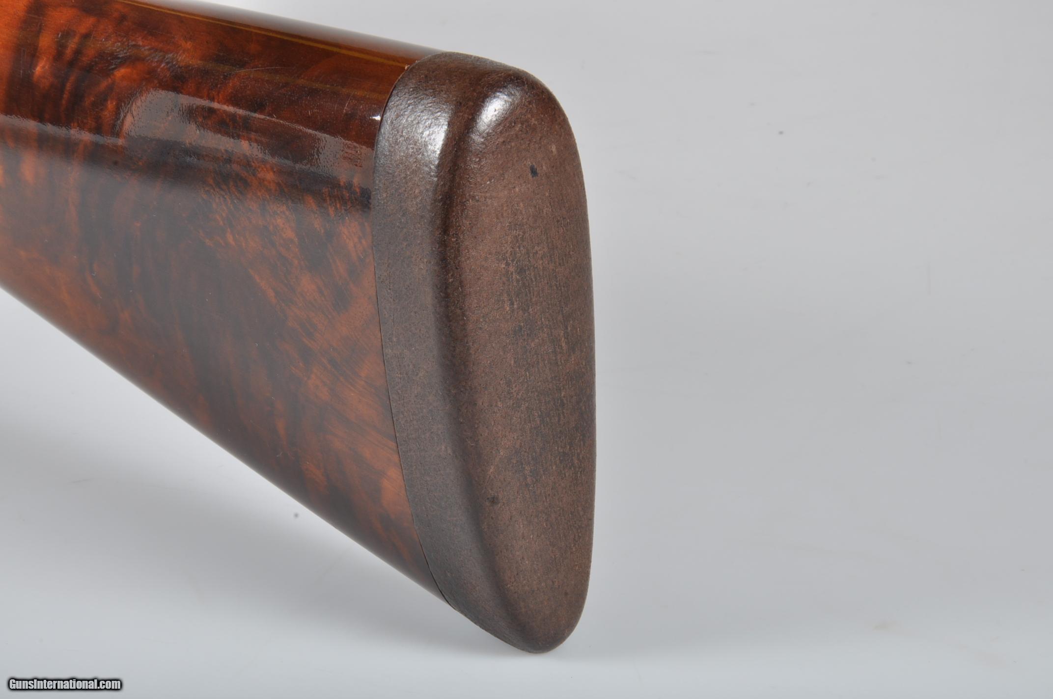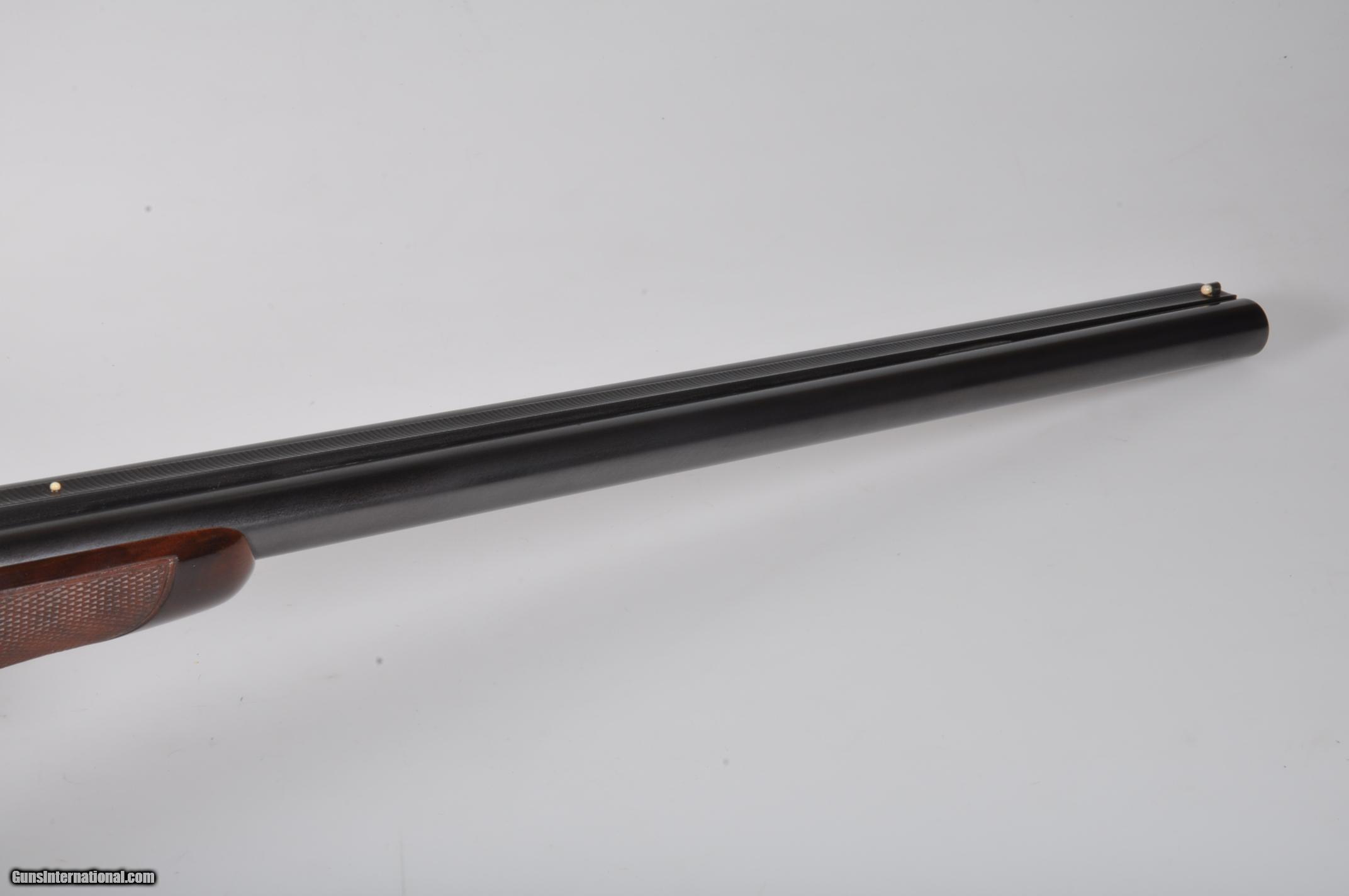 Description: 20 gauge, 26″ barrels, 2 3/4″ chambers. Chokes are marked WS-1 right, WS-2 left and measure +.014 right and .006 left. Full length matte rib with dual white beads. Bores are bright and shiny. Floorplate is marked TOURNAMENT SKEET. Single selective trigger, automatic ejectors, non-automatic safety. Nicely figured straight grip stock checkered in three point pattern with a 14 3/4” length of pull over a leather wrapped recoil pad. Beavertail forearm with roll type release checkered in “Kidney” pattern. Condition: Excellent as completely and professionally refinished. Metal and wood are near 100%. Drop at comb: 1 1/2”. Drop at heel: 2 1/4”. Weight: 6.6 lbs. Mechanics are excellent. We prefer to communicate by email. We can not accept credit cards for collectible firearms. 100% Of your purchase price is funding our Medical Clinics in Malawi Africa, See OrantCharities We have more than 500 Winchester Model 21s in stock in every grade and gauge. We also have hundreds of Parkers, Fox and LC Smith Shotguns so feel free inquire other fine shotguns. SOLD Manufacturer: Winchester Model: 21 Tournament Skeet Serial Number: 9047 Chambers: 2 3/4 Ejectors: Yes Barrels: 26 Triggers: SST Gauge Info: 20 Stock: Straight Fore End: Beavertail |