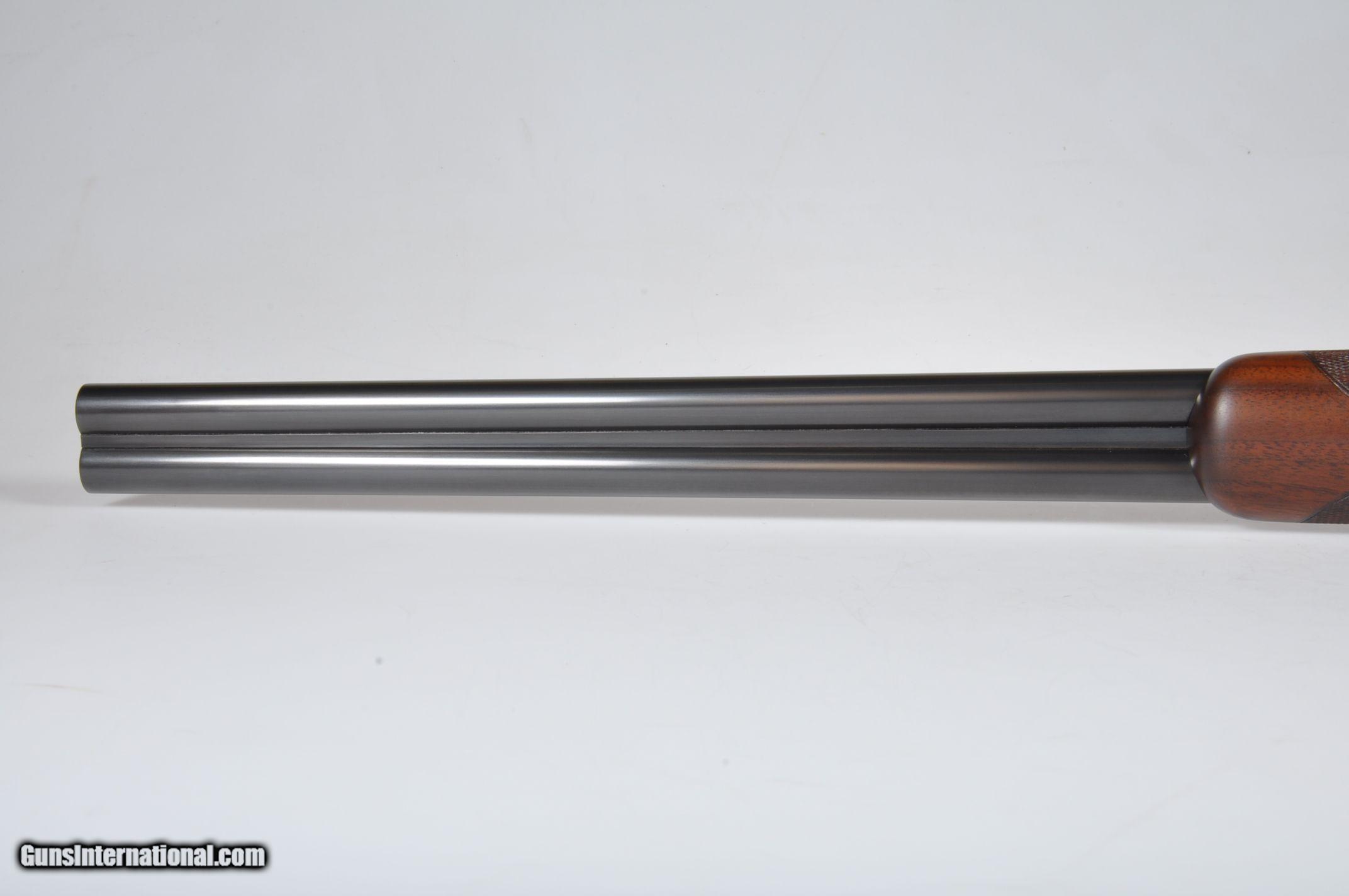Description: 20 gauge, 26″ barrels, 2 3/4″ chambers. Chokes are marked WS-1/WS-2 and measure +.017 right and .009 left. Full length matte rib with silver mid and red front beads. Bores are bright and shiny. Floorplate is marked TOURNAMENT SKEET. Single selective trigger, automatic ejectors, non-automatic safety. Nicely figured straight grip stock checkered in three point pattern with a 14” length of pull over a period correct Winchester recoil pad. Beavertail forearm with roll type release checkered in “Kidney” pattern. Condition: Excellent as completely and professionally refinished. Metal and wood are near 100%. Drop at comb: 1 7/16”. Drop at heel: 1 3/4”. Weight: 6.8 lbs. Mechanics are excellent. If you are looking for a particular Parker Double or Winchester 21 please email me. We have nearly 1,000 in stock of all gauges and grades. We prefer to communicate by email. We can not accept credit cards for collectible firearms. 100% Of your purchase price is funding our Medical Clinics in Malawi Africa, See OrantCharities We have more than 500 Winchester Model 21s in stock in every grade and gauge. We also have hundreds of Parkers, Fox and LC Smith Shotguns so feel free inquire other fine shotguns. SOLD Manufacturer: Winchester Model: 21 Tournament Skeet Serial Number: 5767 Chambers: 2 3/4 Ejectors: Yes Barrels: 26 Triggers: SST Gauge Info: 20 Stock: Straight Fore End: Beavertail LOP: 14 Weight: 6.8 lbs |