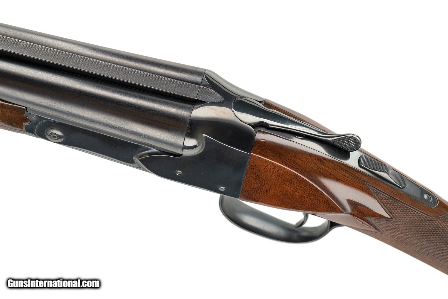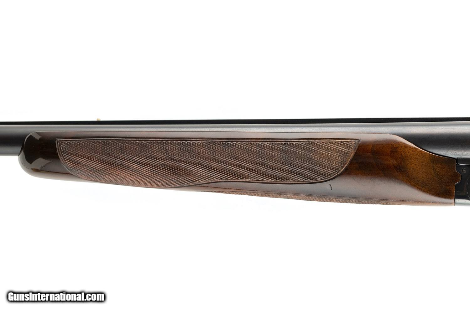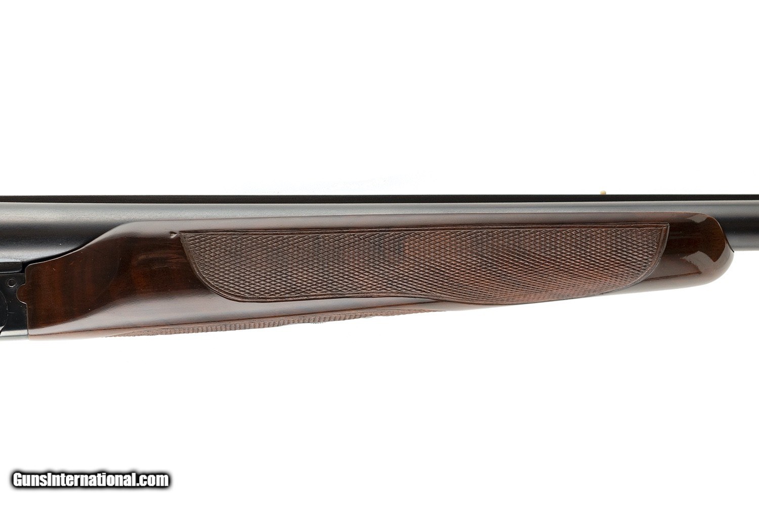Description: #90XX 26" SOLID RIB WS1 AND WS2 (.006 AND .007) 2 3/4" CHAMBERS SINGLE SELECT TRIGGER EJECTORS BEAVERTAIL FOREND ENGLISH GRIP EXCELLENT CONDITION WITH SOME LIGHT HANDLING LEATHER COVERED PAD 6LBS 8 OZ 2 1/16" DAH 1 1/2" DAC 14 3/4" LOP SOLD |