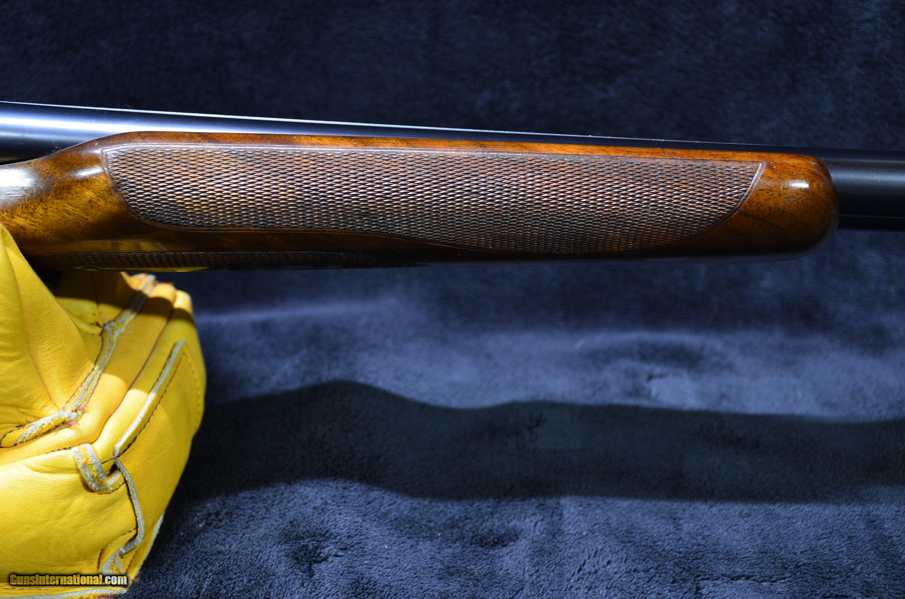 Description: A beautiful Winchester Model 21,Tournament Skeet - Mfg.1936 in original condition. According to the Cody Firearms Museum this firearm was made for: Winchester San Francisco. This shotgun has a little history, it then made it's way to Kerr's Sporting Goods, a perennial favorite of residents of Beverly Hills. This was the era when Hollywood stars were shooters & hunters. Shotgun is tight as a drum and shoots beautifully. SOLD Curio/Relic: Yes Manufacturer: Winchester Model: 21 Serial Number: 10466 Chambers: 2-3/4 Ejectors: Selective ejector Condition: 95% Metal Condition: 95% Wood Condition: 95%- Tournament Grade Bore Condition: excellent Barrels: 26 Action: SxS Triggers: Single Gauge Info: 12 Stock: Pistol Grip Stock Comb: Drop-1-5/8 Stock Heel: Drop- 2-1/2 Fore End: Beavertail Butt Pad: No- Wood Checkered LOP: 14 Finish: Blue Weight: 7 lbs. 8 oz. Sights: Front Red - Middle metal Manufacture Date: February 28, 1936 Choke Left: Skeet 2 Choke Right: Skeet 1 |