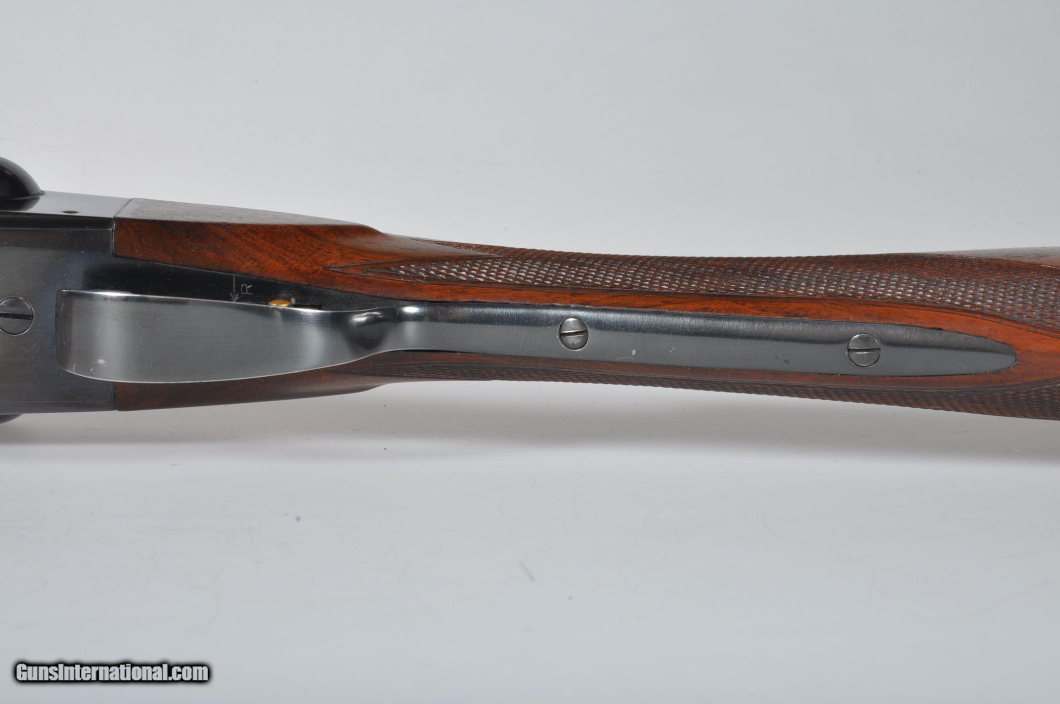 Description: 12 gauge, 30″ barrels, 2-3/4″ chambers. Chokes are marked FULL/FULL and measure .029 right and .033 left. Full length matte rib with dual silver beads. Bores are bright and shiny. Single selective trigger, automatic ejectors, non-automatic safety. Straight grip stock checkered in three point pattern with 14″ length of pull over a Pachmayr Decelerator recoil pad. Beavertail forearm with roll type release checkered in “Kidney” pattern. Condition: Excellent as nearly all original. Metal retains 95-98% original bluing with high point wear, a few light handling marks and some specks of freckling on the barrels. The wood may have been lightly sanded and re-oiled at one point but the checkering is still sharp. There are a few very light handling marks. There is a black spacer at the forearm iron. Drop at comb: 1 7/16”. Drop at heel: 1 7/8”. Weight: 7.6 lbs. Mechanics are excellent. If you are looking for a particular Parker Double or Winchester 21 please email me. We have nearly 1,000 in stock of all gauges and grades. We prefer to communicate by email. We can not accept credit cards for collectible firearms. 100% Of your purchase price is funding our Medical Clinics in Malawi Africa, See OrantCharities We have more than 500 Winchester Model 21s in stock in every grade and gauge. We also have hundreds of Parkers, Fox and LC Smith Shotguns so feel free inquire other fine shotguns. SOLD Manufacturer: Winchester Model: 21 Trap Serial Number: 16783 Chambers: 2 3/4 Ejectors: Yes Barrels: 30 Triggers: SST Gauge Info: 12 Stock: Straight Fore End: Beavertail LOP: 14 Weight: 7.6 lbs |
