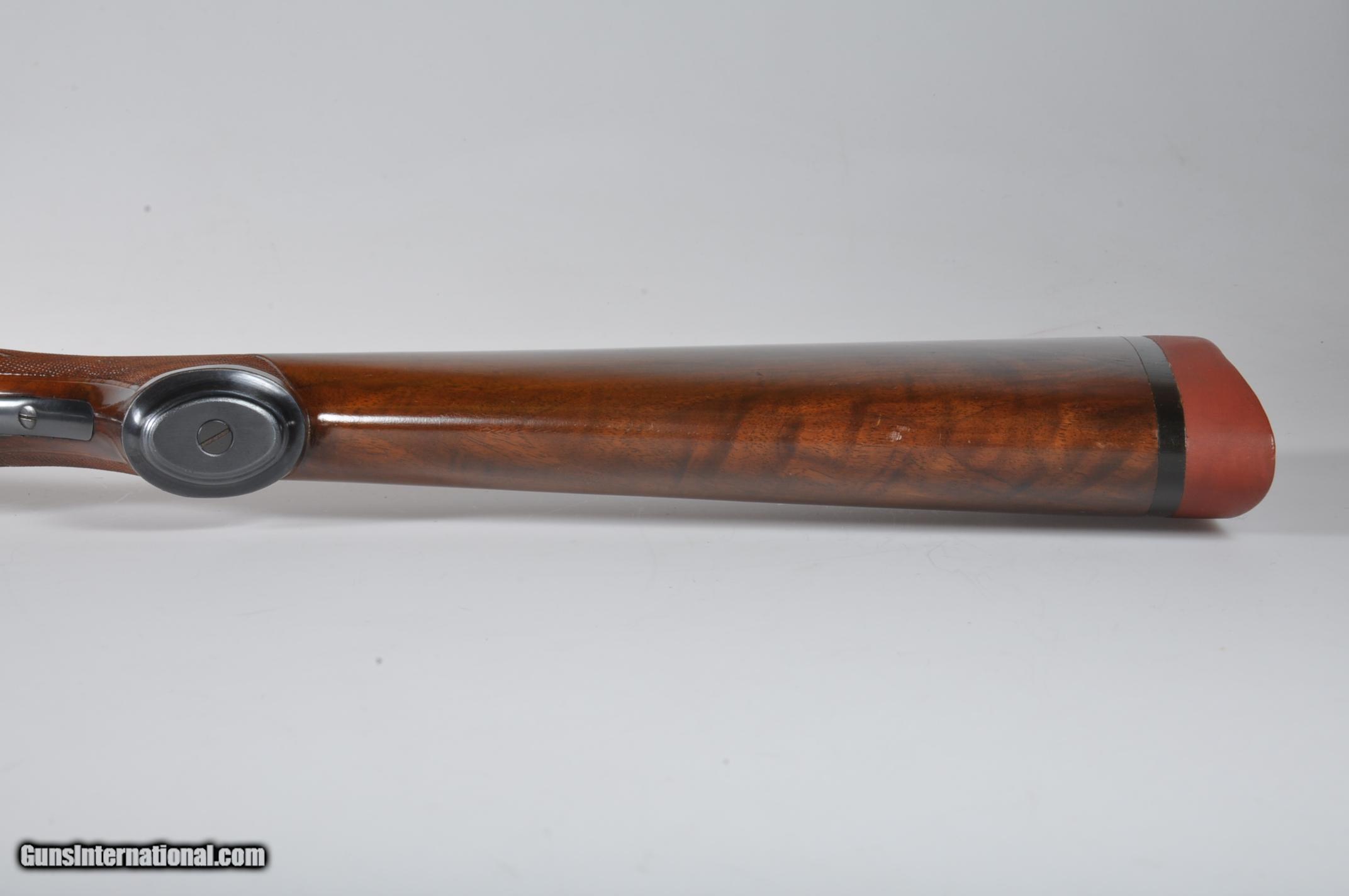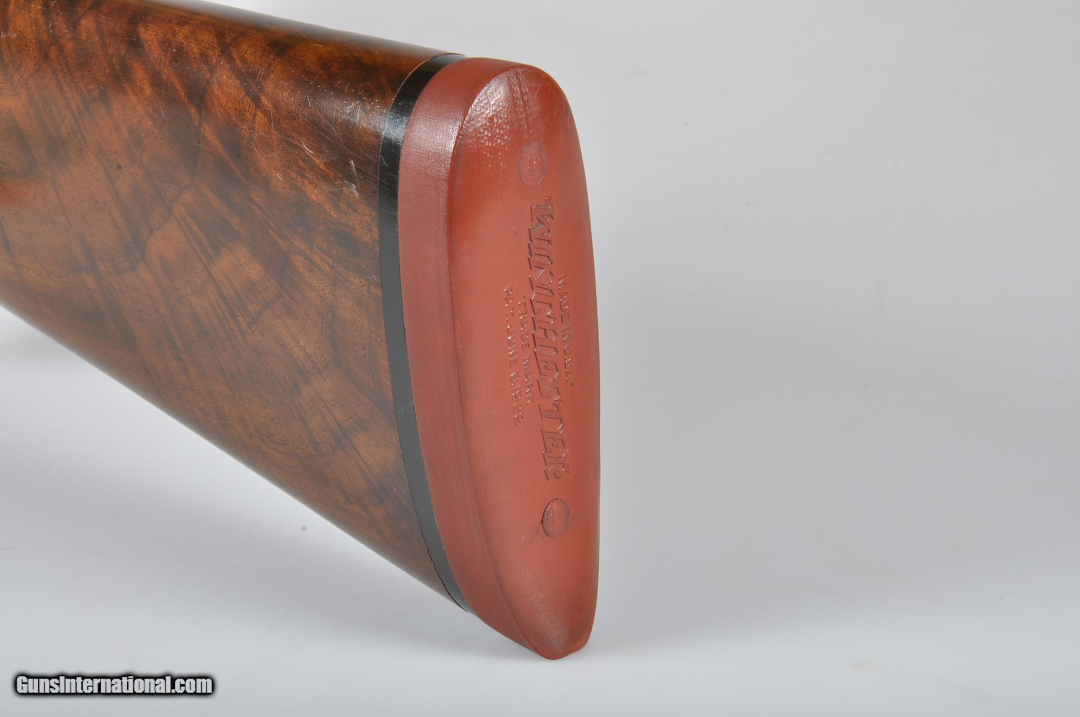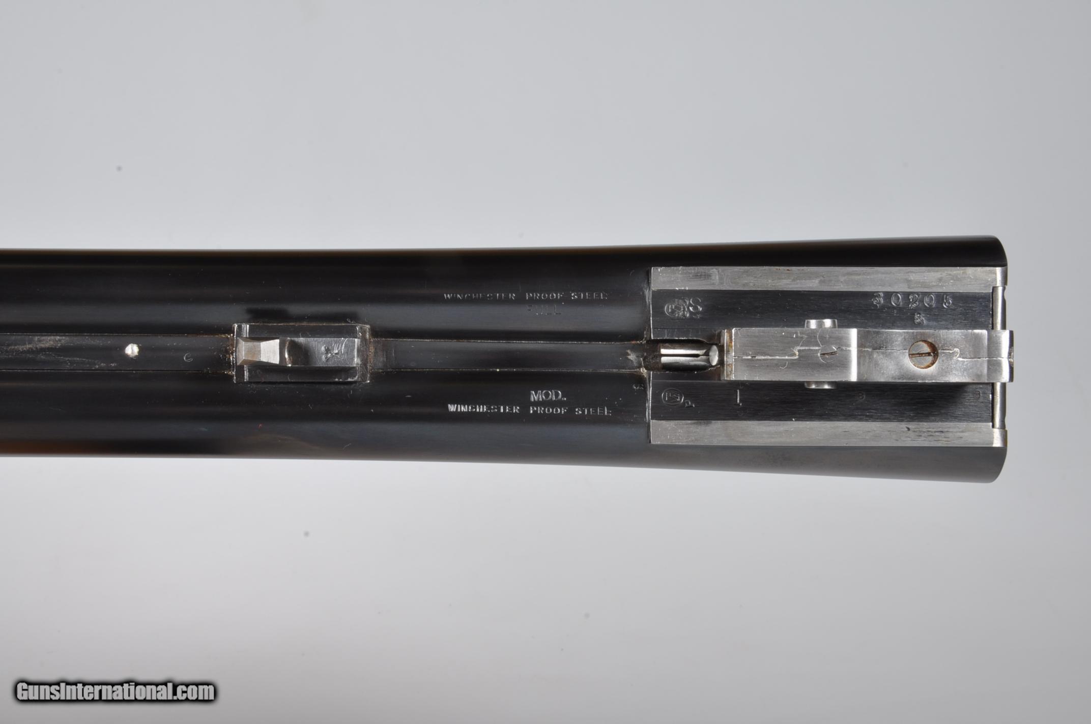 Description: 12 gauge, 30″ barrels, 2-3/4″ chambers. Chokes are marked MOD/FULL and measure .012 right and .033 left. Full length ventilated rib with dual silver beads. Bores are bright and shiny. Single selective trigger, automatic ejectors, non-automatic safety. Pistol grip stock checkered in three point pattern with 14 1/2″ length of pull over an original red Winchester recoil pad. Beavertail forearm with roll type release checkered in “Diamond” pattern. Condition: Excellent as nearly new and all original. Metal is 99%. Wood has original finish. There is a sizeable marr in the comb and a few light handling marks. Drop at comb: 1 3/8”. Drop at heel: 2”. Weight: 8.25 lbs. Mechanics are excellent. This is a beauty of an original 21. We prefer to communicate by email. We can not accept credit cards for collectible firearms. We have more than 500 Winchester Model 21s in stock in every grade and gauge. We also have hundreds of Parkers, Fox and LC Smith Shotguns so feel free inquire other fine shotguns. SOLD Manufacturer: Winchester Model: 21 Trap Serial Number: 30250 Chambers: 2 3/4 Ejectors: Yes Barrels: 30 Triggers: SST Gauge Info: 12 Stock: Pistol Grip Fore End: Beavertail LOP: 14 1/2 Rib: Ventilated |