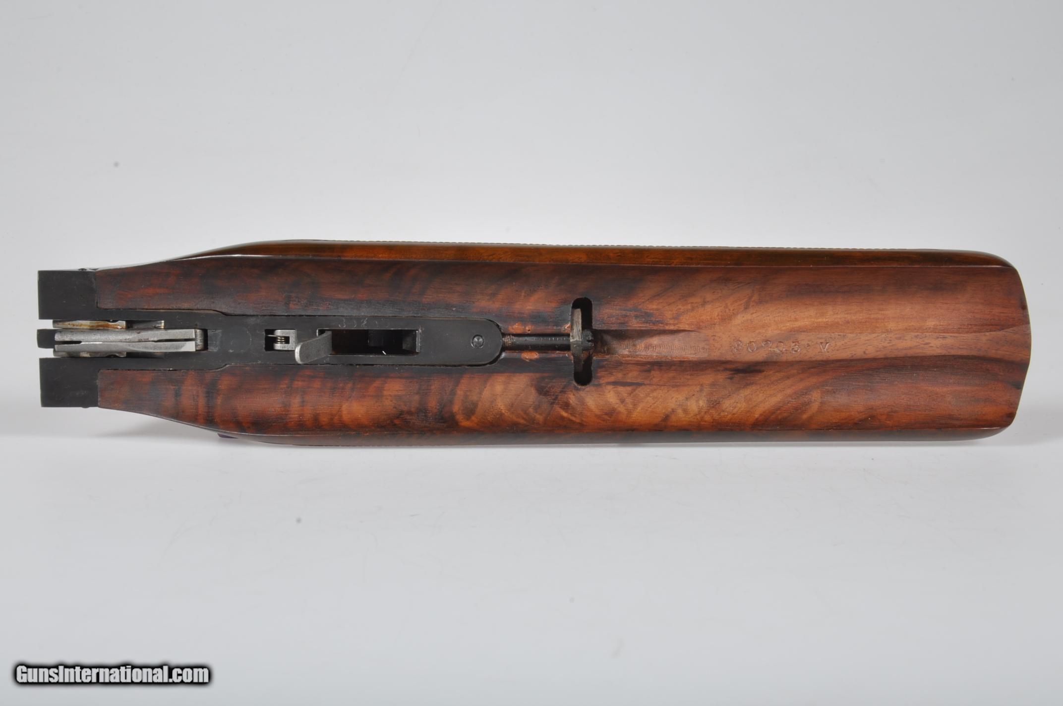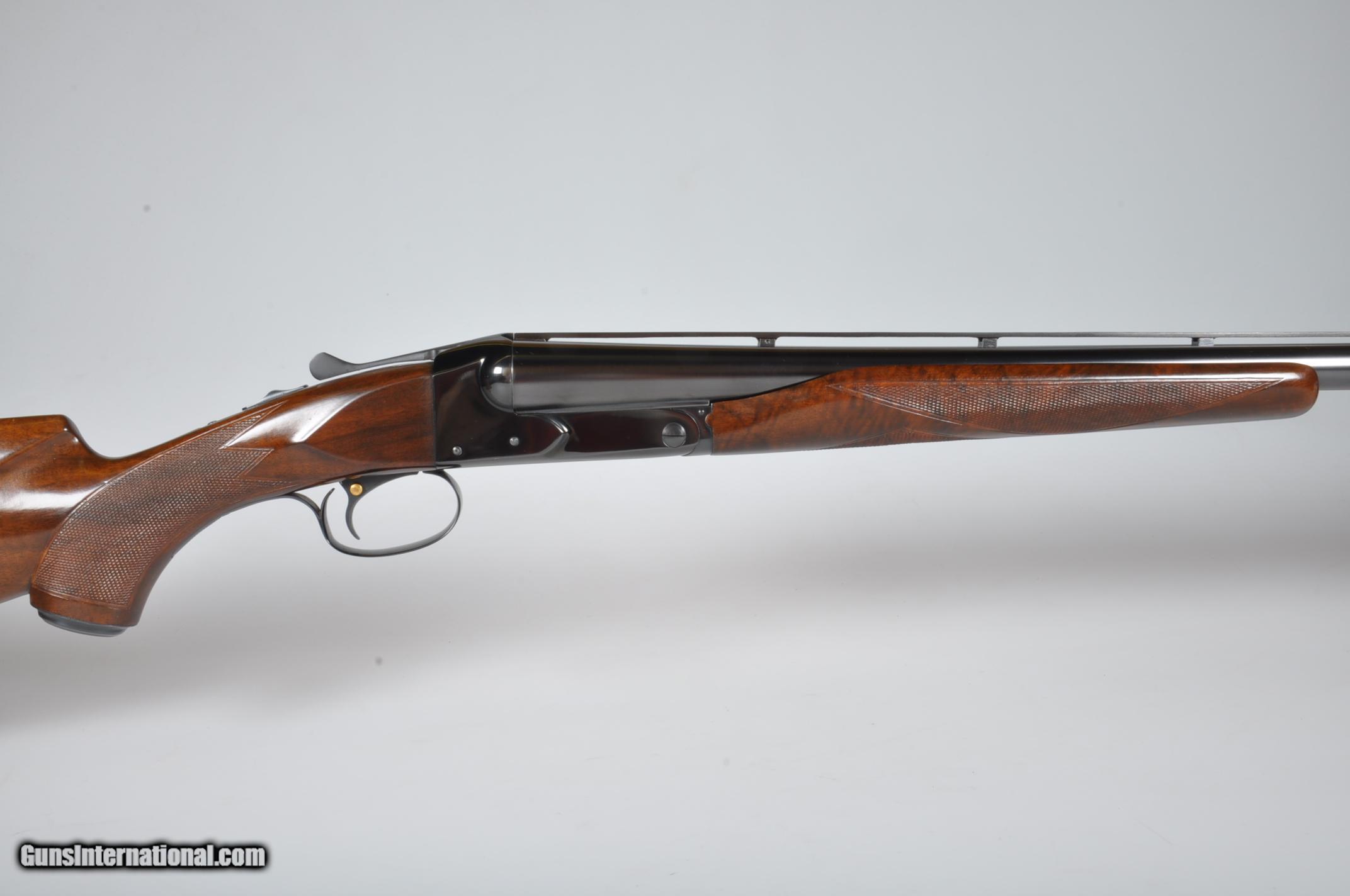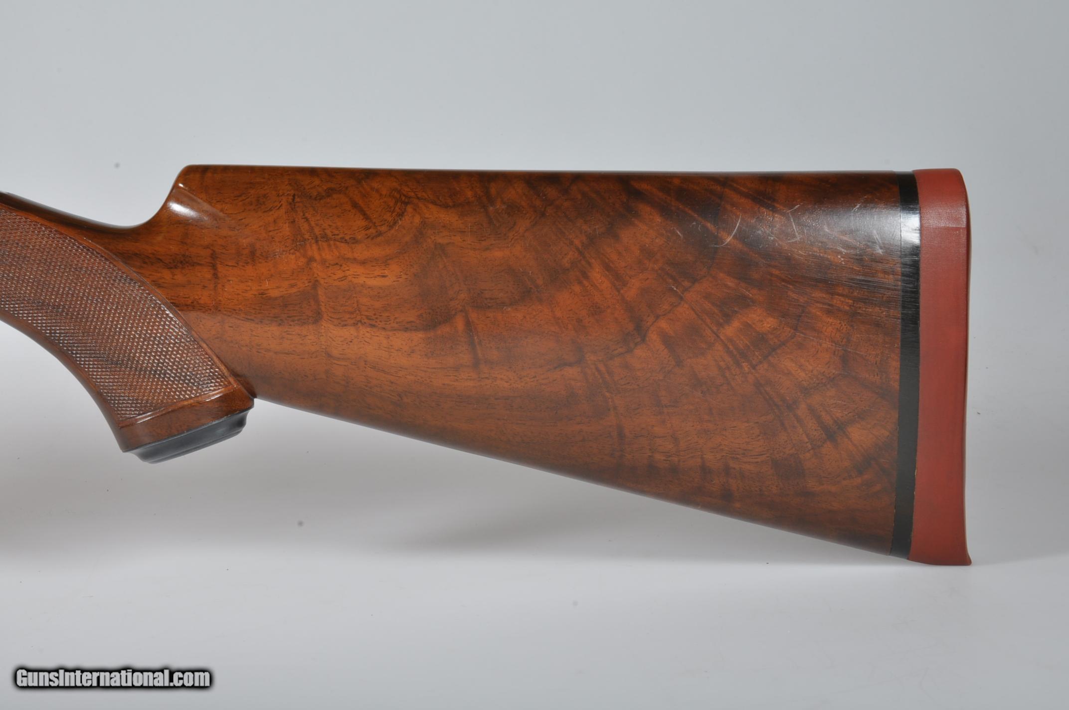 Description: 12 gauge, 30″ barrels, 2-3/4″ chambers. Chokes are marked MOD/FULL and measure .012 right and .033 left. Full length ventilated rib with dual silver beads. Bores are bright and shiny. Single selective trigger, automatic ejectors, non-automatic safety. Pistol grip stock checkered in three point pattern with 14 1/2″ length of pull over an original red Winchester recoil pad. Beavertail forearm with roll type release checkered in “Diamond” pattern. Condition: Excellent as nearly new and all original. Metal is 99%. Wood has original finish. There is a sizeable marr in the comb and a few light handling marks. Drop at comb: 1 3/8”. Drop at heel: 2”. Weight: 8.25 lbs. Mechanics are excellent. This is a beauty of an original 21. We prefer to communicate by email. We can not accept credit cards for collectible firearms. We have more than 500 Winchester Model 21s in stock in every grade and gauge. We also have hundreds of Parkers, Fox and LC Smith Shotguns so feel free inquire other fine shotguns. SOLD Manufacturer: Winchester Model: 21 Trap Serial Number: 30250 Chambers: 2 3/4 Ejectors: Yes Barrels: 30 Triggers: SST Gauge Info: 12 Stock: Pistol Grip Fore End: Beavertail LOP: 14 1/2 Rib: Ventilated |