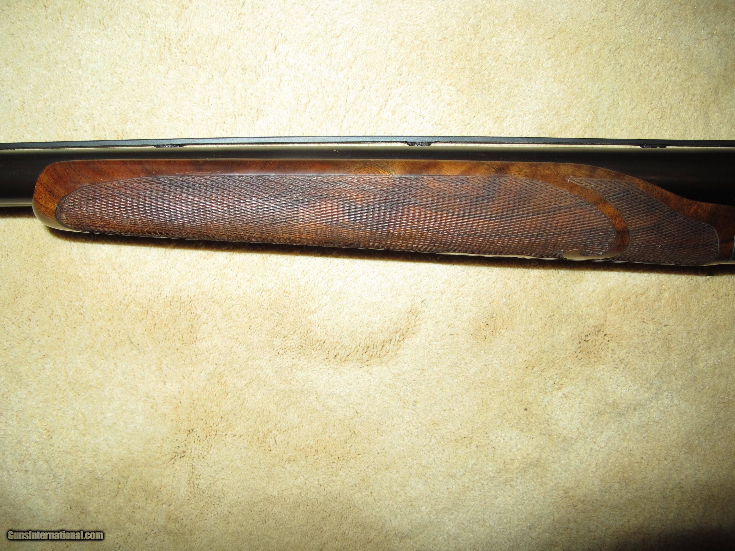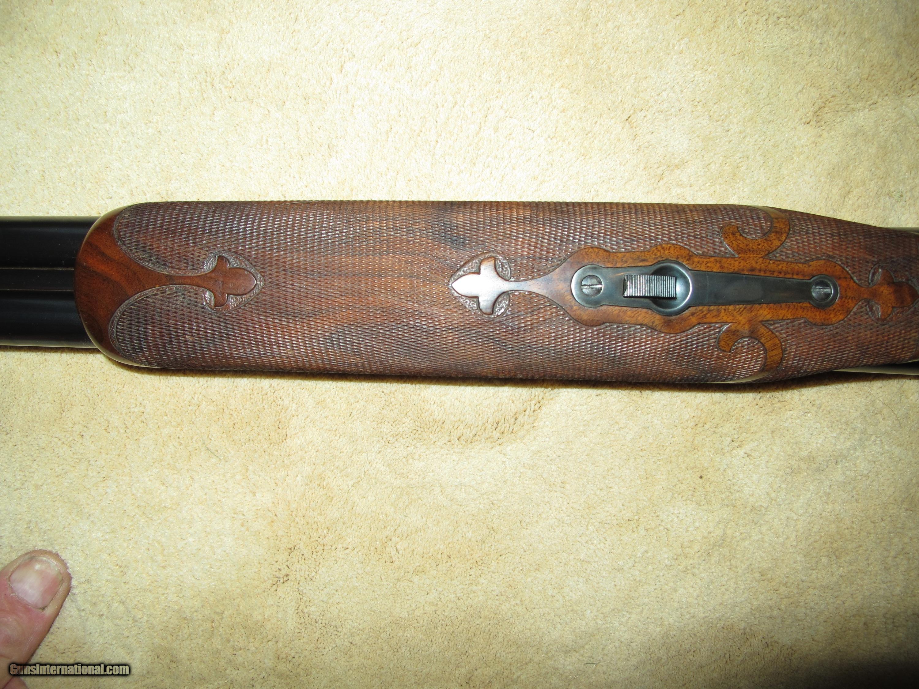 Description: WINCHESTER Model 21 TRAP, ser. # 25211, 1949 manufacture, 12 gauge side-by-side, 30" bbl, mod. & full, vent rib, Win. Custom Shop AAA fancy wood, Grand American checkering, 14" LOP, 1 3/8" Drop at toe, 1 3/4" Drop at heel, 1 1/2" Drop at comb, slight cast on, leather 1/2" thick butt pad inc., excellent condition. $8,000. John 907-202-1010. SOLD |