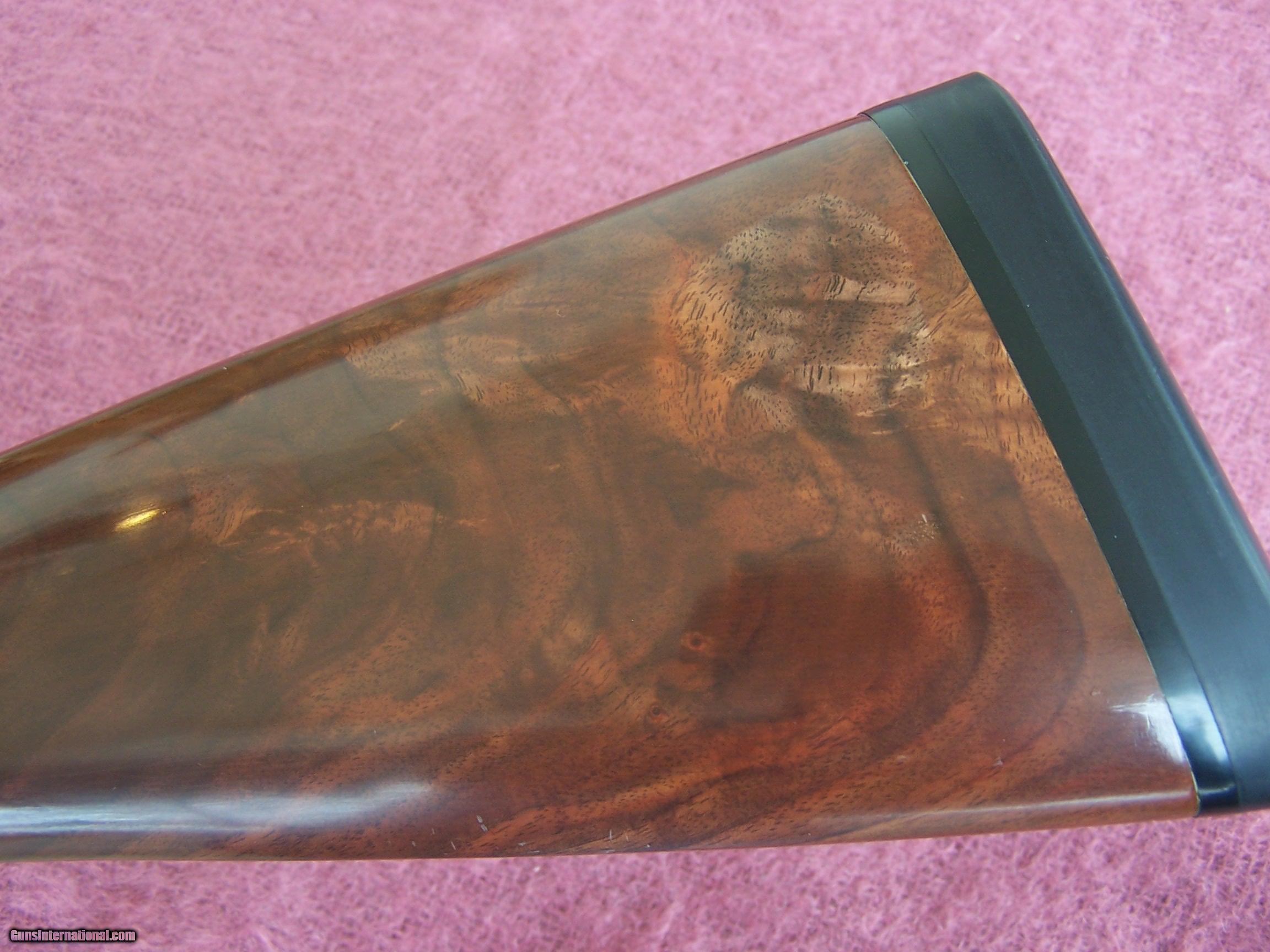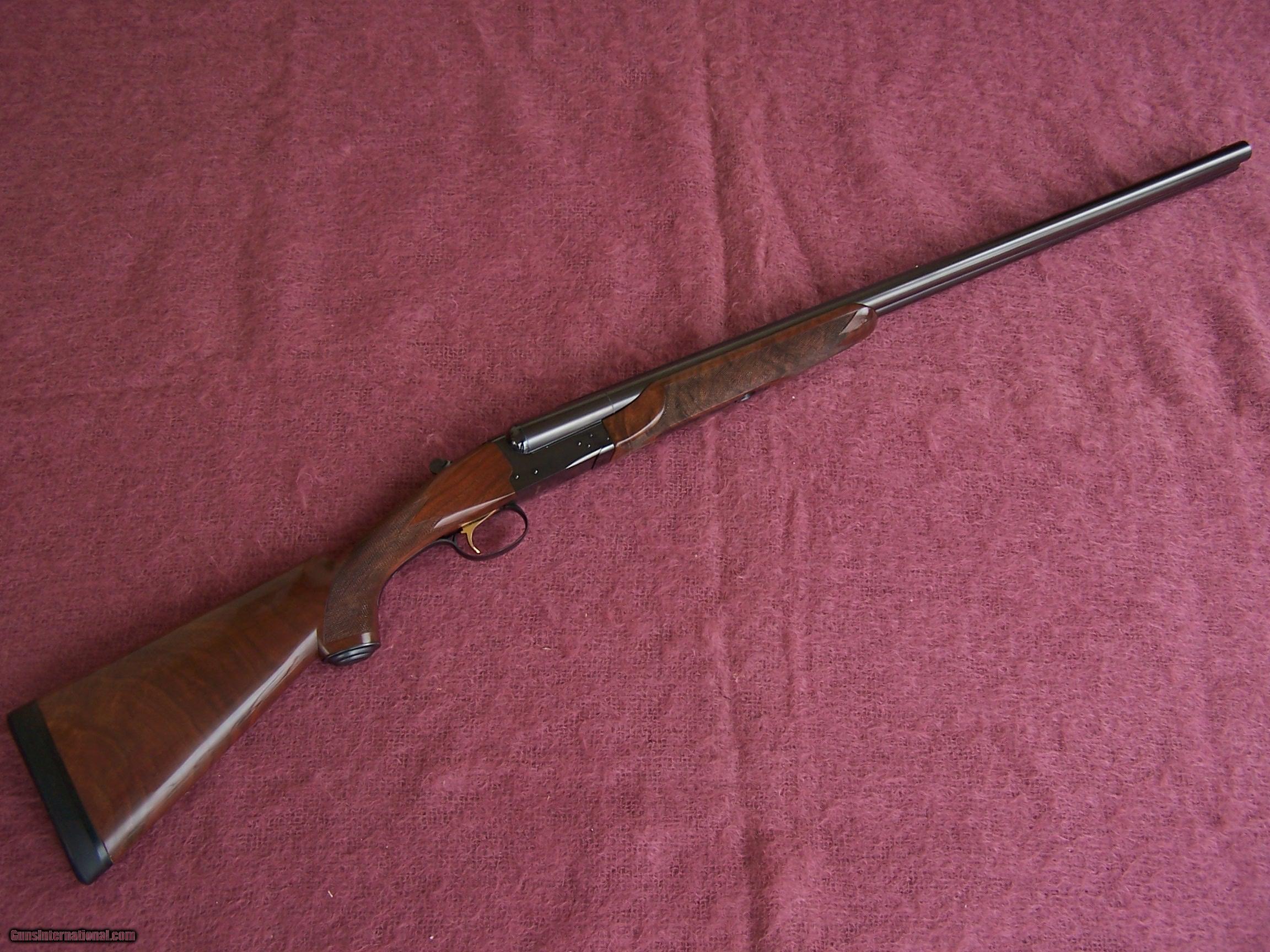 Description: Winchester model 23 "Heavy Duck", 12 gauge with 30" barrels, choked full / full. This gun is number 429 of only 500 produced. Metal is approximately 95%, and the wood estimated at 93% with some nice figure in both butt stock and forend. The butt stock has two small light dis-colorations in the wood (one on the bottom at the toe, and one on the left side towards the the heal just below the comb), where a cosmetic ding and some scratches were repaired. The gun is in original factory condition and also comes with green canvas factory hard case, factory box and paper work, and hang tag. Price includes shipping and insurance to your FFL dealer. Beautiful double gun. SOLD Bore: 12 Chambers: 3 Ejectors: Selective Ejectors Metal Condition: 95% Wood Condition: 93% Bore Condition: Clean Barrels: 30 Action: Box Lock Triggers: Single Selective Gauge Info: 12 Stock Dimensions: Factory |
