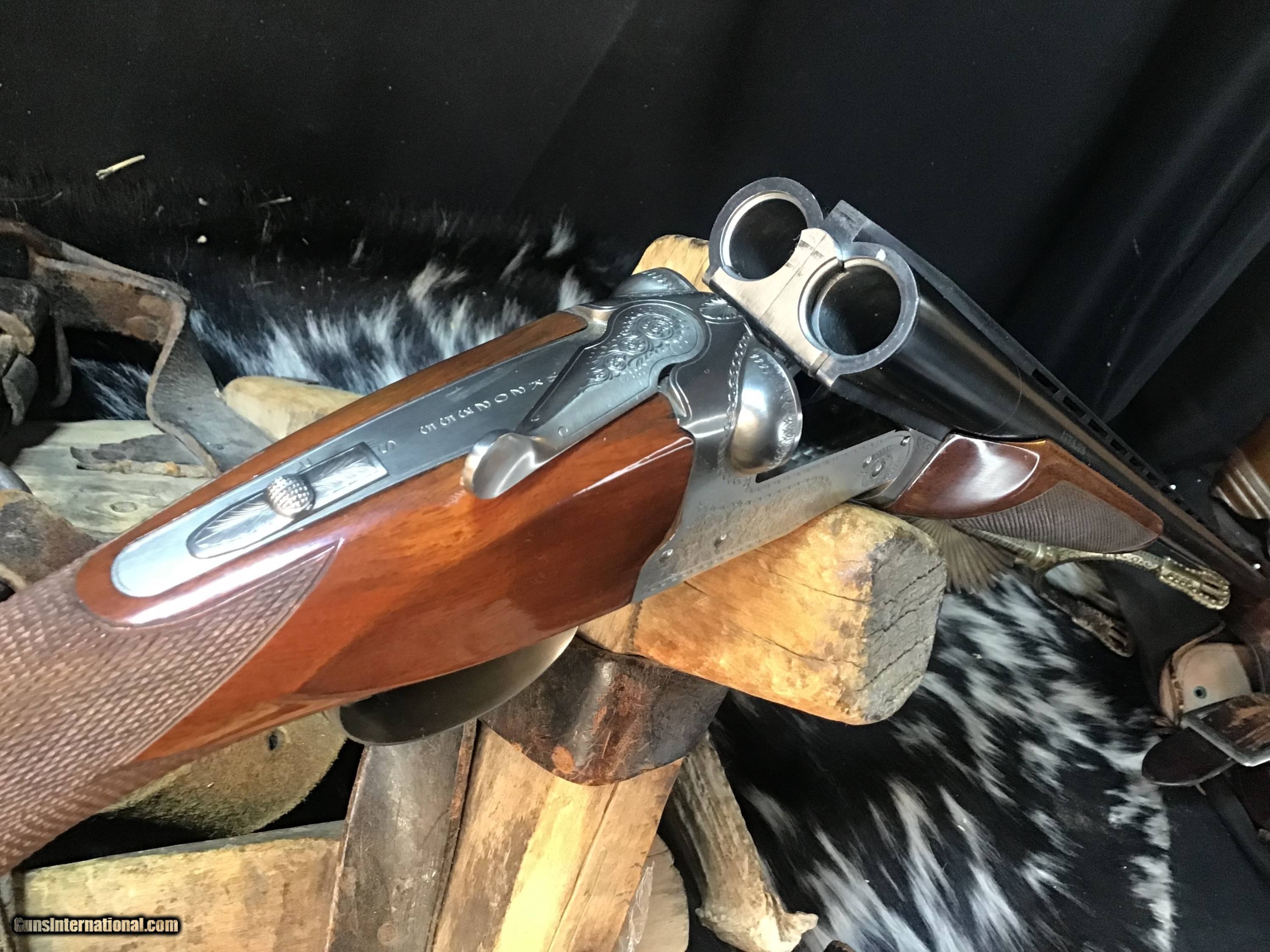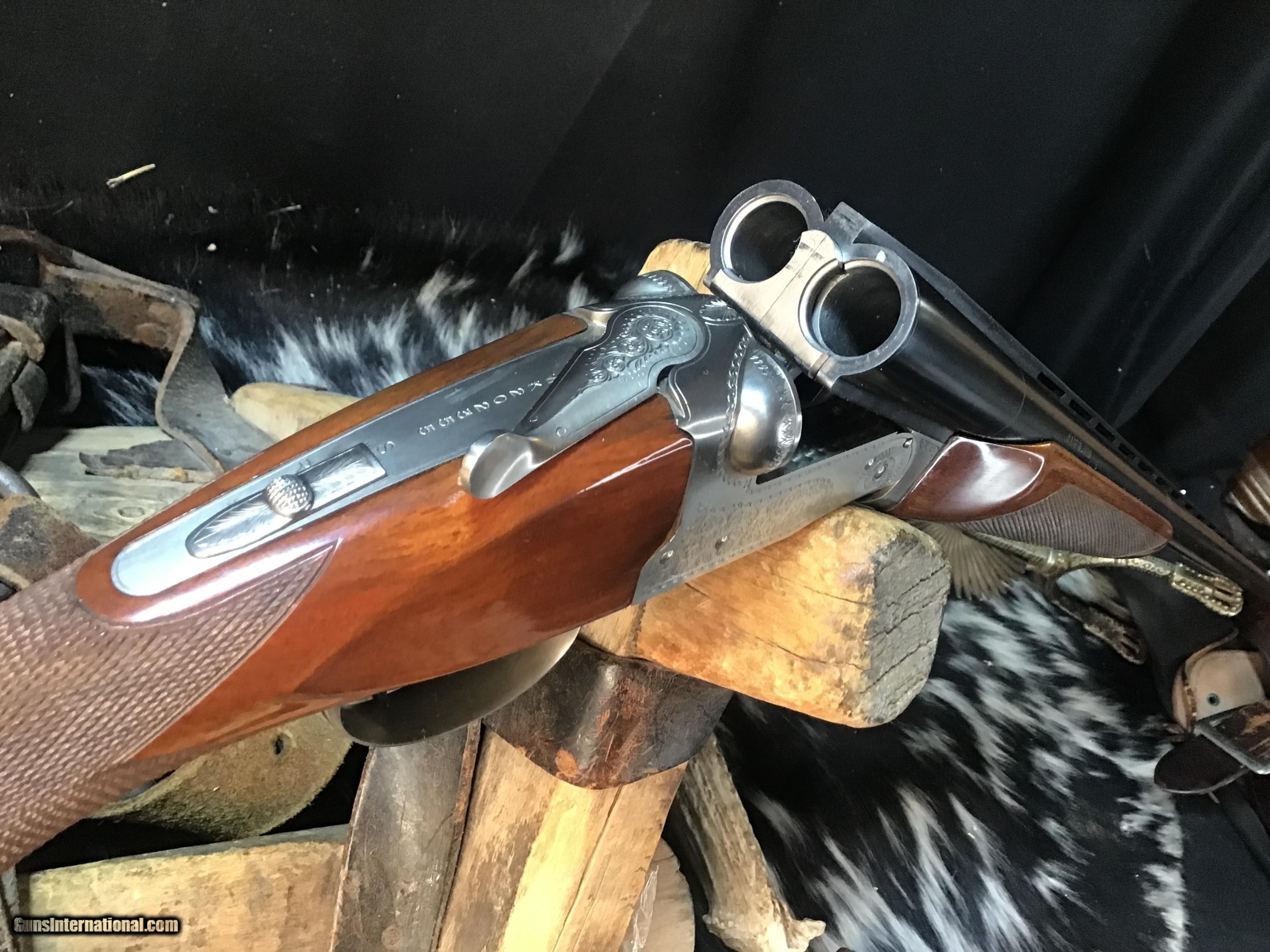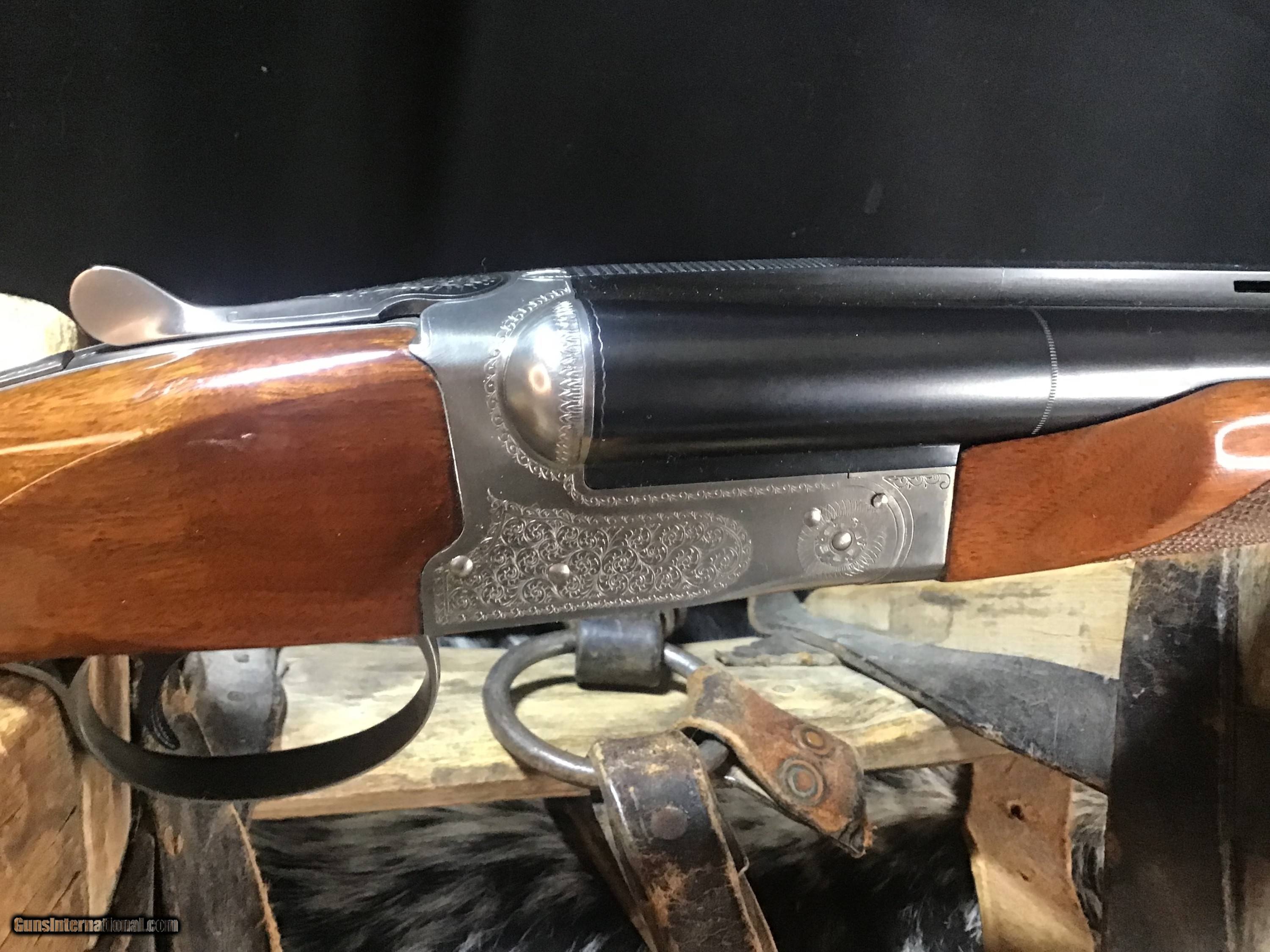 1979 Winchester model 23 XTR Pigeon Grade SxS shotgun chambered in 3" .20 Gauge shells. Wearing a like new 30" side by side barrels with fixed full and mod chokes. Single selective trigger, tasteful factory rose and scroll engraving featuring in flight birds and a landed Pigeon on bottom Nickel finished receiver. Shotgun is in excellent 98% condition showing only very light if any use. The model 23 was built from 1978 to 1987 only, with the XTR Pigeon grade the top variant in my book. The gun is light to carry afield and swings easily on target with the raised vented rib coming right to your eye. A great chance to add a high quality Winchester Side by Side in desirable 20 bore to your shotgun lineup.