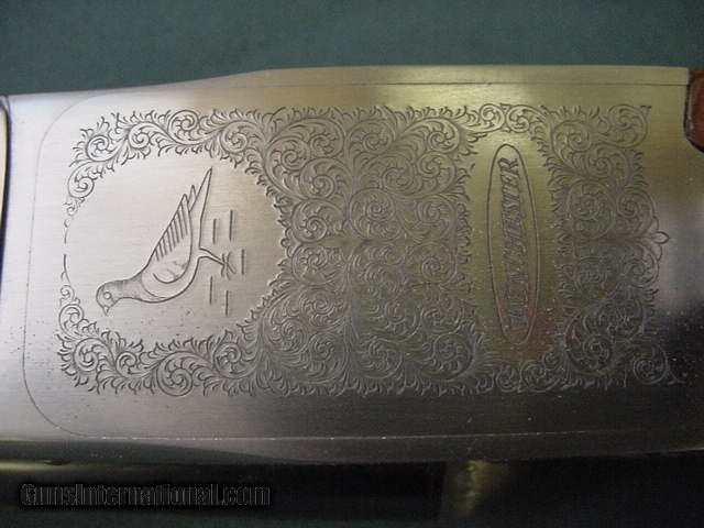 Description: 4784 Winchester 23 Pigeon XTR 12 gauge, 28 inch barrels, mod/full,SINGLE SELECT TRIGGER, ejectors, rose and scroll coin silver engraved receiver, Winchester butt plate, vent rib, round know,came from private collection, ALL ORIGINAL AND POSSIBLY UNFIRED, MINT CONDITION NONE FINER SOLD |