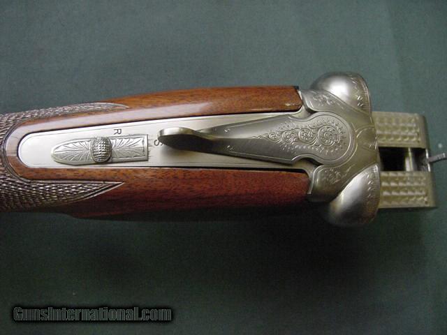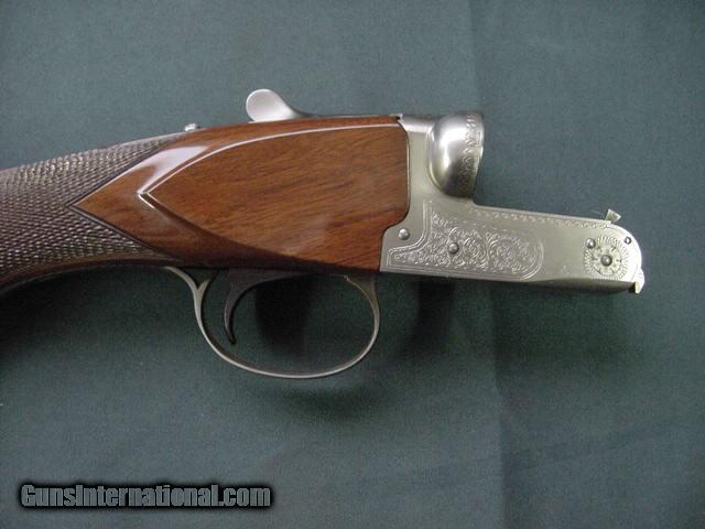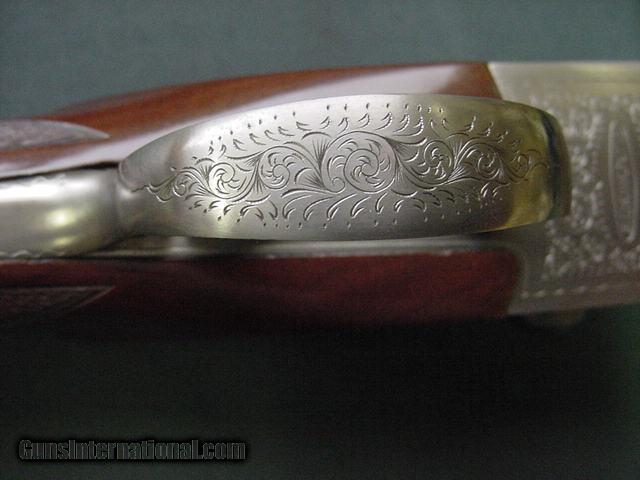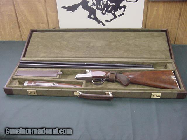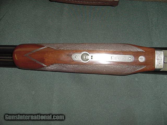 Description: 5043 Winchester 23 Pigeon XTR 12 gauge 28 inch barrels 2 3/4 & 3 inch chambers,mod and full, vent rib, ejectors, round knob, single select trigger, Winchester butt plate, ALL ORIGINAL IN CORRECT WINCHESTER CASE.rose and scroll engraved coin silver receiver,A+Fancy walnut,and keys. SOLD |