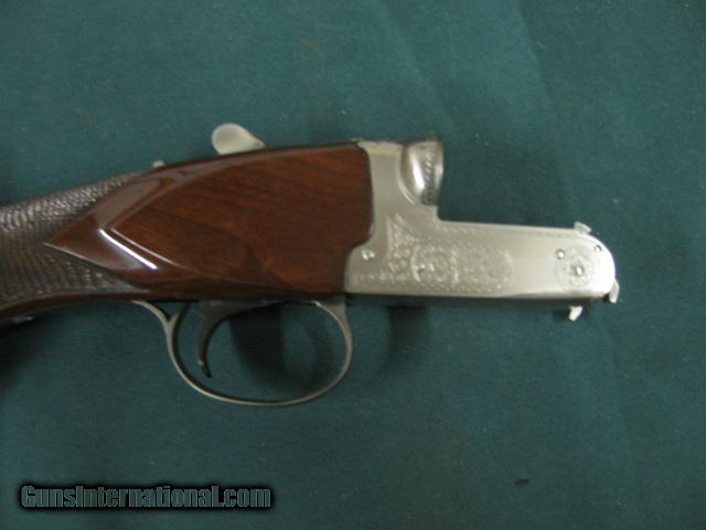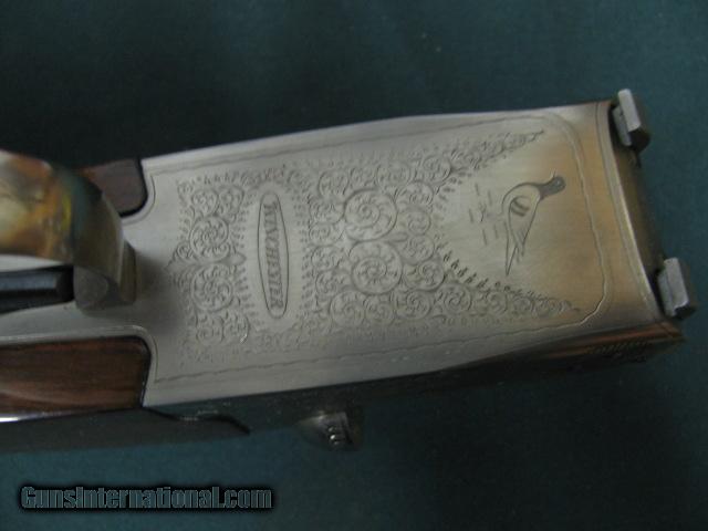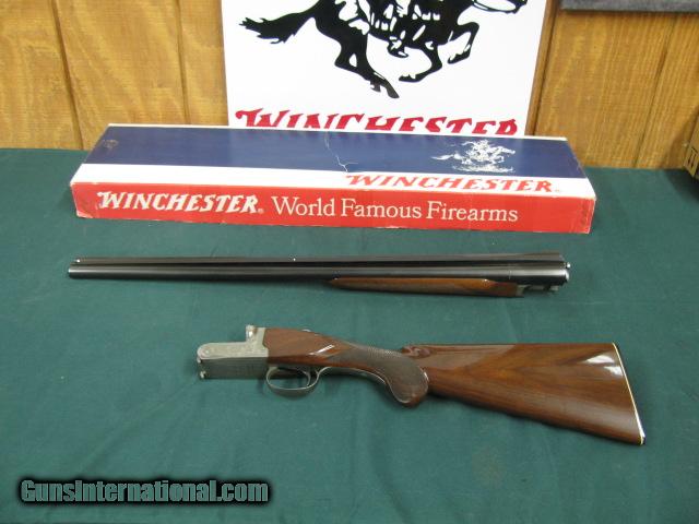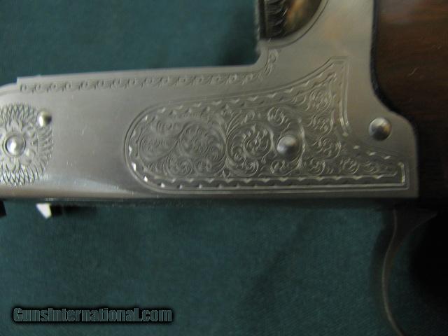 Description: 5148 Winchester 23 Pigeon XTR 20 gauge, 26 inch barrels, 2 3/4 & 3inch chambers, ic/mod, single select trigger, vent rib, round knob, ejectors, A+ Walnut stock and forend, coin silver rose and scroll engraved receiver, Winchester butt plate, Winchester correct serialized box to shotgun, 98++% condition.this one is very nice SOLD |