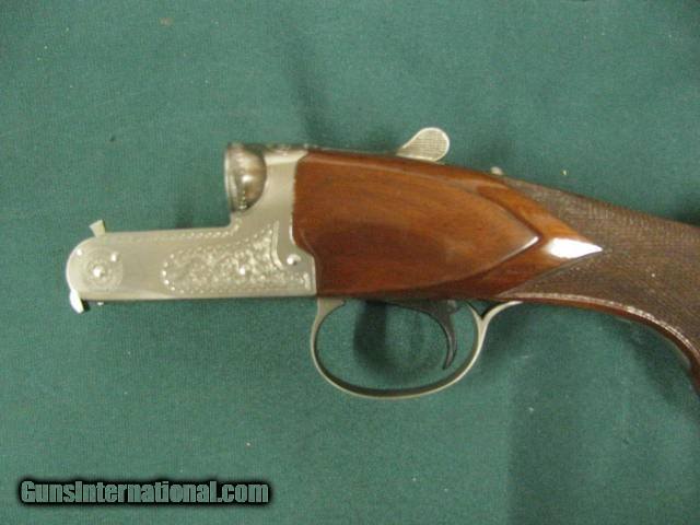 Description: 6767 Winchester 23 Pigeon XTR 20 gauge 28 inch barrels mod/full, single select trigger,vent rib ejectors, Winchester butt plate, Winchester case, Winchester oil soaked papersround knob, rose/scroll engraved coin silver receiver,bores brite/shiny,opens/closes tite, shot little 99% condition, AS NEW IN CASE. HARD TO GET 28 INCH BARRELS--210 602 6360-- SOLD |