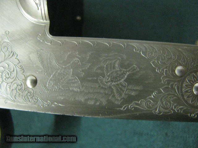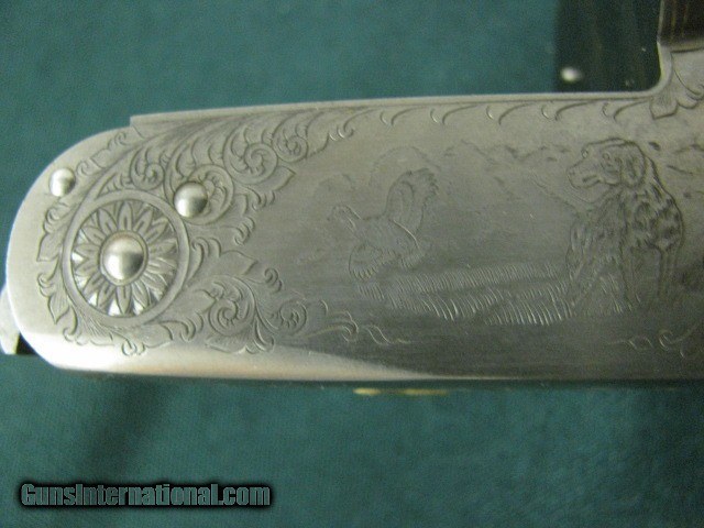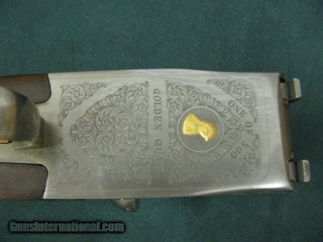 Description: 6985 Winchester 23 Golden Quail 28 gauge 26 inch barrels, single select trigger, ejectors,solid rib STRAIGHT GRIP AAA+ Fancy highly figured walnut, Winchester butt pad. beavertail forend. front white bead,Gold raised relief quail head bottom of receiver.bores brite shiny,several small rust places on barrel.90% condition. SOLD Shotgun Gauge: 28 Gauge |