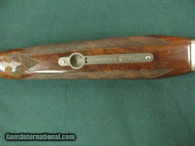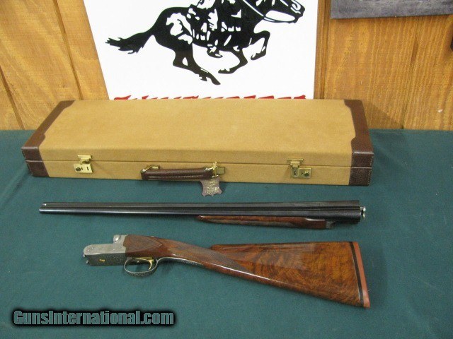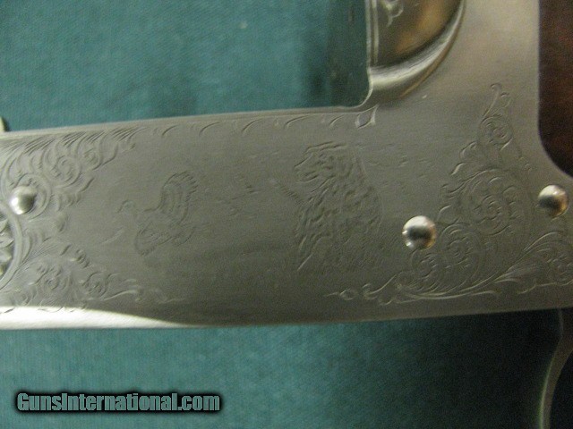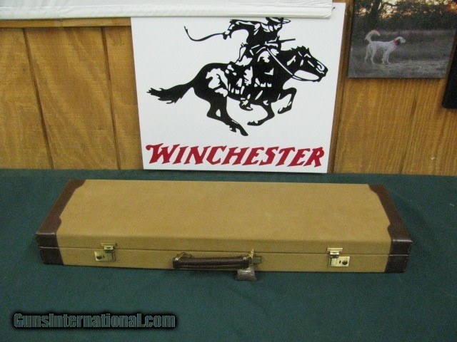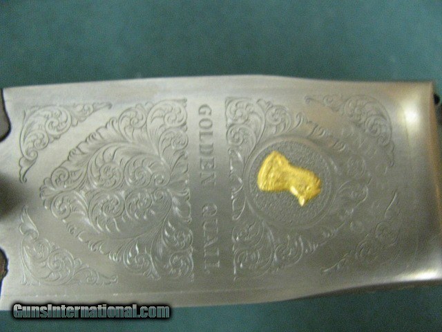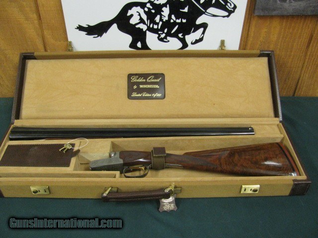 Description: 7013 Winchester 23 Golden Quail 410 gauge 26 barrels mod/full,STRAIGHT GRIP, Winchester pad, quail/dogs engraved coin silver receiver, ALL ORIGINAL # 48 of only 500 made. correct Winchester case, single selective trigger, raised rib ejectors, beavertail, AAA++Fancy highly figured walnut.Gold quail head on bottom of receiver. none finer SOLD Shotgun Gauge: .410 Gauge |