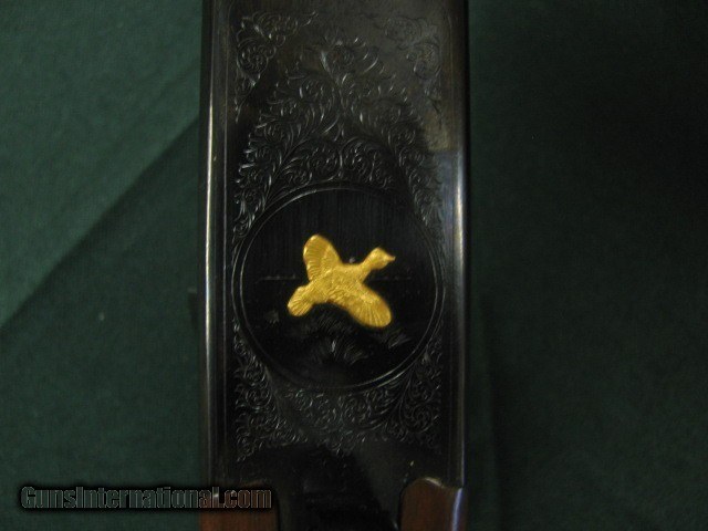 Description: 7488 Winchester 23 Classic 4 gauge set, all same serial #CL-172E, 12 gauge, 20 gauge 28 gauge 410 gauge (mod/Full) all the others are ic/mod. all are 26 inch barrels ,FLEUR-DES-LIES checkering, RAISED RELIEF GOLD QUAIL ON 410 AND 28 gauge, GOLD RAISED RELIEF PHEASANT ON THE 12 gauge and 20 gauge. AAA++fancy highly figured deluxe walnut. correct Winchester cases, keys, HANG TAG/Winchester papers, vent rib, pistol grip with cap, Winchester butt pad---UNFIRED NEW IN CASE--NONE FINER DONT MISS THIS RARE SET. SOLD Shotgun Gauge: 28 Gauge |