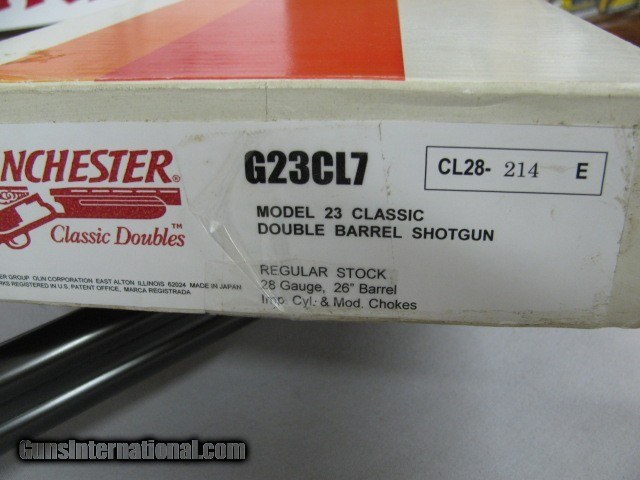 7515 Winchester 23 Classics--MATCHED SET-- 28gauge/20gauge, CL20-214E/CL28-214E. 26 inch barrels, ic/mod,vent rib,pistol grip, ejectors, gold raised r