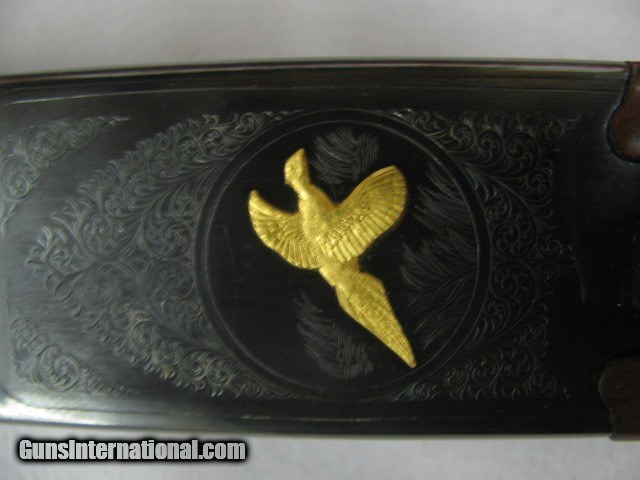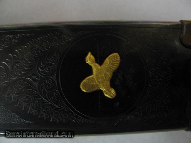 Description: 7515 Winchester 23 Classics--MATCHED SET-- 28gauge/20gauge, CL20-214E/CL28-214E. 26 inch barrels, ic/mod,vent rib,pistol grip, ejectors, gold raised relief Pheasant on 20 ga. gold raised relief quail on 28ga. box for 28 ga only.AAA++fancy walnut, ebony insert in foend,all original, 99% condition--very rare MATCHED SET--210 602 6360.-- SOLD Shotgun Gauge: 28 Gauge |