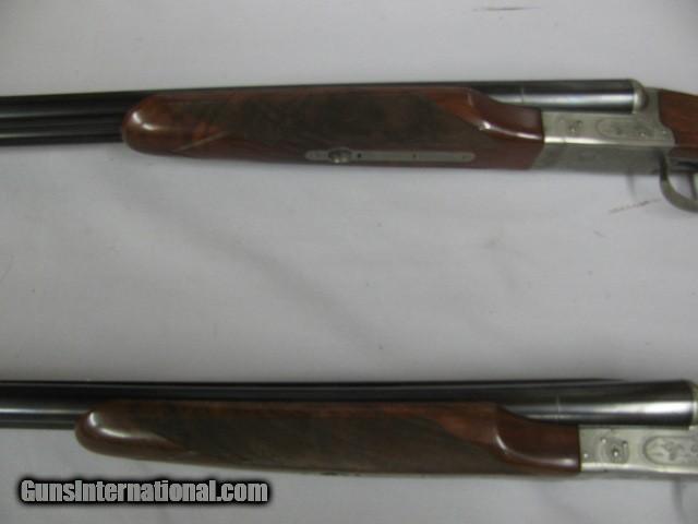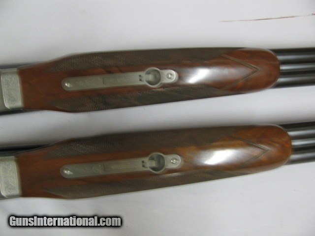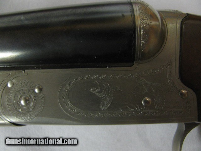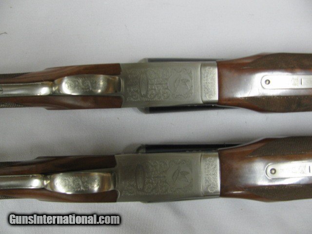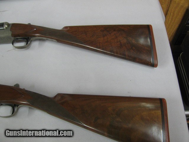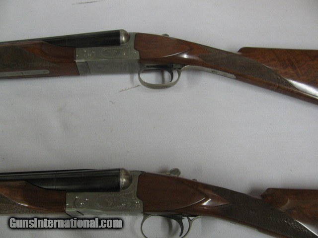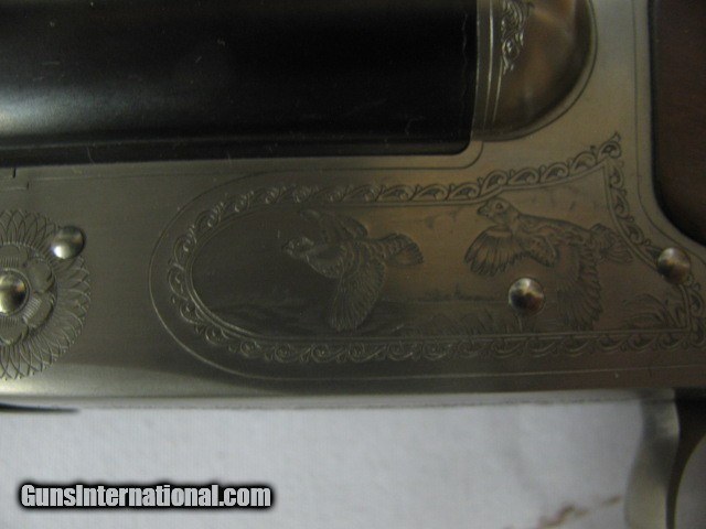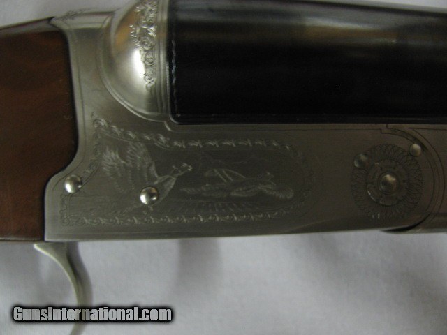 Description: 7639 Winchester 23 Pigeon XTR LIGHTWEIGHT--MATCHED SET--CONSECUTIVE SERIAL NUMBERS, 12 gauge 26 inch barrels ic and i mod, vent rib, ejectors, STRAIGHT GRIP, AAA++FRANCY WALNUT, Winchester butt pad, lop factory 14 1/4, 99% condition, VERY RARE COMBO, custom ordered, coin silver engraved receiver with pigeons, pheasants and quail.--210 602 6360-- SOLD Shotgun Gauge: 12 Gauge |