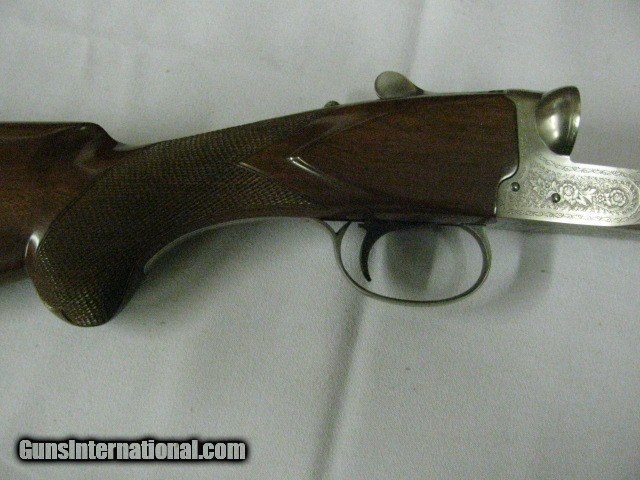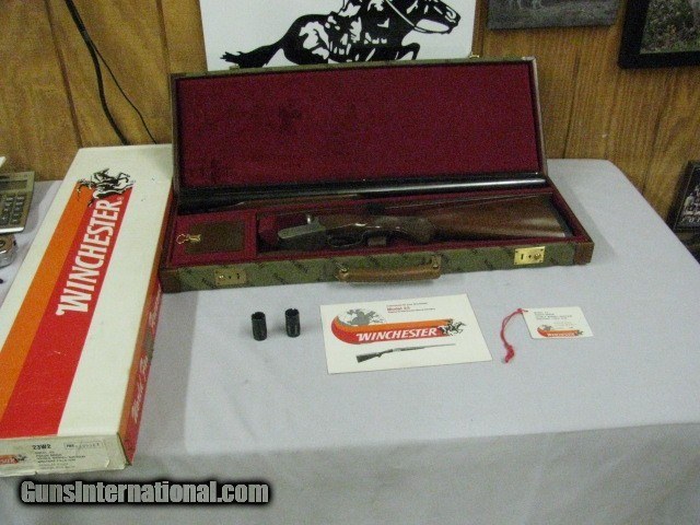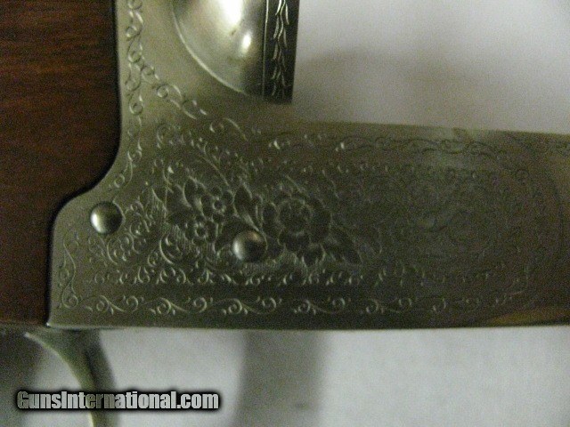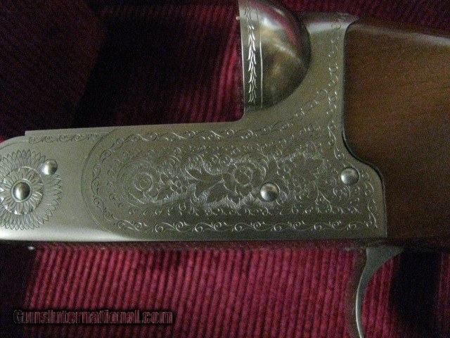 Description: 7686 Winchester 23 Pigeon XTR 12 gauge 26 inch barrels 2 screw in flush winchokes ANIC sk/xf, coin silver ribbon and scroll receiver, Winchester butt pad, all original, ejectors, single select trigger, shot little opens closes tite, correct Winchester hard case and Winchester box serialized to the gun, keys,99% condition-- HANG TAG AND PAMPHLET--time capsule survivor--dont miss this one. SOLD |