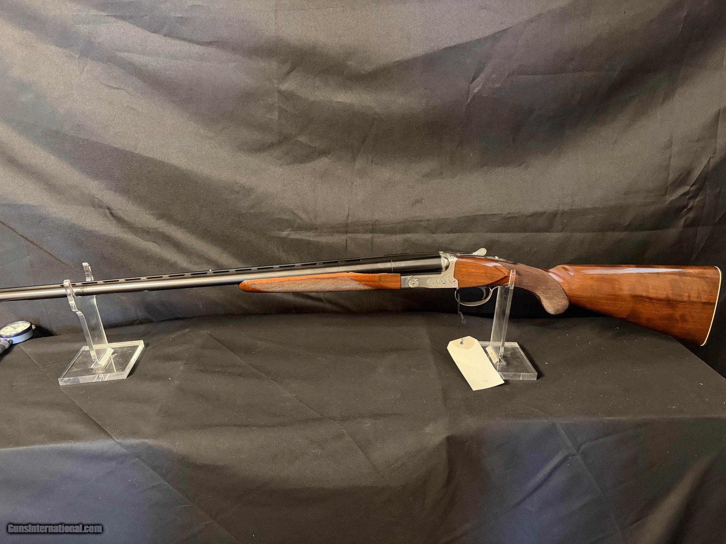 Description: Winchester Model 23 Pigeon Grade. 20 gauge, 28 inch mod and full. THis gun is like new except for a damaged forend. Look like someone droped it at some point. See the pictures. The damage does not effect the operation of the gun. The lop is 14.25 SOLD Shotgun Gauge: 20 Gauge Manufacturer: Winchester Model: Model 23 Barrel Length: 28 Ejectors: yes Condition: Like new except forend Metal Condition: 100% Wood Condition: 100% other than forend damage Bore Condition: New Stock Comb: 1 5/8 Stock Heel: 2.25 LOP: 14.25 Case: Plano hard case |