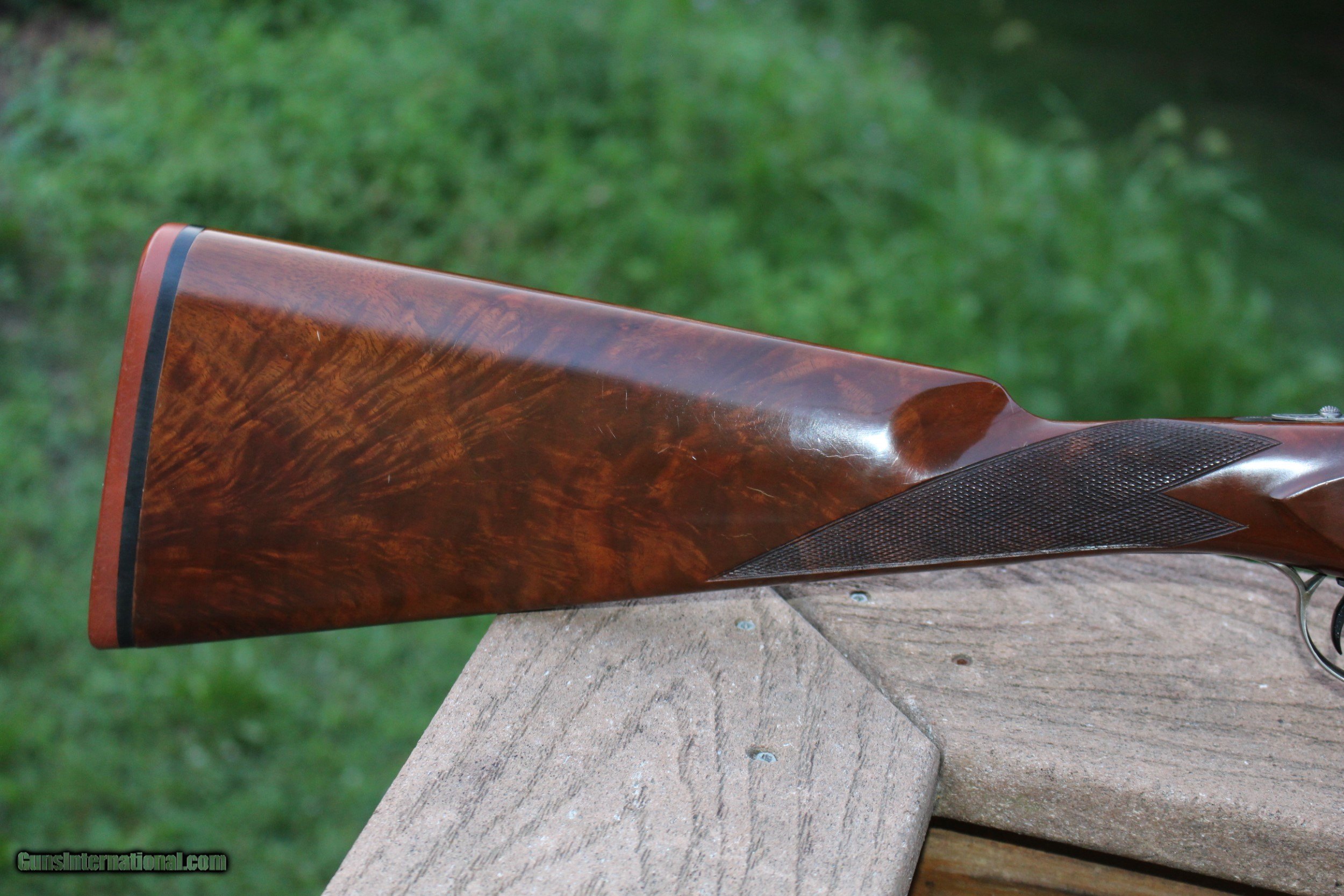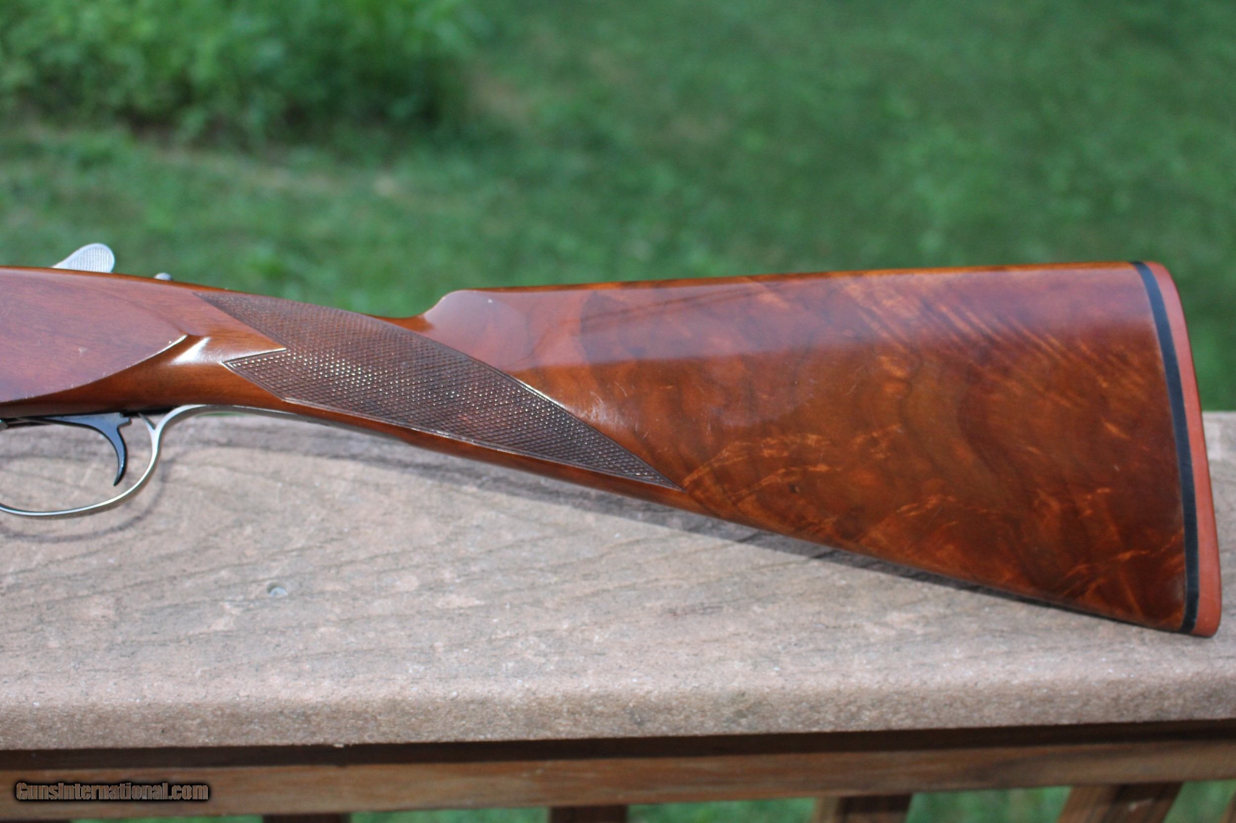 Description: Winchester 23 Peigon Grade 20ga..98% all round condition on both wood and metal...Single trigger, ejectors, Barrel selector switch..English style stock, crisp checkering...Bores shine..LOP-14.25"..DAH 2.25"..DAC 1.50"...Double Ivory beads...Beavertail forend...Original Red Pad...Choked Mod. and Imp Cyl...6.8 lbs...Ships in original Winchester hard case...Any questions please e-mail SOLD |