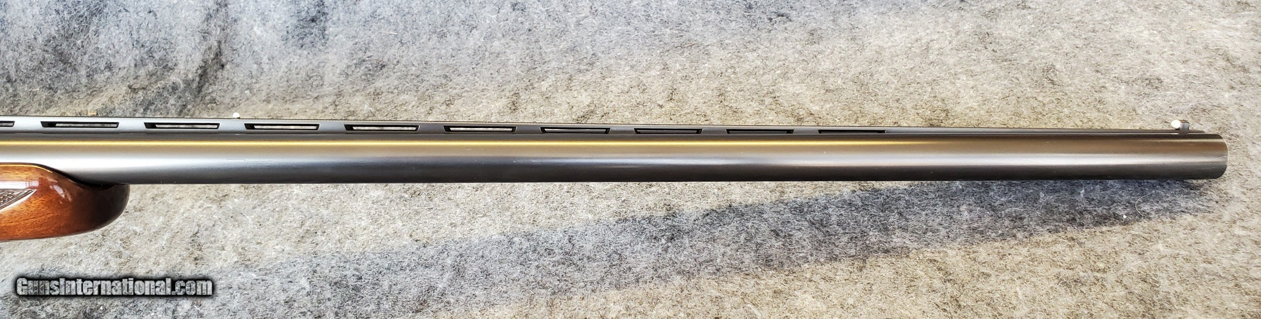 - Barrel measures 28", has a vent rib, is chambered for 3" shells, is double beaded, and has two straight chokes: modified and full.