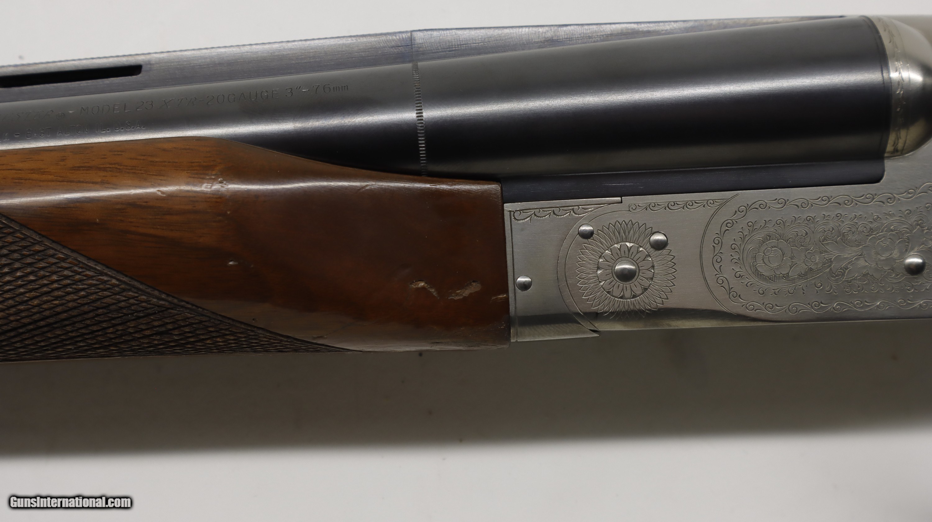 Description: Winchester Model 23 Pigeon Grade XTR, 20ga, 26" barrels, Single Selective Trigger and auto ejectors. SN is PWK2056xxE. Factory finish on both wood and metal, factory recoil pad. Gun has not been shot much at all, metal is near perfect. Wood shows some light handeling marks as shown, and some finish cracking. A light refinish would bring this gun to almost new condition. We will trade for silver and gold. We accept personal check, any certified funds, Venmo or Zelle. We can also take your credit card, +3%. Email me if you would like these pictures sent to you, they will come through bigger and better than on the listing page here. We do offer Layaway. Our standard terms are 25% down, 90 days. Initial deposit is not refundable. Email me with any questions. Please check your local laws to confirm it is legal to own in your state! Buyer pays $60 shipping and insurance in a brand new PLANO hard case to your FFL in the lower 48. AK, HI or PR is extra. I will ship to California, as long as it is legal, NO PROBLEM! All my guns come with a non-firing, 3 day unconditional return privilege, from the day UPS delivers to your dealer. Buyer pays shipping both ways if the gun comes back. Please make sure to make it to your FFL to inspect within the 3 days. I am a licensed FFL, and will include a copy of my FFL with the gun for your dealer’s records. I will ship to a C&R if the gun is eligible. I will ship to California, but you need to confirm the gun is legal where you are, California or other. WE BUY AND CONSIGN GUNS AND GUN COLLECTIONS! We will travel to pick up collections! I am always looking for good clean, old original Winchesters to buy, consign, or trade, especially Pre '64's model 70's and model 54's. WE ALSO TRADE FOR CLASSIC CARS AND TRUCKS! We also trade for gold and silver. SOLD Shotgun Gauge: 20 Gauge Manufacturer: Winchester Model: 23 Pigeon Barrel Length: 26 Condition: Used |