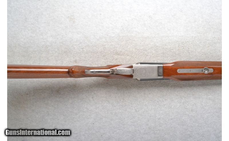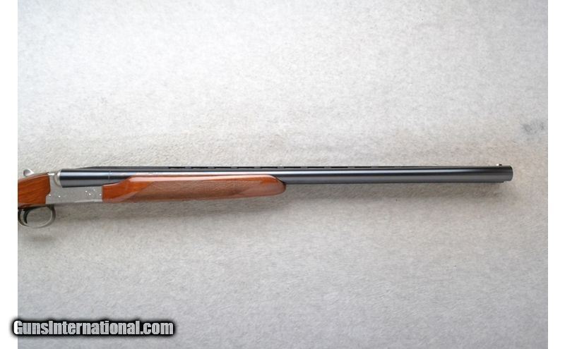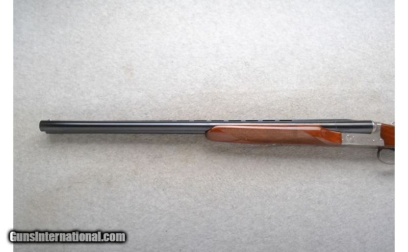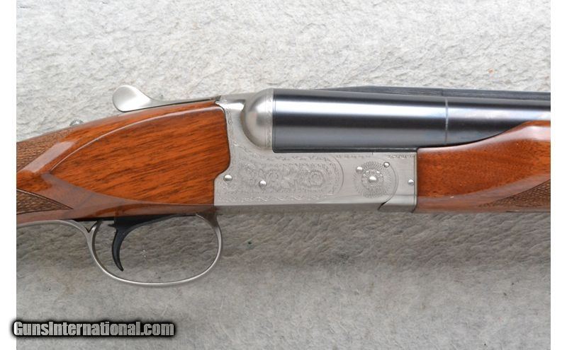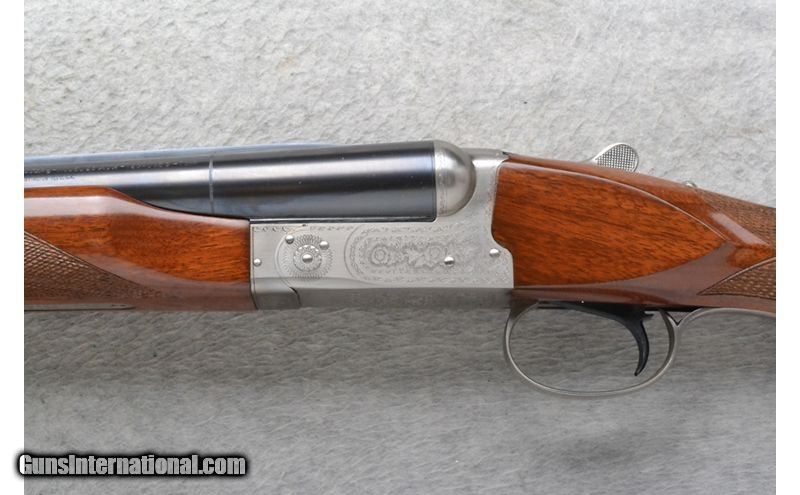 Description: This Winchester Model 23 XTR Pigeon Grade is a side by side shotgun in 12 Ga. It has 25.5 inch barrels with a ventilated rib. With a 3 inch chamber it takes choke tubes and comes with 5 tubes. It has white bead front and middle sights. SST. The butt stock is a checkered grip walnut round knob pistol grip. The forearm is a checkered grip walnut beavertail style. The coin finished receiver is very nicely engraved. Comes in a locking hard case. 12 Gauge SOLD Chambers: 3 inch. Metal Condition: Excellent. Wood Condition: Excellent. A couple of very minor handling marks. Bore Condition: Shiny. Barrels: 25.5 inch barrels with a ventilated rib. Triggers: SST Stock Dimensions: LOP 13 7/8 inches. DAC 1 1/2 inch. DAH 2 3/8 inch. Fore End: Checkered grip walnut beavertail. Butt Pad: Winchester black rubber pad. Weight: 7 lb. 2 oz. Sights: White bead front and middle. Chokes: "Tubes. Comes with 5 - XF, F, IM, M & IC Item Location: Richfield, WI |
