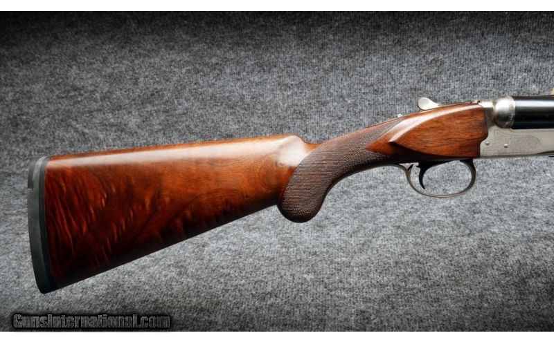 Description: Gorgeous walnut and beautiful scroll engraved steel combine to create this classic Winchester 23 XTR Pigeon Grade shotgun. The stock features a checkered round knob grip, and the forend is a checkered beavertail style with a Deeley style release. This shotgun is in excellent condition with minimal surface marks on the walnut or metal of the gun. SOLD Manufacturer: Between 1979-1984 Caliber Info: 12 Gauge Chambers: 3 inch Metal Condition: Excellent- minimal handling marks Wood Condition: Excellent- minimal handling marks Bore Condition: Excellent- bright, shiny bore Barrels: 26 inch vented rib Triggers: ~8 lb, single selective Stock: Walnut with checkered round knob grip Stock Dimensions: 14.5 inch LOP, 1.25 inch DAC, 2 inch DAH Fore End: Checkered walnut beavertail with Deeley style release Butt Pad: Pachmayr Decelerator recoil pad Weight: 7 lb, 4 oz Sights: White front and mid beads Chokes: Fixed- Mod, IC Item Location: Gainesville, VA |