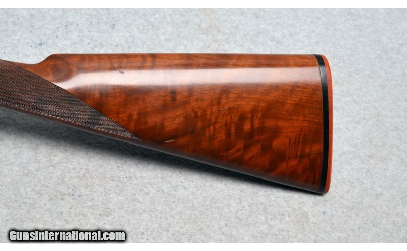 Description: Comes with hard case. This is a fine example of a WInchester 23 20 gauge pigeon grade shotgun! SOLD Manufacturer: PWK202772 Caliber Info: 20 GA Chambers: 3 Metal Condition: Very good with light handling and wear marks Wood Condition: Good with handling marks. There is a small crack on the left side of the stock. See pictures for details. Bore Condition: Bright and shiny. Barrels: 25.5 Triggers: Single selective trigger Stock: Checkered Walnut Stock Dimensions: 1 1/2" DAC, 2 1/2" DAH, 14" LOP Fore End: Checkered Walnut Butt Pad: Orange rubber Weight: 7 lbs 12 oz Sights: White front and middle beads. Chokes: Fixed Item Location: Hazelwood, MO |