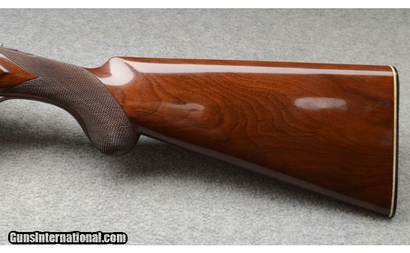 Description: SOLD Caliber Info: 12 gauge Chambers: 3 Inch Metal Condition: Excellent. You'll have to look hard for any defects. Wood Condition: Excellent. You'll have to look hard for any defects. Bore Condition: Bright and shiny. Barrels: 28 inch Triggers: Single selective Stock: Checkered walnut, round knob pistol grip Stock Dimensions: 14 inch LOP Fore End: Checkered beavertail Butt Pad: Black synthetic plate Weight: 7 lbs - 8 oz Sights: Ventilated rib with white beads. Chokes: Fixed IC and Full Extras: Rigid field case Item Location: Rogers,, MN |