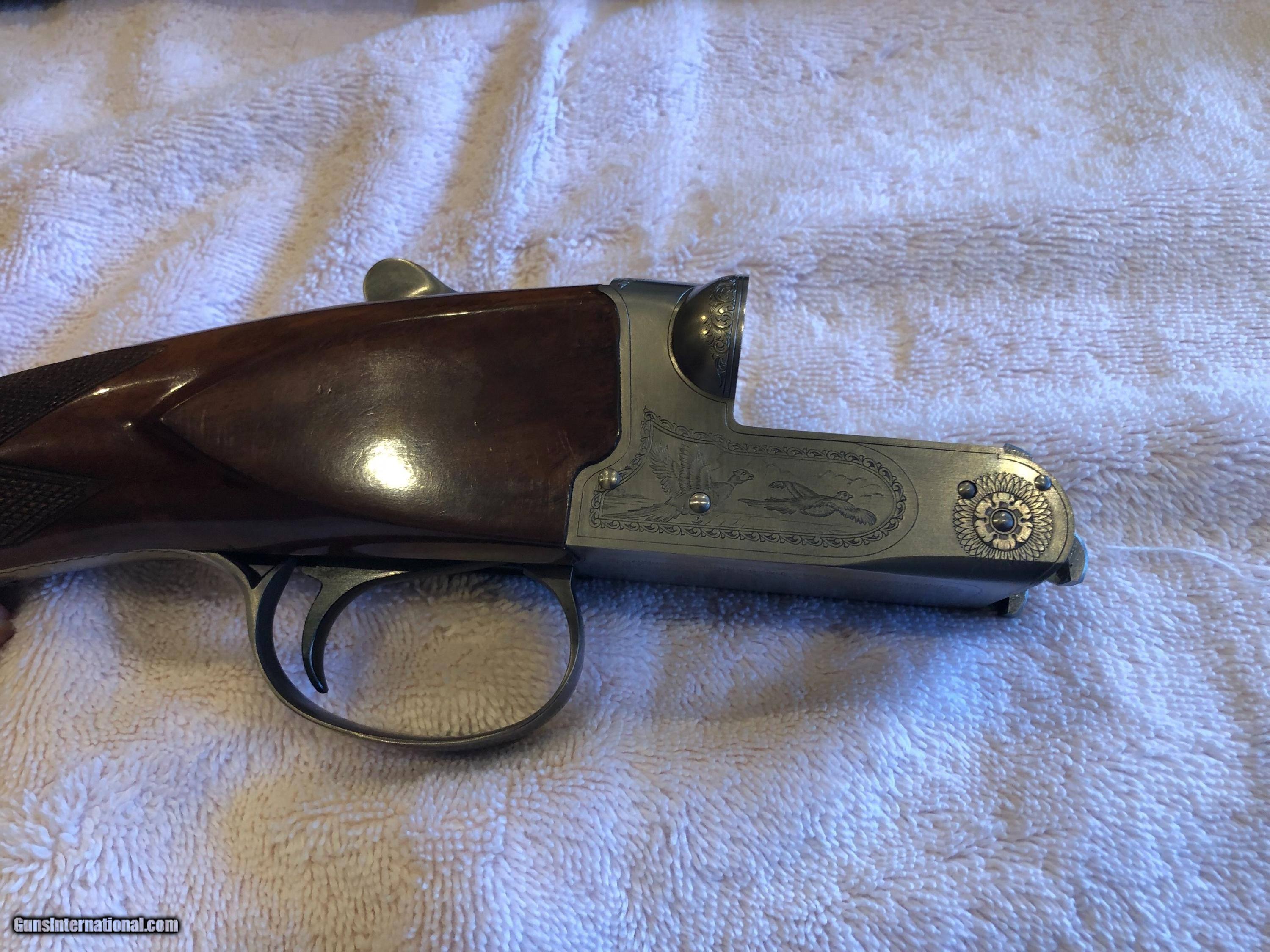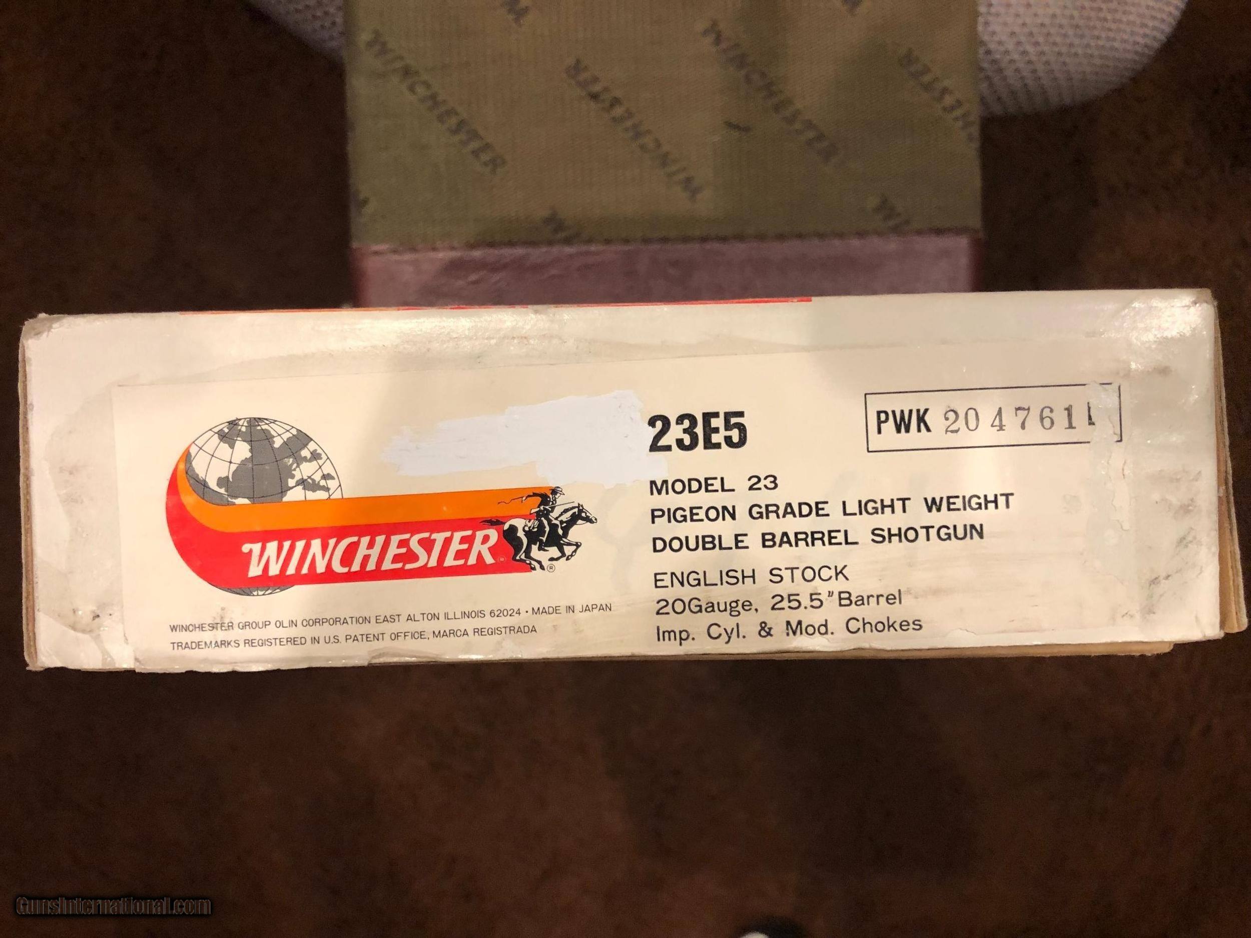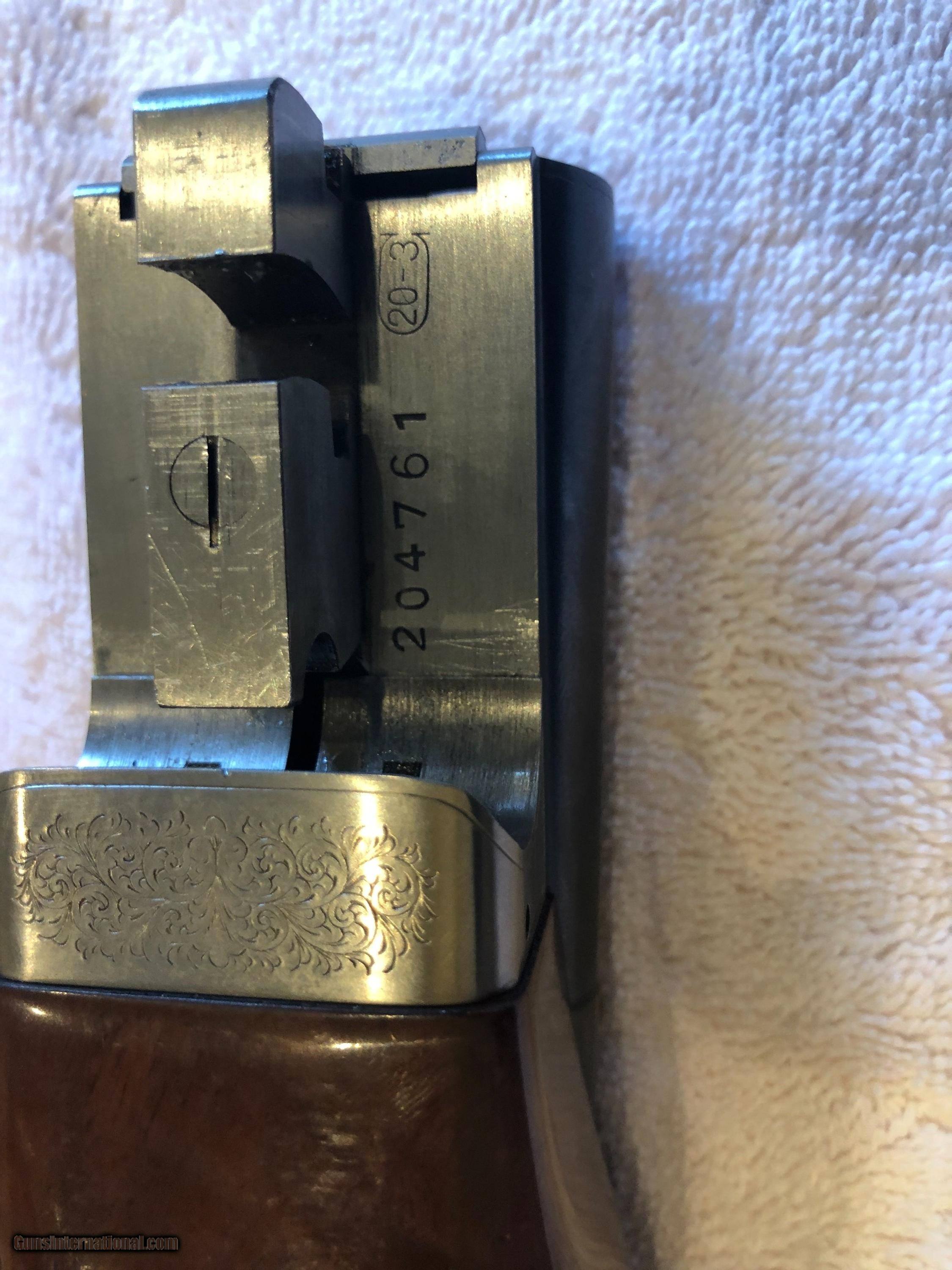 Description: WINCHESTER PIGEON GRADE XTR LIGHTWEIGHT IN 20 GA. 3" SXS. GUN IS IN VERY GOOD COND. HAS NOT BEEN SHOT MUCH. 2 VERY SMALL NICKS IN STOCK, DON'T SHOW IN PICS. 26" RIBBED BARRELS, IMP, MOD.BORE IS CLEEN AND SHINY. FINISH IS EXLNT OTHER THAN 2 MINOR NICKS IN LH SIDE OF STOCK. STANDARD ENGRAVING ON STOCK AND FORE ARM METAL. ALSO HAVE ORIGINAL WINCHESTER BOX IT CAME IN. COMES WITH LOCKING HARD CASE. SOLD Manufacturer: WINCHESTER Model: 23 Serial Number: 204761 Barrel Length: 26 Chambers: 3 Condition: VERY GOOD Metal Condition: XLNT Wood Condition: GOOD Bore Condition: XLNT |