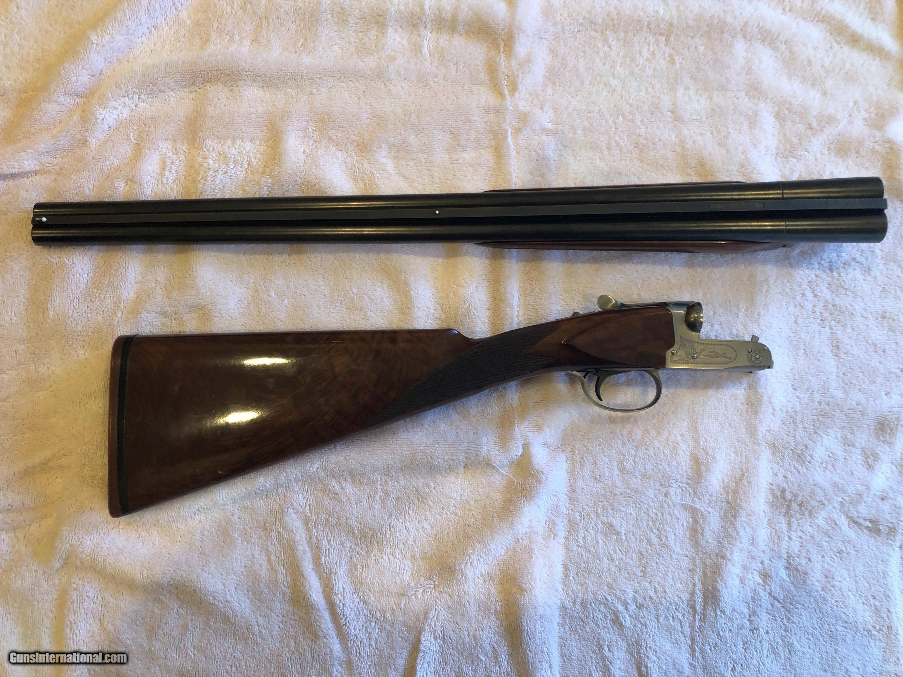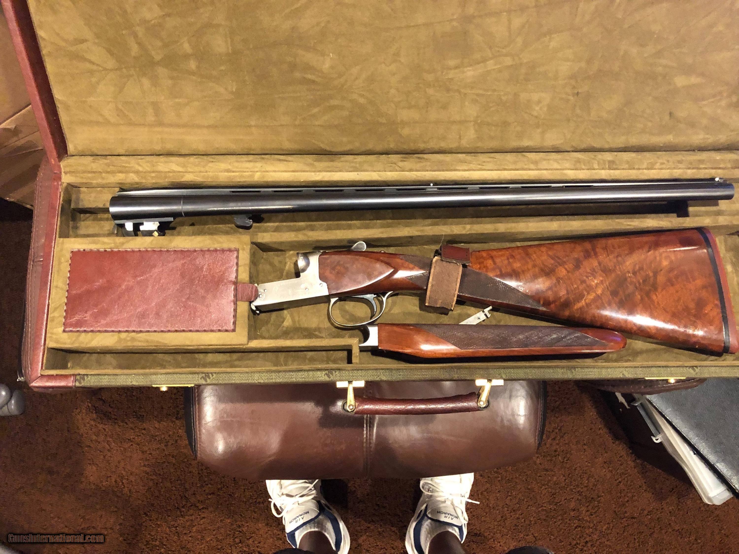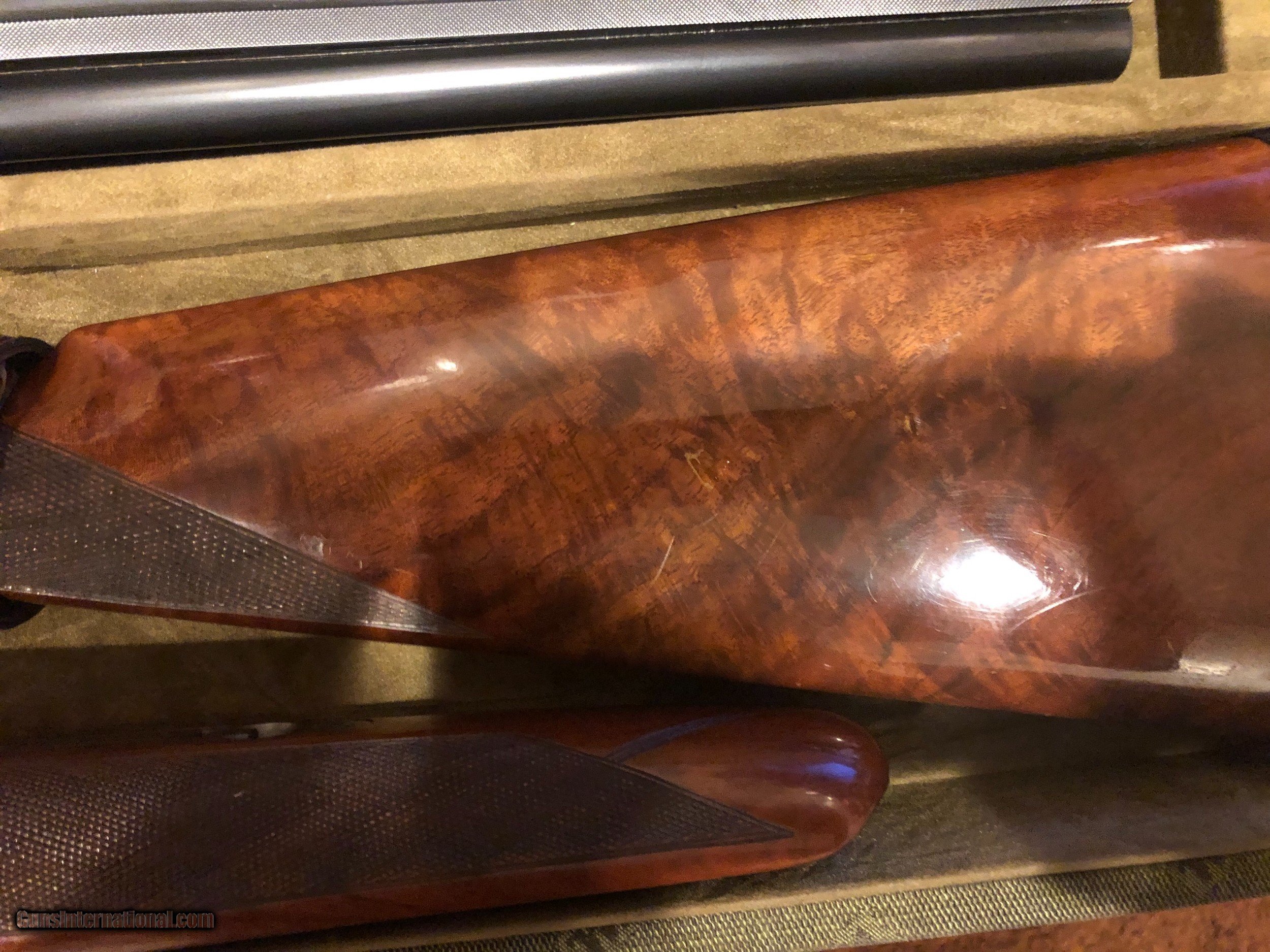 Description: WINCHESTER PIGEON GRADE XTR LIGHTWEIGHT IN 20 GA. 3" SXS. GUN IS IN VERY GOOD COND. HAS NOT BEEN SHOT MUCH. 2 VERY SMALL NICKS IN STOCK, DON'T SHOW IN PICS. 26" RIBBED BARRELS, IMP, MOD.BORE IS CLEEN AND SHINY. FINISH IS EXLNT OTHER THAN 2 MINOR NICKS IN LH SIDE OF STOCK. STANDARD ENGRAVING ON STOCK AND FORE ARM METAL. ALSO HAVE ORIGINAL WINCHESTER BOX IT CAME IN. COMES WITH LOCKING HARD CASE. SOLD Manufacturer: WINCHESTER Model: 23 Serial Number: 204761 Barrel Length: 26 Chambers: 3 Condition: VERY GOOD Metal Condition: XLNT Wood Condition: GOOD Bore Condition: XLNT |