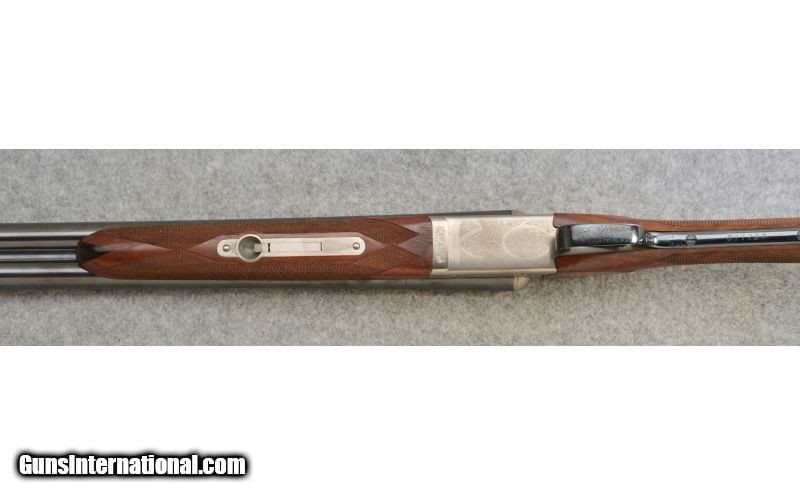 Description: Very good condition overall with fitted case. Sold as a set with Id# 8511389. The Firearms Have Consecutive Serial Numbers. SOLD Caliber Info: 12 Gauge Chambers: 2 3/4 Metal Condition: Very Good Wood Condition: Very Good Bore Condition: Excellent Barrels: 28" Blued Steel with Tapered Concave Rib Triggers: Single Selective Trigger with Ejectors Stock: Checkered Walnut Straight Grip Walnut Stock Dimensions: DAC: 1 3/8", DAH: 2", Cast off: 1/8", LOP: 14 1/4 Fore End: Checkered Walnut Semi-Splinter Fore Arm Butt Pad: Leather Covered Recoil Pad Weight: 6 lbs. 10 ozs. Sights: Single Bead Chokes: Fixed: Modified & Improved Cylinder Item Location: Hamburg, PA |