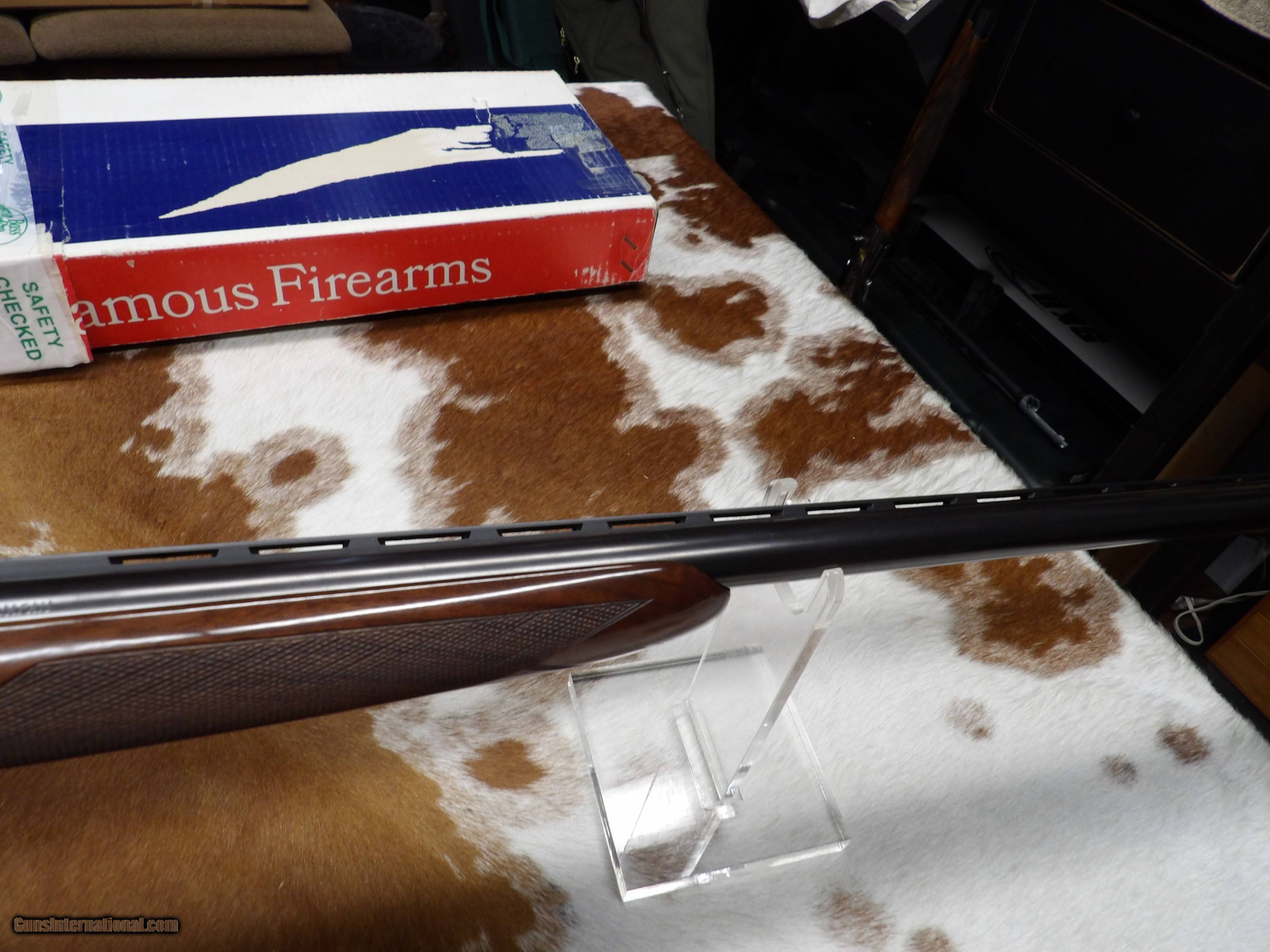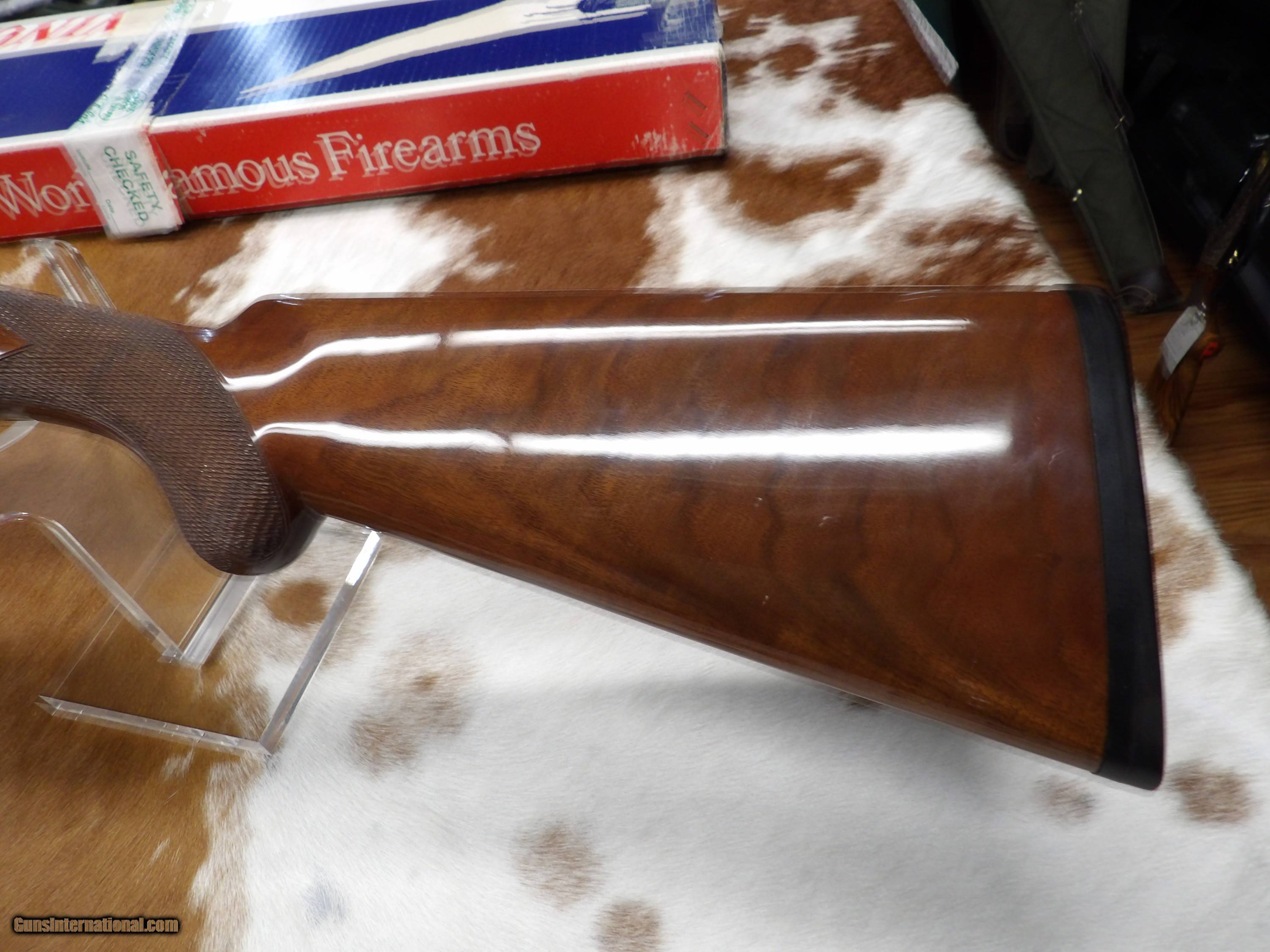 Description: WIncheter Model 23 Pigeon Grade XTR, This gun appears to have been shot very little if ever. It comes with the original box which appears to be in decent condition. This gun has 3 inch chambers and mod and full chokes with a single trigger. SOLD Manufacturer: Winchester Model: Model 23 XTR Pigeon Grade Barrel Length: 28 Bore: 731 Chambers: 3 Ejectors: YES Condition: As New Metal Condition: 100% Wood Condition: 100% Bore Condition: Shiny and Bright Triggers: single Stock Comb: 1 5/8 Stock Heel: 2 3/16 Stock Cast: Slight off Fore End: Beavertail LOP: 14.25 Weight: 7 lbs 8 oz Chokes: fixed Choke Left: Full 26 Choke Right: mod 17 |