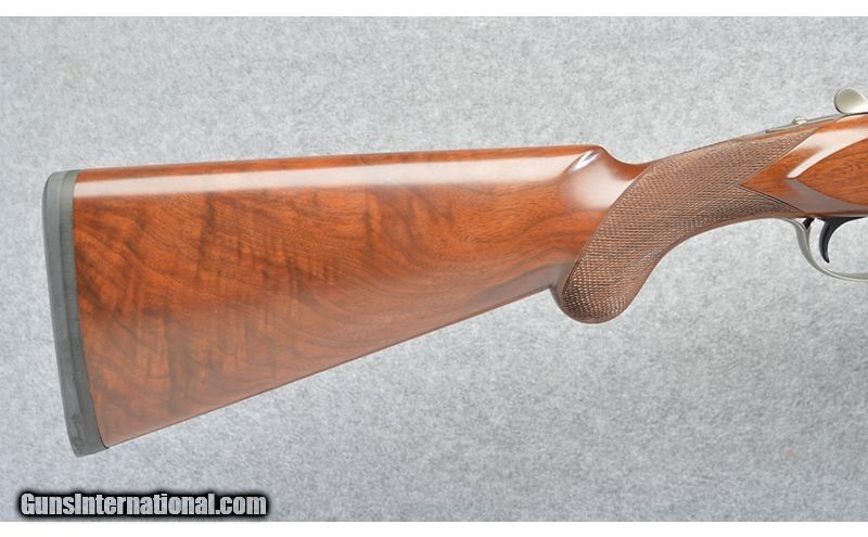 Description: Pigeon Grade 12 gauge. Coin finished boxlock action with scroll engraving, Round knob pistol grip walnut stock. Fixed Modified and Imp.Cylinder chokes. Overall excellent condition with makers travel case. 12 Gauge SOLD Chambers: 3 inch Metal Condition: Excellent Wood Condition: Excellent Barrels: 28 Inch Triggers: Single Select Stock Dimensions: 14 Inch LOP Fore End: Beavertail Butt Pad: Winchester Recoil Pad Weight: 7 lbs 6oz Sights: Matted Rib. White Mid and Front Bead Chokes: Modified / Imp. Cylinder Item Location: Buda, TX |