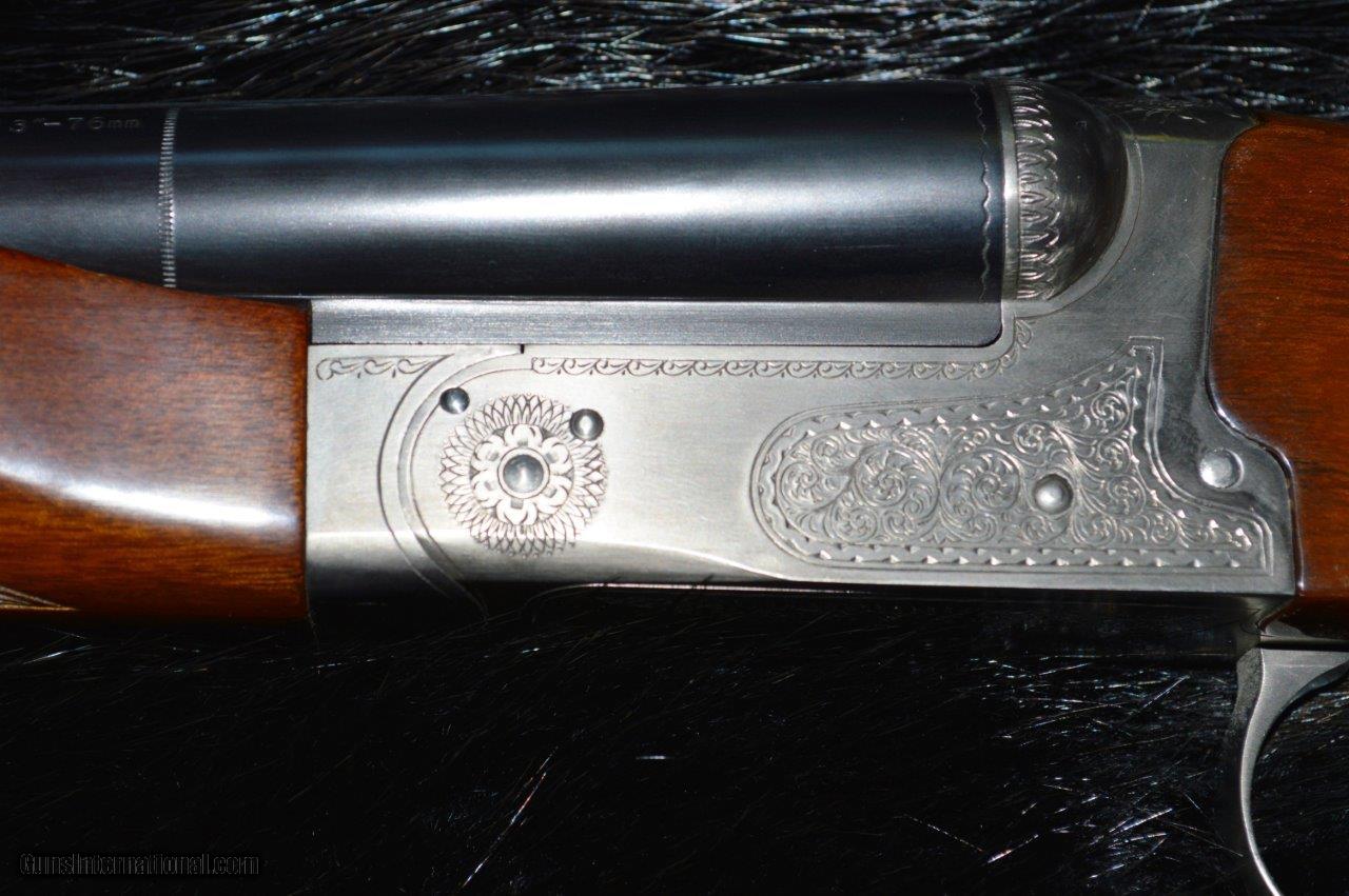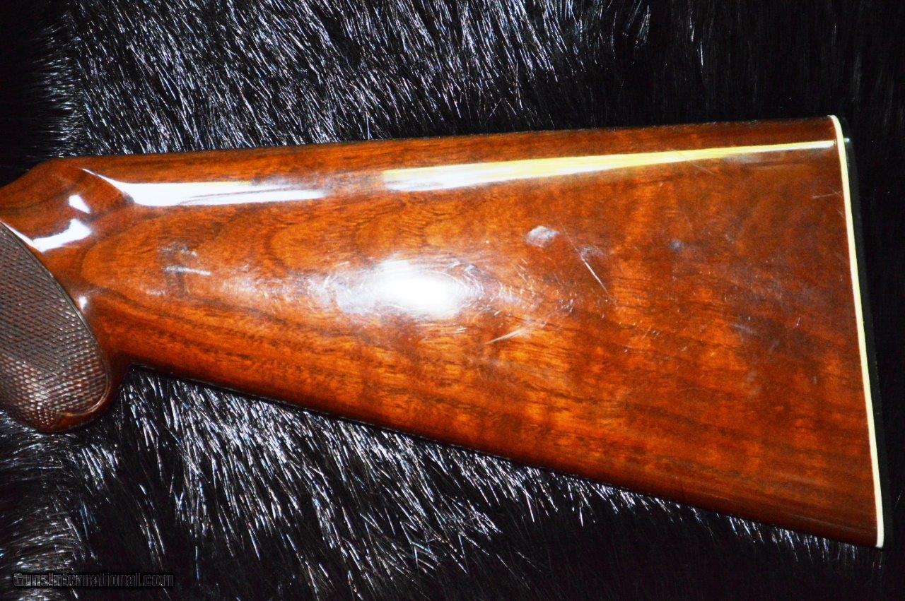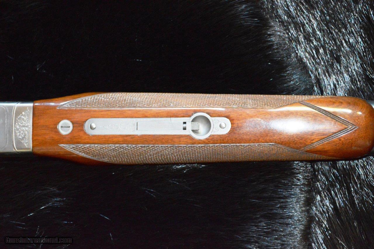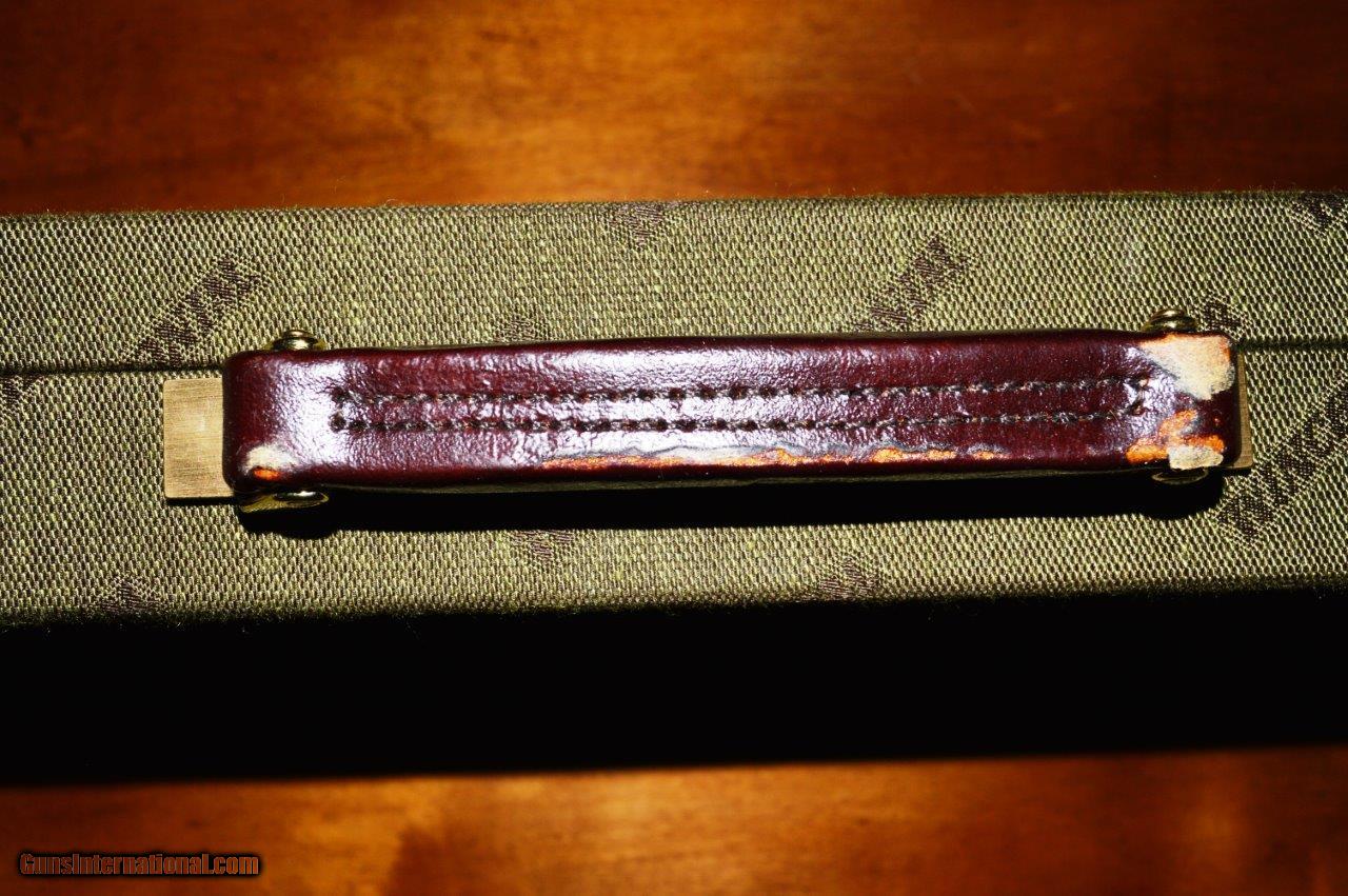 Description: This is a Winchester Model 23 XTR Pigeon 20 gauge with 26 inch barrels that are chambered 3" and choked IC/MOD. The barrels are vent rib and it has ejectors. It weighs 6-1/2 lbs. The stock features a round knob pistol grip, factory plastic butt plate, and the receiver has rose and scroll engraving on coin finished silver metal. The LOP is 14” and the drop at the comb is 1-1/2” and the drop at the heel is 2-1/2”. It has a beavertail forend and its in 99.9% condition with the original factory Winchester hand tags, manual and hard case that is in the case's factory cardboard box. It opens and closes tightly because it's next to new. It obviously has been shot very little. Although looking at the standing breech, I'm not sure its been shot at all. It also has nicely figured walnut on both sides of the stock. Plus $50 shipping & insurance. SOLD |