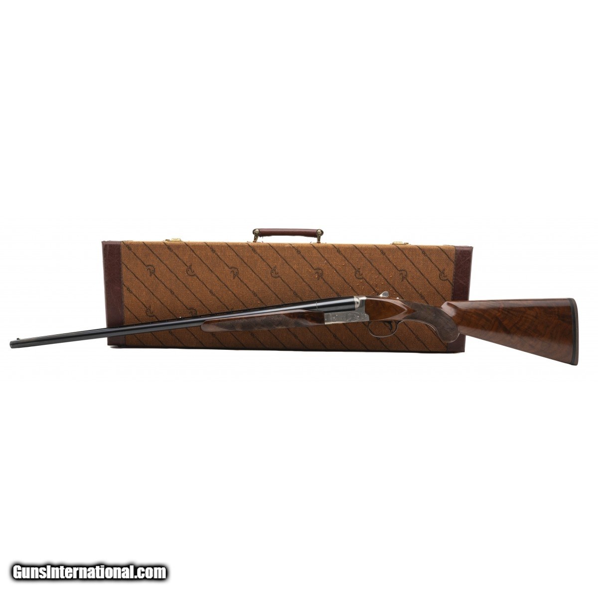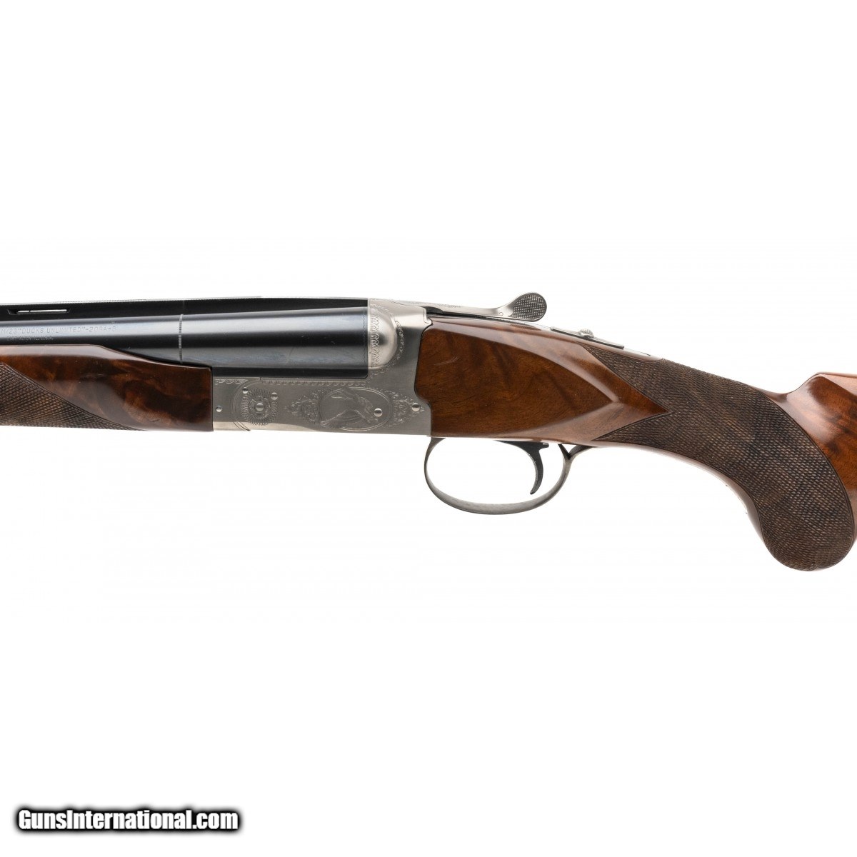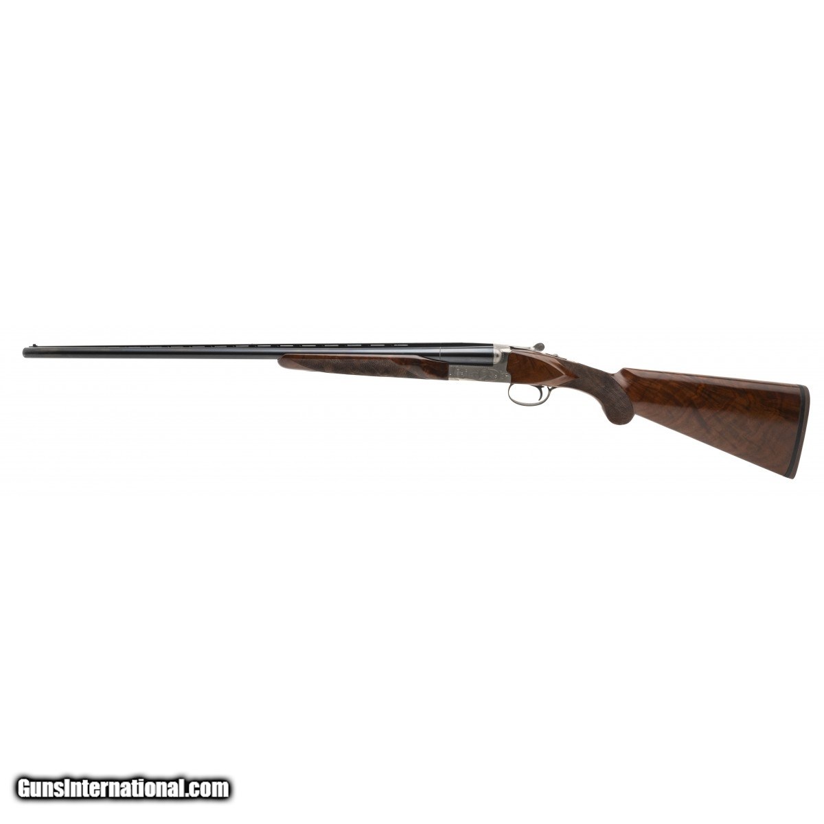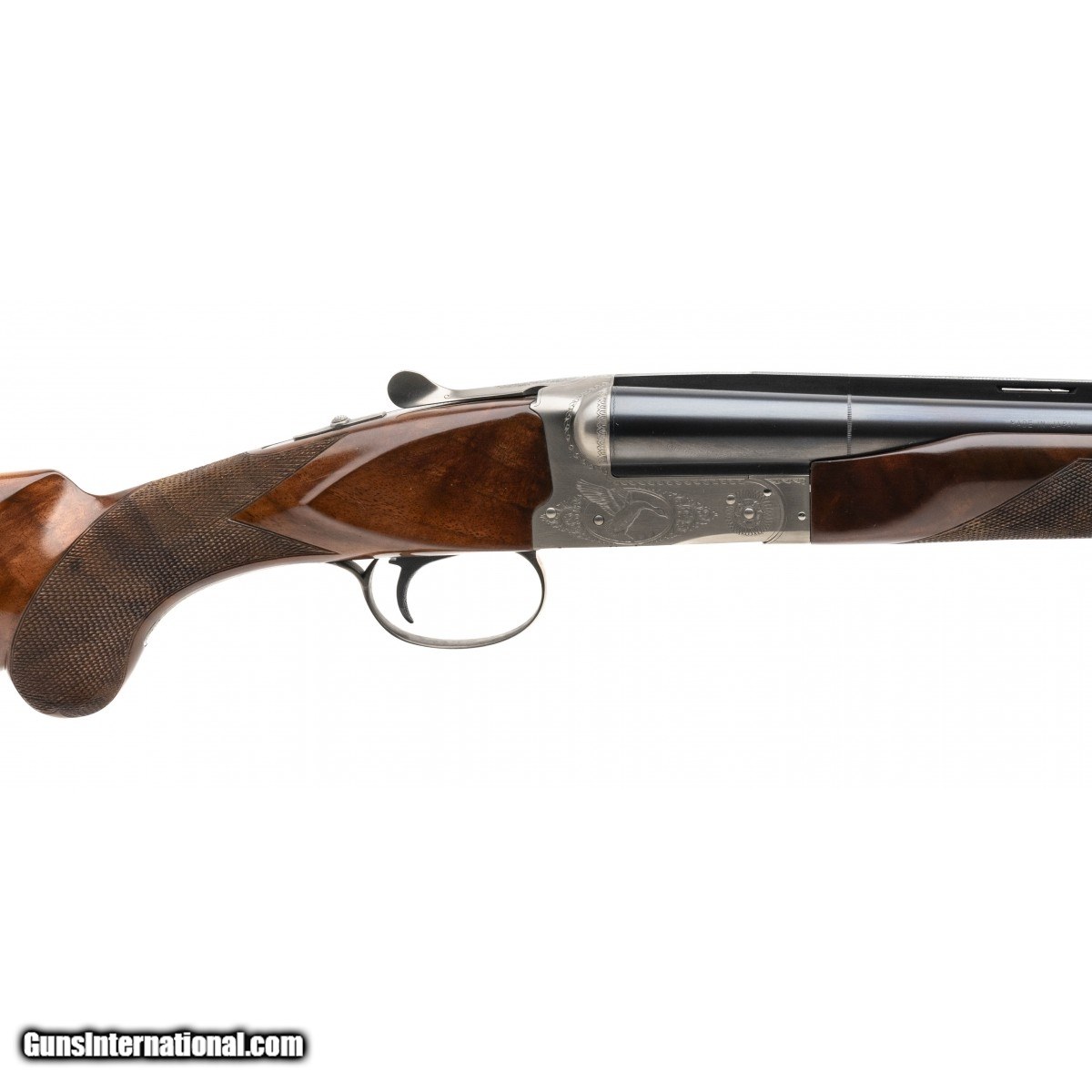 Description: " SN: 83DU425E. Made in Japan circa 1983, 20 gauge side by side with 28"" vent rib barrels with a white middle and front bead, 3"" chambers and fixed chokes measuring .015/.034 (M/XF). Box lock with a selective single trigger and auto ejectors. 14 1/8"" LOP to a factory Winchester brown rubber pad, 1 3/8"" drop at the nose, 2 3/8"" drop at the heel with a slight cast off and toe out. Overall in very good condition, barrels have bright bores and some light handling marks, action is in near perfect condition and the stock and forearm only have some light handling marks as well. Barrels are on face, top lever is right of center and overall weight is 7lbs. Comes with Winchester takedown case. (Consignment) SOLD |