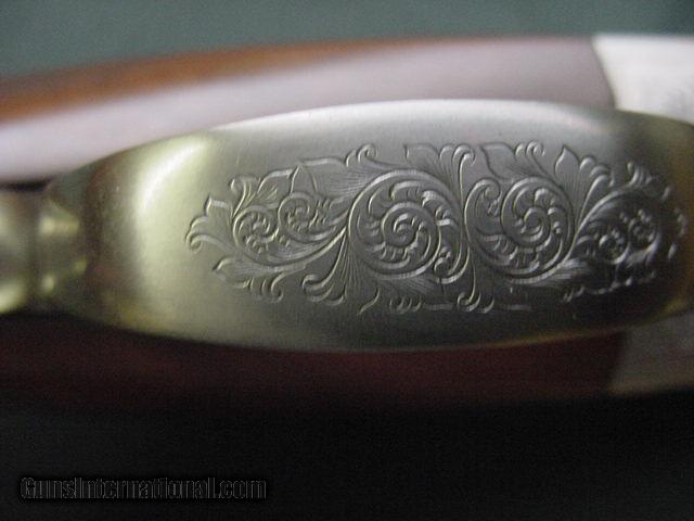 Description: 5061 Winchester Model 23 Golden Quail 20 gauge 26bls ic/m STRAIGHT GRIP game scene engraved receiver ejectors fleur-des-lies checkering GOLD raise relief Quail AAA+Fancy Walnut best I have seen Winchester serialized box to the gun.NEW IN BOX. dont miss this one SOLD |