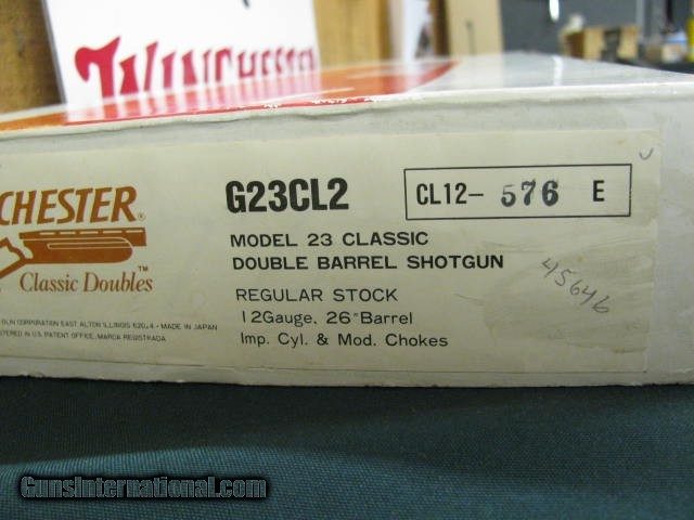 6804 Winchester 23 Classic 12 gauge 26 inch barrels, 2 3/4& 3 inch chambers, ejectors, vent rib, pistol grip with cap, Winchester butt pad, GOLD RAISE