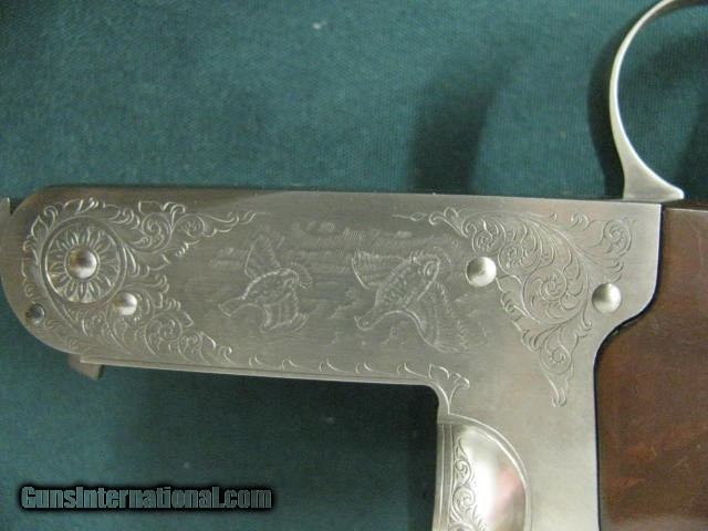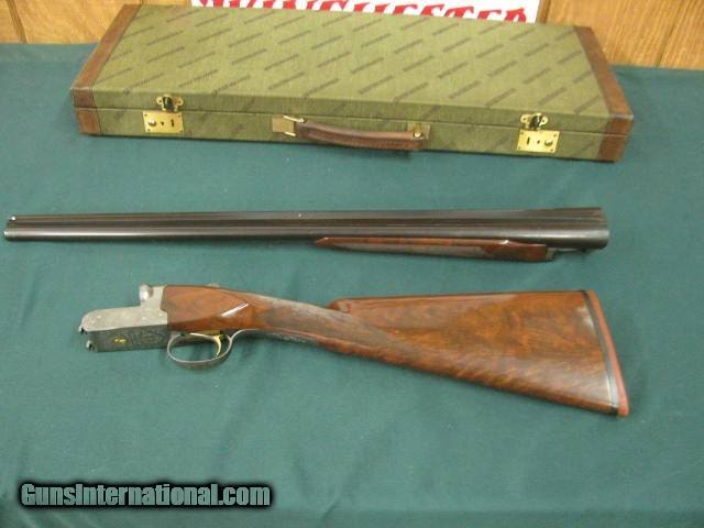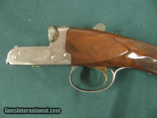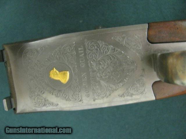 Description: 6930 Winchester 23 Golden Quail 28 gauge 26 barrels ic/mod,single select trigger, solid rib, quail pheasants engraved coin silver receiver, bores/shiny/opens/close/tite, ejectors, Winchester butt pad, ALL ORIGINAL, green Winchester case/keys,AAA+Fancy Walnut highly figured,STRAIGHT GRIP, ONLY 500 MFG THIS #314. 98% or better condition. priced to sell SOLD |