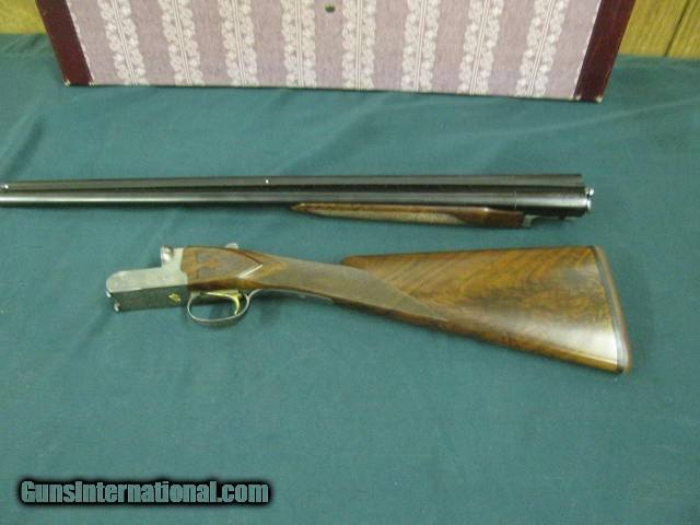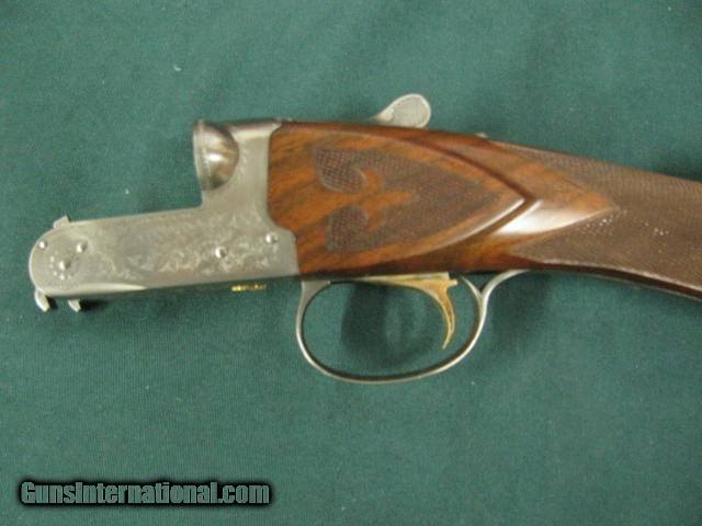 Description: 7224 Winchester 23 Grand Canadian 20 gauge 26 inch barrels ic mod, STRAIGHT GRIP, vent rib ejectors, beaver tail, single select trigger, Winchester butt pad all original 99% condition Correct Canadian case. rose and scroll coin silver receiver, 2 beads, only 500 mfg this is #252. AAA++ FEATHER CROTCH WALNUT, HARD TO GET. none finer SOLD Shotgun Gauge: 20 Gauge |