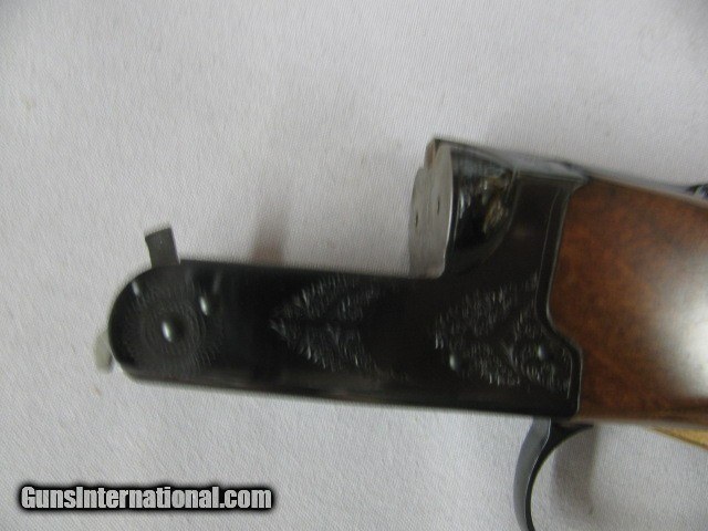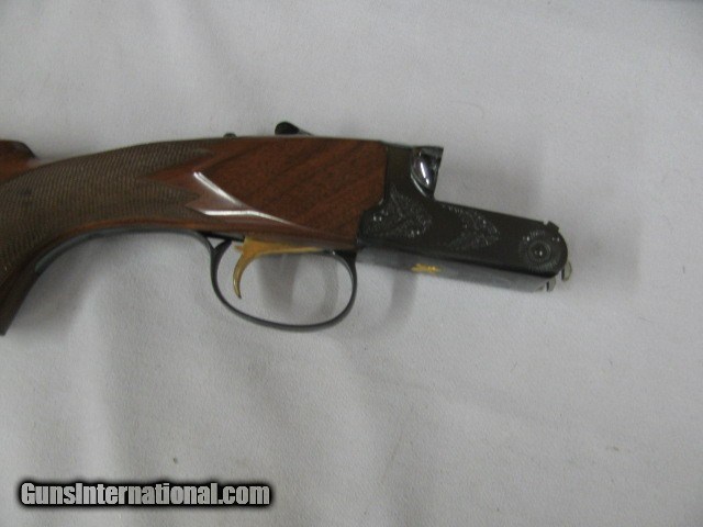 Description: 7518 Winchester 23 Classic 410 gauge 26 inch barrels mod/full, pistol grip with cap, vent rib single select trigger, ejectors.Winchester butt pad. ALL ORIGINAL, 99% condition, as new in case, keys, AAA+ Fancy Walnut figure gold raised relief quail on bottom of receiver. only 900 made this is #408. none finer, time capsule survivor,came from west TEXAS collection. SOLD Shotgun Gauge: .410 Gauge |