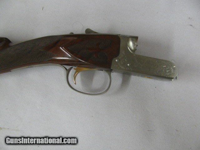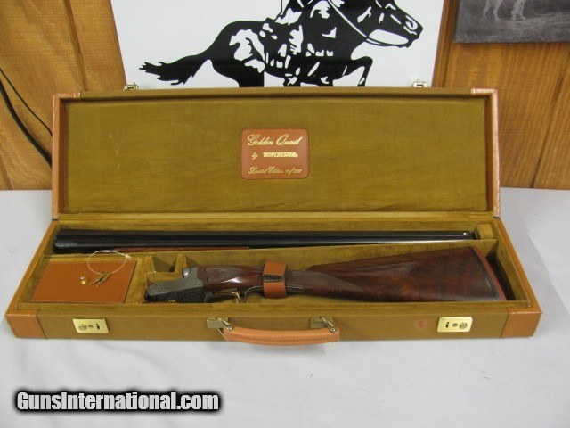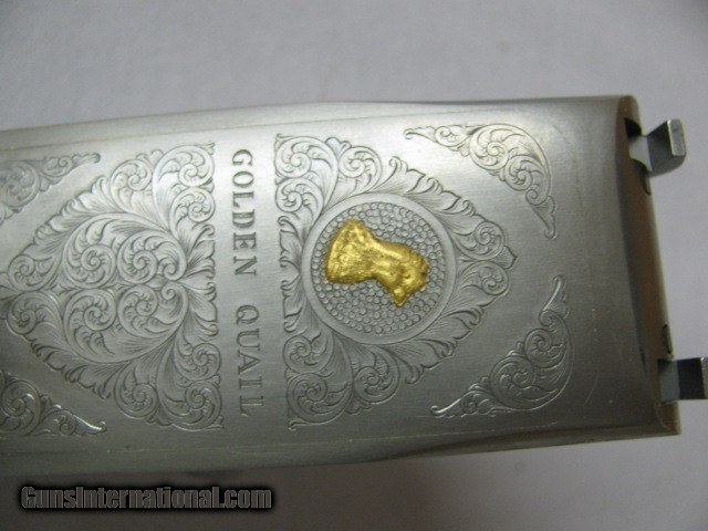 Description: 7520 Winchester 23 GOLDEN QUAIL 410 gauge.mod/full, 26 inch barrels solid rib, single select trigger, ejectors, front white bead, Winchester Golden Quail case/keys, gold raise relief quail head on bottom of coin silver receiver, Winchester butt pad, STRAIGHT GRIP, 99% condition, AAA+Fancy Highly figured walnut,all original, # 157 out of 500 mfg. dont miss this one. SOLD Shotgun Gauge: .410 Gauge |