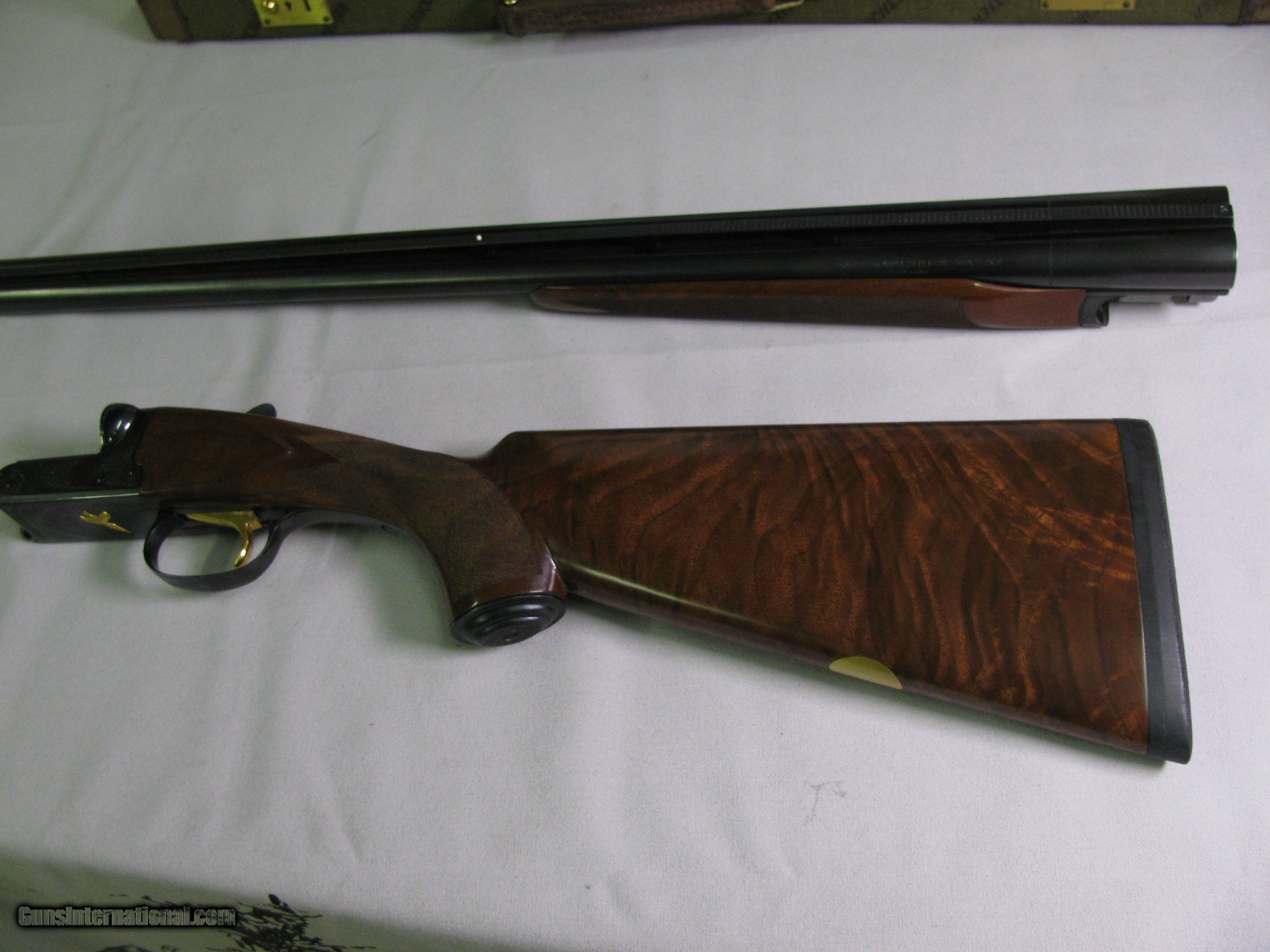 Description: 7718 Winchester 23 CLASSIC 20 gauge 26 inch barrels ic and mod fixed, beavertail forend ejectors,vent rib, single select trigger,, pistol grip with cap, Winchester butt pad, servicable Winchester case, key, AAA++Fancy Highly figured walnut,AS NEW IN CASE. 2 white beads, opens closes tite. SOLD |