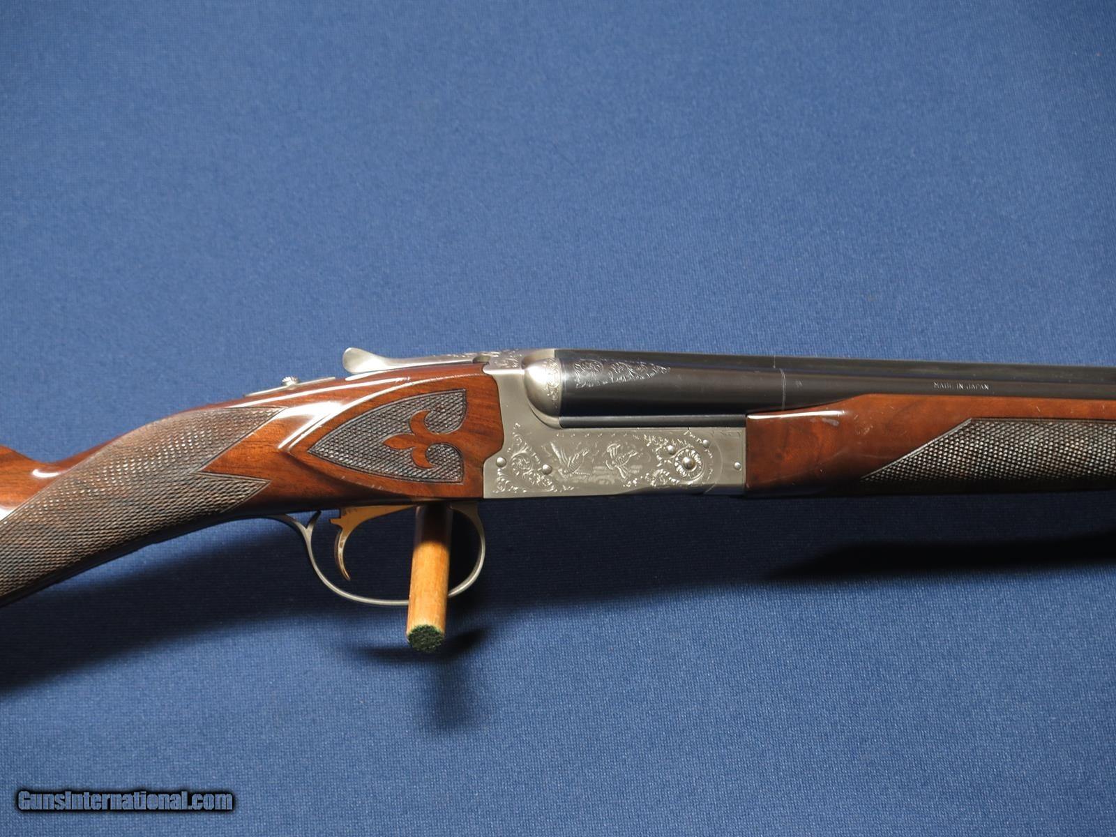 Description: Winchester 23 Golden Quail 410. 25.5 inch barrels. Mod and Full. 2 1/2 & 3 inch. 14 1/4 LOP. S.S.T. Ejectors. Woods shows some hunting use. Bluing is 97%. Action is tight. Top lever right of center. Excellent bores. SOLD Shotgun Gauge: .410 Gauge |
