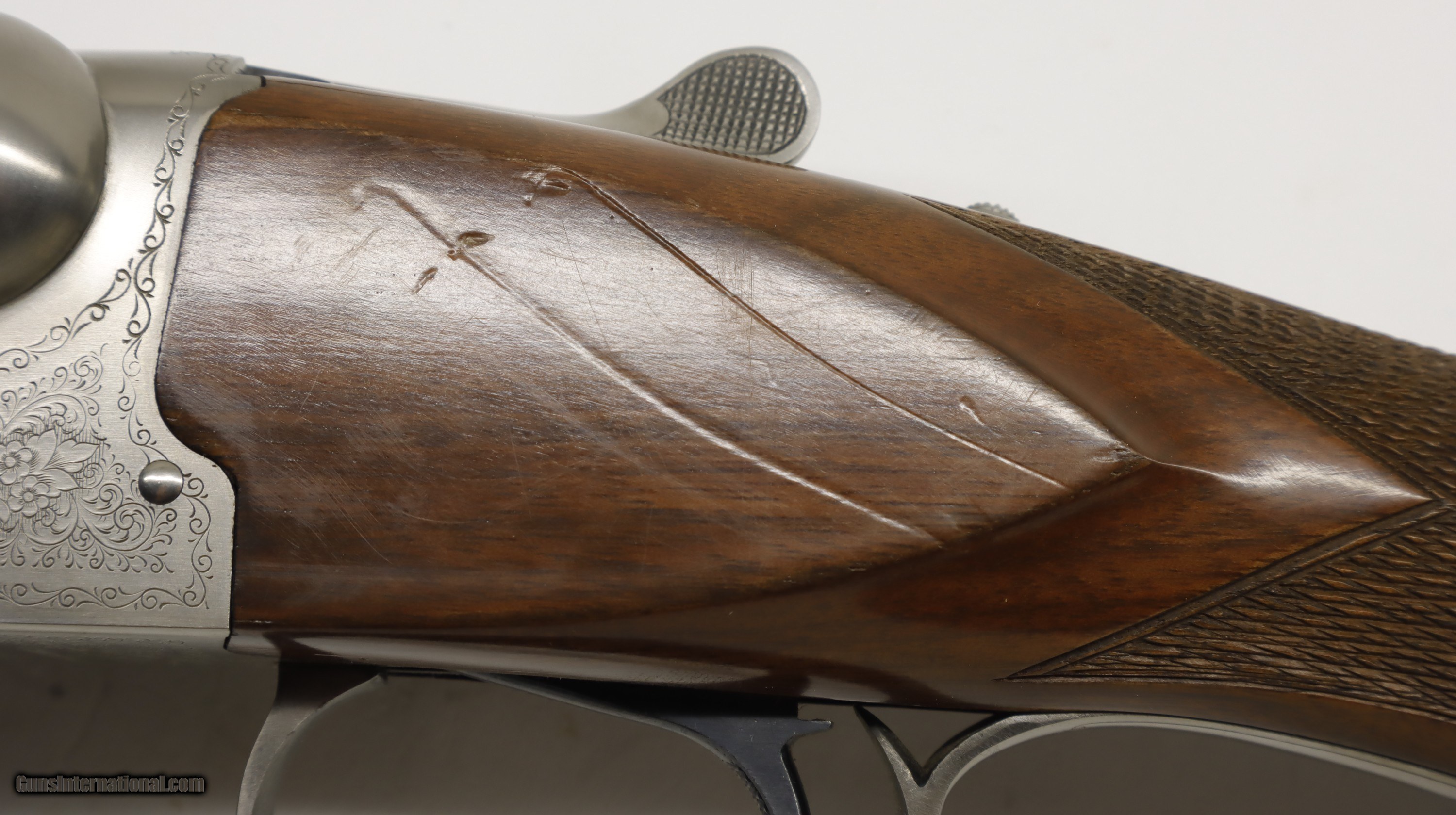 Description: Winchester Model 23 Pigeon Grade XTR, 12ga, 26" barrels, Single Selective Trigger and auto ejectors. SN is PWK0110xxE. Factory finish on both wood and metal, factory recoil pad. Gun has not been shot much at all, metal is near perfect. Wood shows some light handeling marks as shown. A light refinish would bring this gun to almost new condition. We will trade for silver and gold. We accept personal check, any certified funds, Ven-mo or Ze-lle. We can also take your credit card, +3%. Email me if you would like these pictures sent to you, they will come through bigger and better than on the listing page here. We do offer Layaway. Our standard terms are 25% down, 90 days. Initial deposit is not refundable. Email me with any questions. Please check your local laws to confirm it is legal to own in your state! Buyer pays $60 shipping and insurance in a brand new PLANO hard case to your FFL in the lower 48. AK, HI or PR is extra. I will ship to California, as long as it is legal, NO PROBLEM! All my guns come with a non-firing, 3 day unconditional return privilege, from the day UPS delivers to your dealer. Buyer pays shipping both ways if the gun comes back. Please make sure to make it to your FFL to inspect within the 3 days. I am a licensed FFL, and will include a copy of my FFL with the gun for your dealer’s records. I will ship to a C&R if the gun is eligible. I will ship to California, but you need to confirm the gun is legal where you are, California or other. WE BUY AND CONSIGN GUNS AND GUN COLLECTIONS! We will travel to pick up collections! I am always looking for good clean, old original Winchesters to buy, consign, or trade, especially Pre '64's model 70's and model 54's. WE ALSO TRADE FOR CLASSIC CARS AND TRUCKS! We also trade for gold and silver. SOLD Shotgun Gauge: 12 Gauge Manufacturer: Winchester Model: 23 Pigeon Barrel Length: 26 Condition: Used |