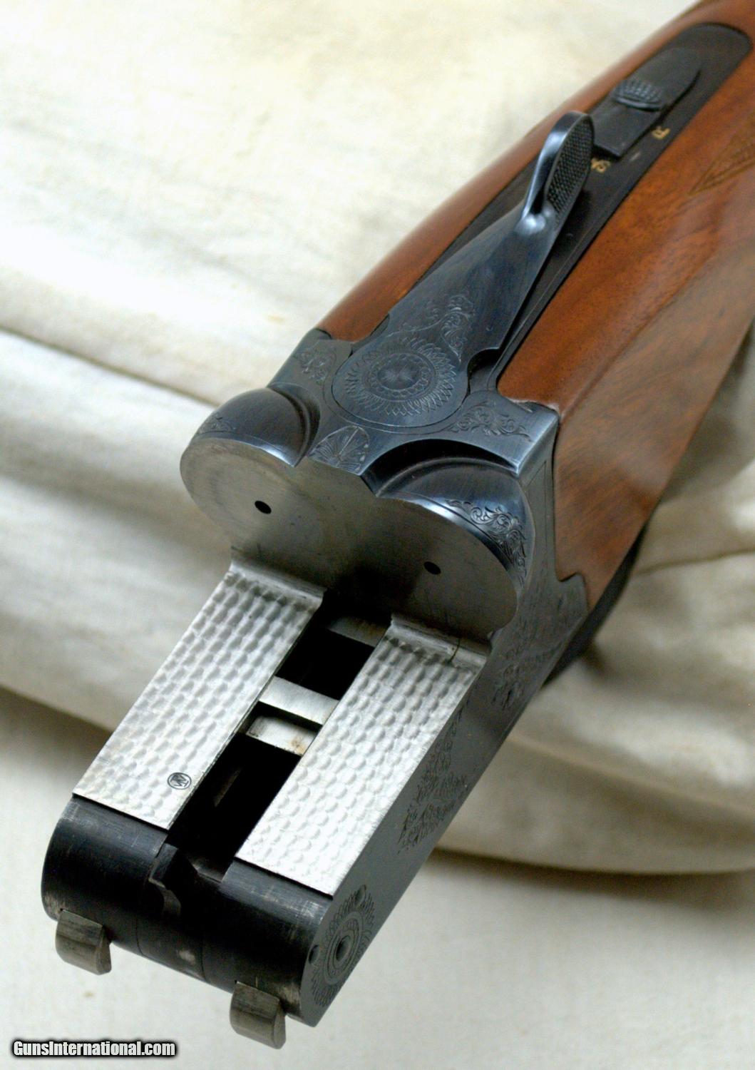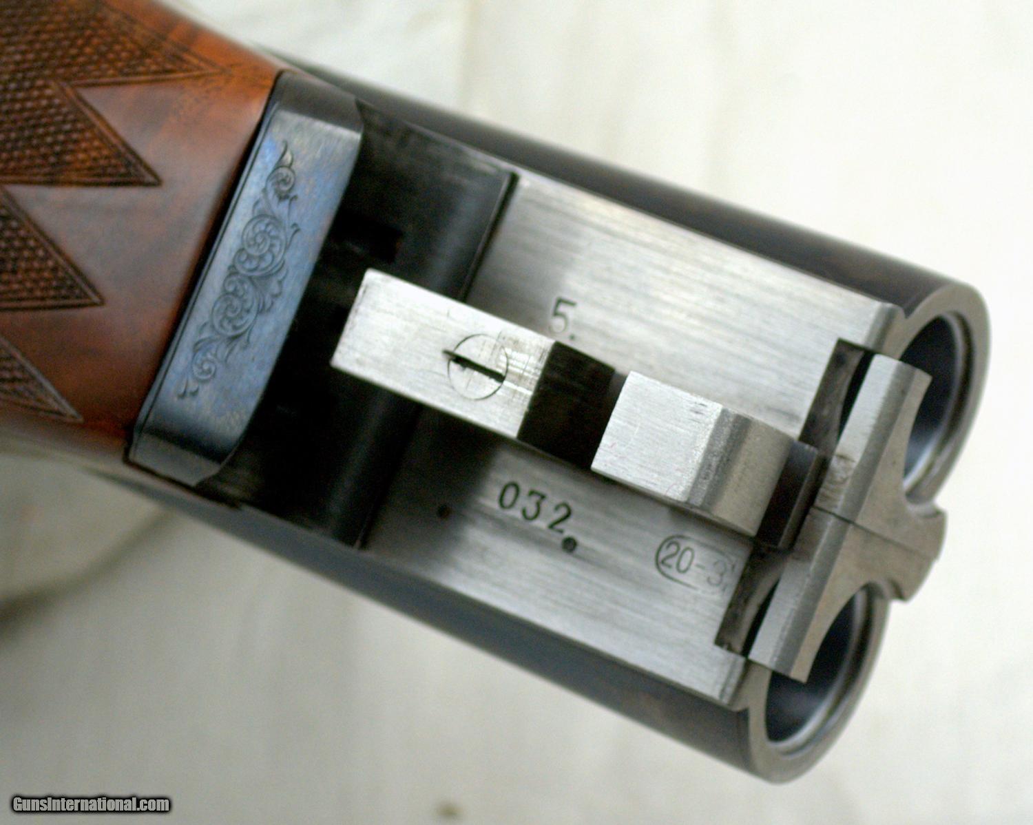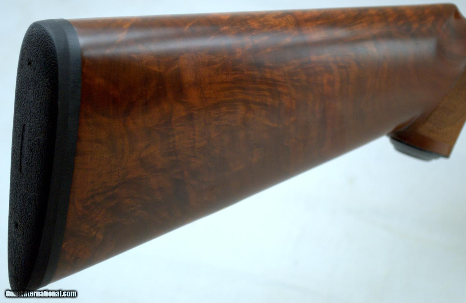 Description: WINCHESTER MODEL 23 CLASSIC 20GA ... 26" Matte Vent Rib Barrels ... LOA 43" ... LOP 14 1/2" ... DAH 2" ... DAC 1 1/2" ... 3" chambers ... IC / MOD ... ejectors ... Gold washed single trigger ... Selective tang mounted safety ... ebony tip insert ... steel grip cap ... engraved Manufactured in Japan, the Model 23 Classic was only imported in 1986 and 1987. Dual white bead sights on the matte rib with the East Alton address on the left barrel, "MADE IN JAPAN" on the right, a gold washed "20" marking on the rear of the rib, improved cylinder and modified chokes, 2 3/4 and 3 inch chambers with ejectors. The frame is lightly scroll engraved with a gold finished single trigger and a gold inlaid pheasant on the underside of the receiver. Tang mounted automatic safety with barrel selector. Mounted on a checkered walnut pistol grip stock with a nicely veed, ebony insert at the forearm tip. Features an engraved steel grip cap, unmarked gold inlaid inscription panel in the toe line of the butt stock and a solid Winchester recoil pad. Length of pull is 14 1/2 inches. Presented complete with a Winchester luggage-style takedown case and the original factory box numbered to the gun. The gun is beautiful and in like new condition. SHIPPING INFORMATION: Buyer pays all shipping costs. We offer flat rate $35 shipping & insurance to lower 48 states on guns under $2000. Hand guns ship 2nd Day. (M-F delivery only) Long guns ship ground. (3 to 5 days) We offer combined shipping: $35 for first gun and $15 for each additional in same box. Shipments will be delayed on any holiday. Alaska & Hawaii will be calculated on each order. We make every effort to ship the same day we receive payment & paperwork. SOLD Manufacturer: Winchester Model: 23 Serial Number: CL20032E Bore: 20 Chambers: 3 Ejectors: Yes Condition: Like New Metal Condition: Like New Wood Condition: Excellent Bore Condition: Shiney Barrels: 26 Action: Inertial Triggers: Single Gauge Info: 20 Stock: Walnut Stock Comb: 1 1/2 Stock Heel: 2 Stock Cast: neutral Fore End: ebony Butt Pad: Winchester Solid LOP: 14 1/2 Rib: Matte Vent Finish: Blue Sights: Dual white bead Manufacture Date: 1986 Chokes: Fixed Choke Left: IC Choke Right: Mod Engraving: Factory Extras: Gold inlaid Case: Winchester Item Location: Texas |