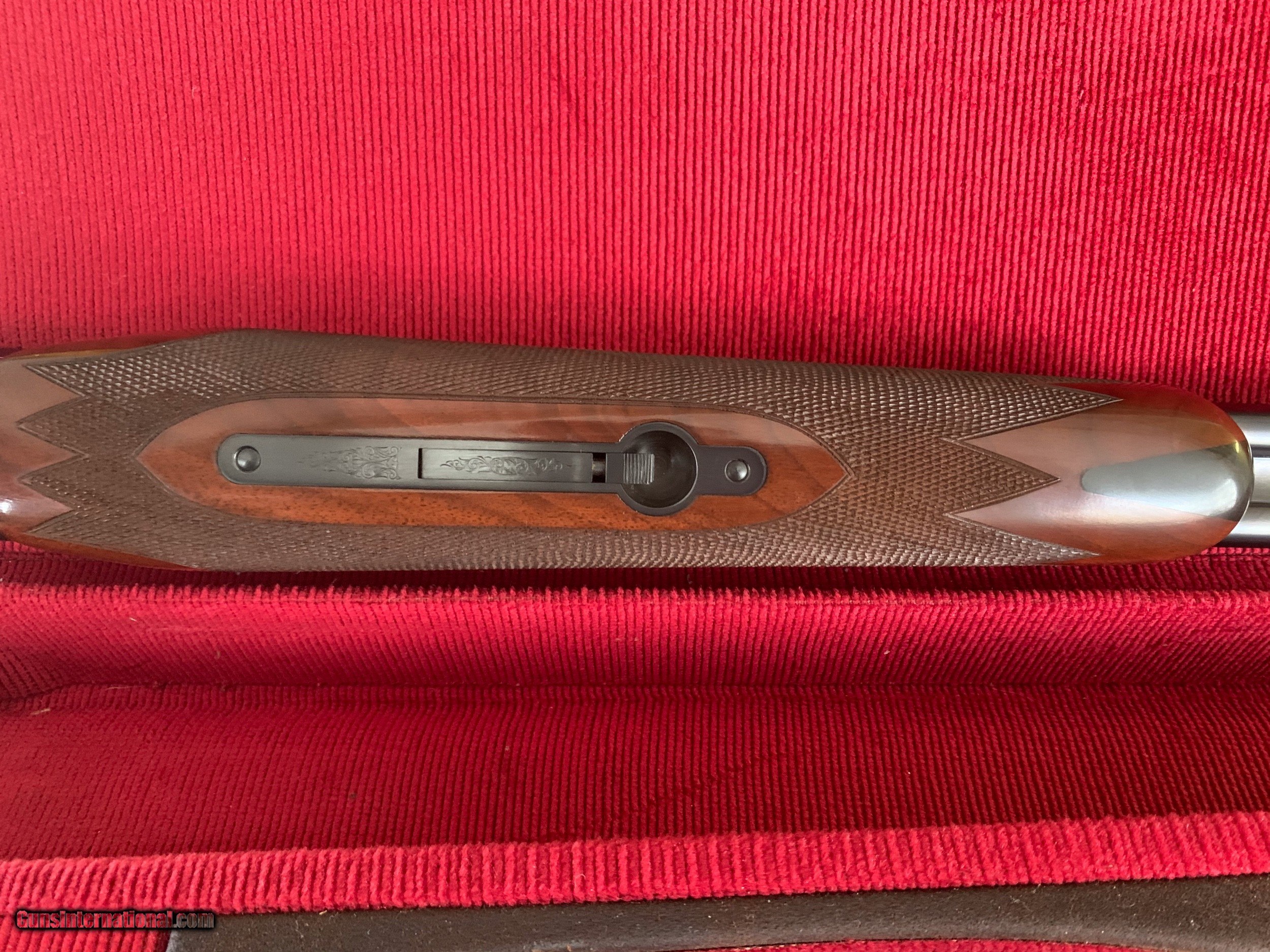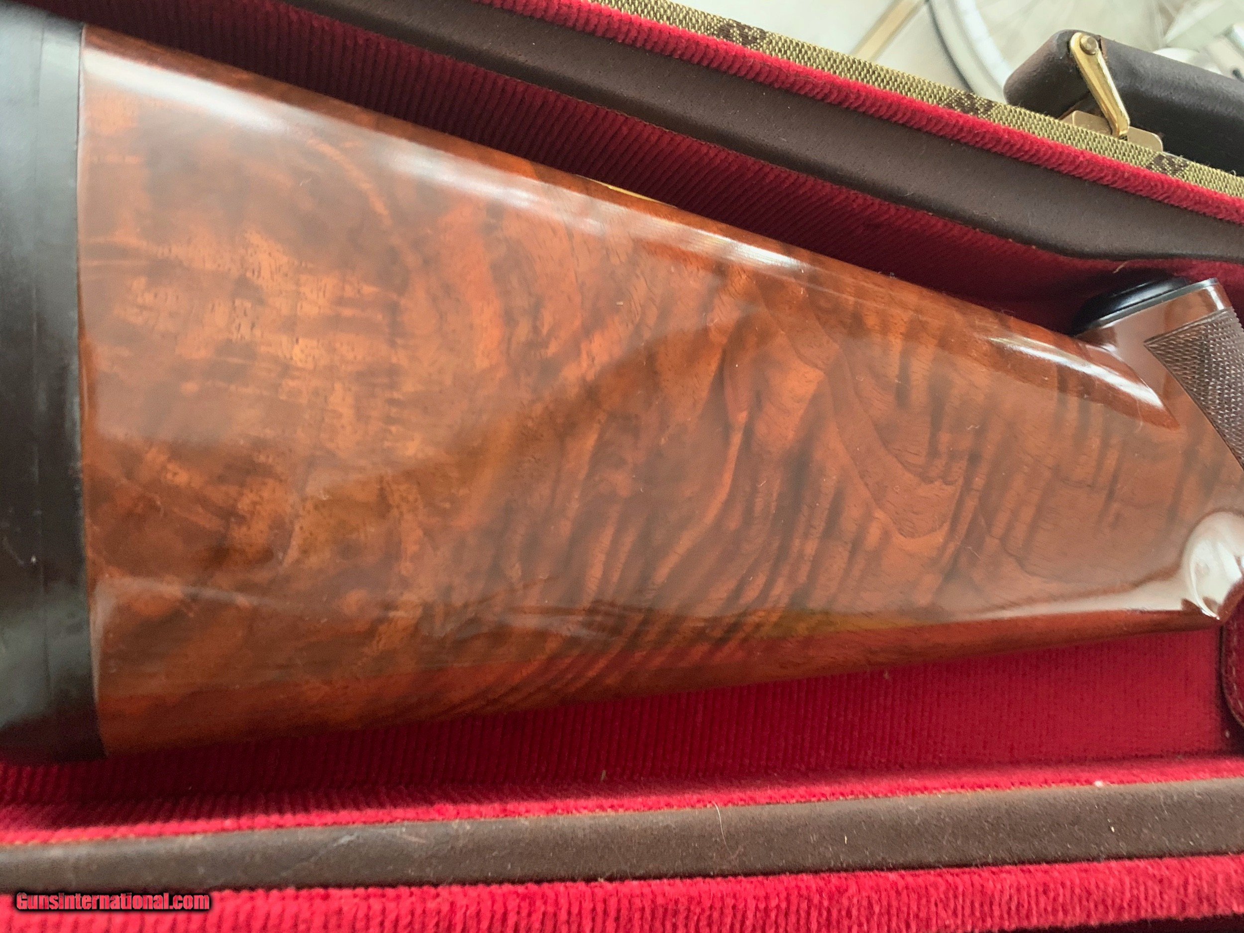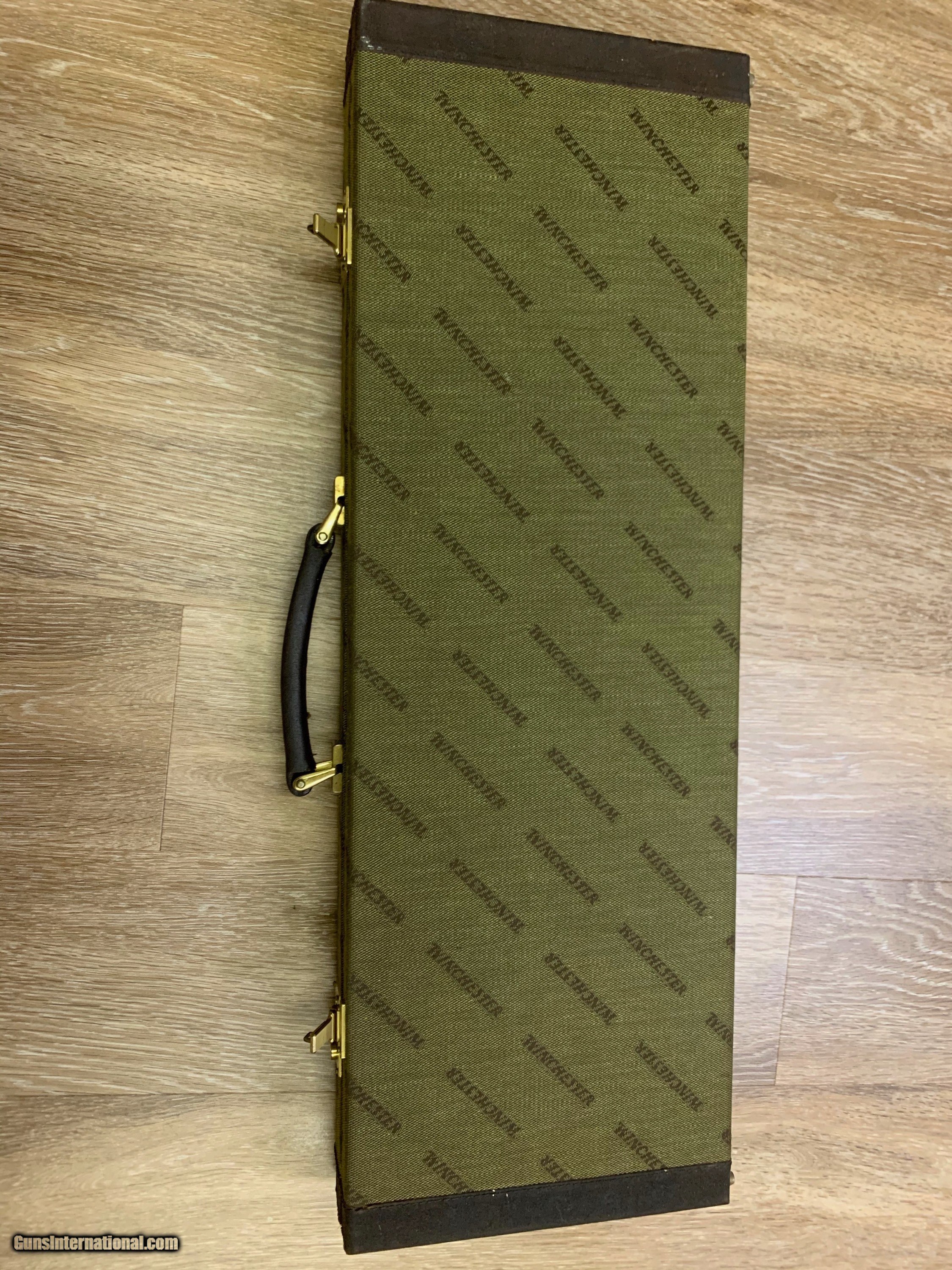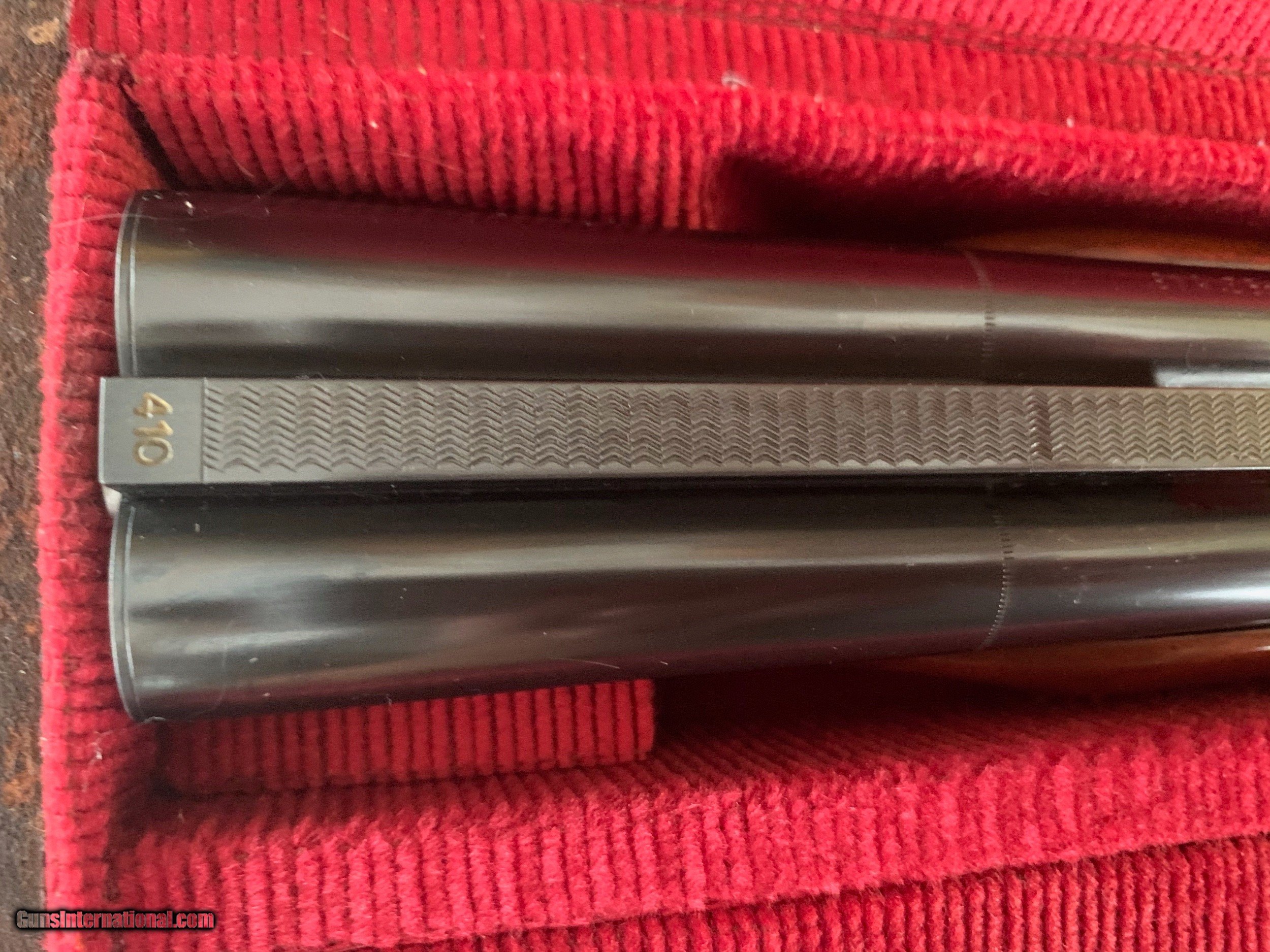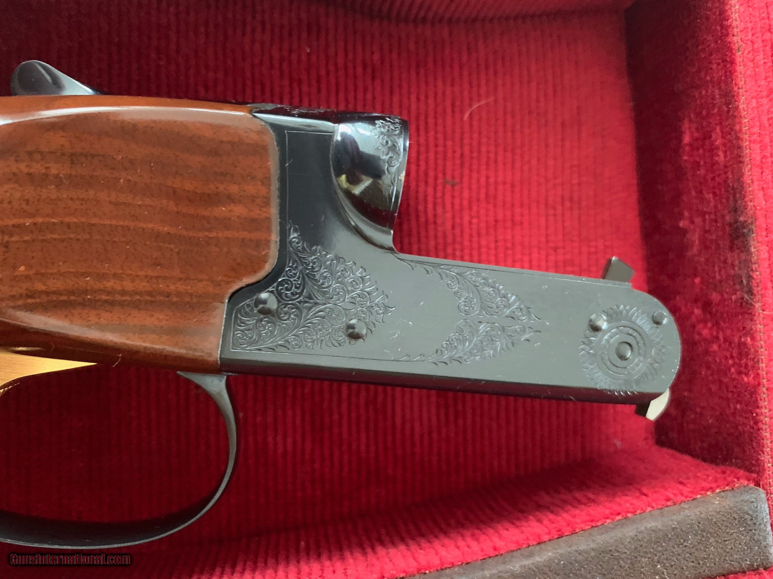 Description: Model 23 Classic 410 bore. Golden Inlay Quail, Winchester Case, excellent all original Condition, with great wood. SOLD Manufacturer: Winchester Model: Classic 23 Serial Number: 41 753 Bore: 410 Chambers: 2 ¾ & 3 in Ejectors: yes Condition: excellent Metal Condition: great Wood Condition: excellent Bore Condition: bright Barrels: 26 Barrel Type: side by side Triggers: single |