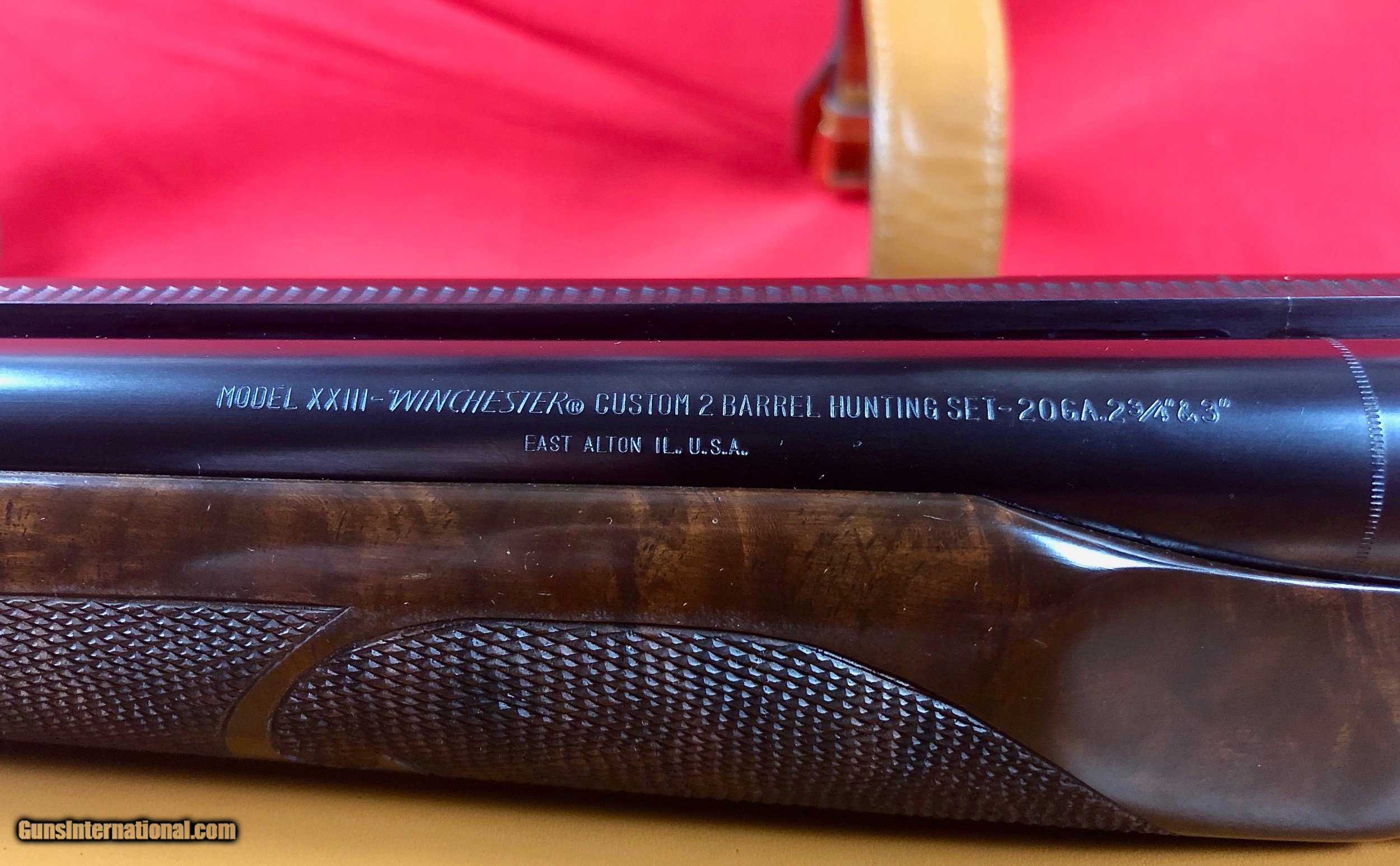 Description: Winchester Model 23 Custom 2 Barrel Hunting Set Barrel Set 1 is 20ga Barrel Set 2 is 28ga Both sets are 25.5 inches long and choked IC/M Excellent condition, has seen light use Fancy "B" checkering DAC is 1.5in DAH is 2.5in LOP is 14in White front bead on both sets 500 sets made in 1986 only Leather case with snap caps and oil bottle Ships to FFL only All firearms should be checked by a gunsmith Call or text Paul at 601-397-8054 SOLD |