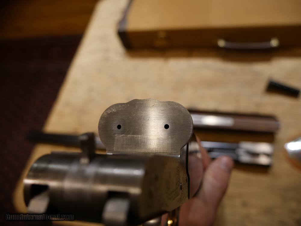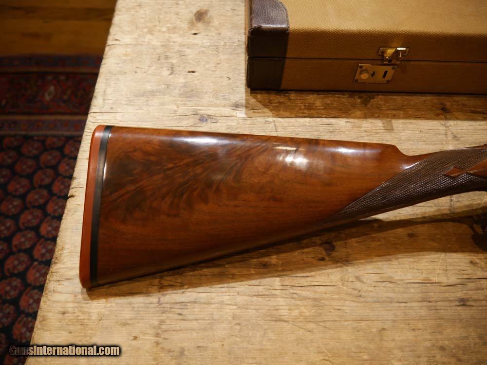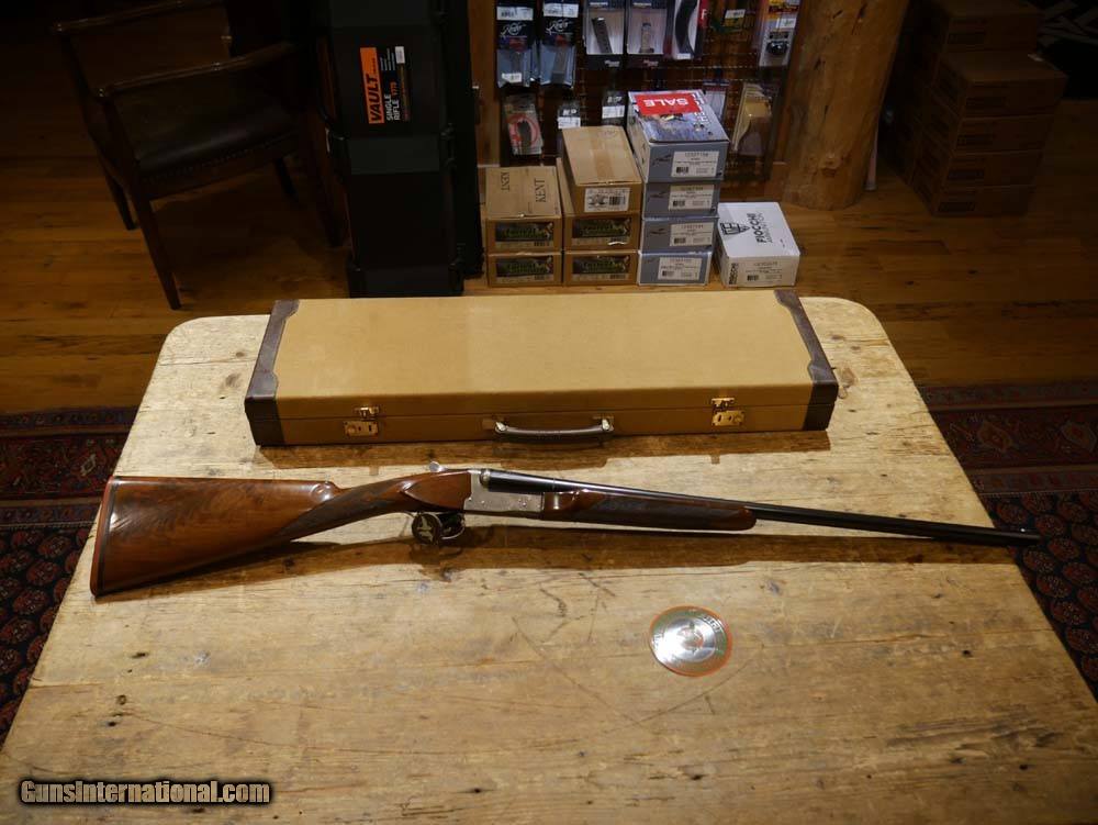 Description: ***THIS IS NUMBER 12 OF 500 BUILT*** Winchester Model 23 Golden Quail side-by-side shotgun in 28 gauge. This was a limited time build in 1985 of 500 per gauge. 25 1/2" barrels choked IC/M. Coin finished receiver with gold quail inlay on floorplate. Beavertail forearm, straight grip English stock. With original case. This gun has been lightly used but not at all abuse. Excellent overall condition. Light handling/safe marks, see pics for details. Shiny bores. Strong bluing with only 1 small rust pit on underside of right barrel, shown in pics. This is an incredible chance to buy a shootable example of an extremely rare 28ga double gun! Please call or email with any questions. Must ship to FFL. ***$35 SHIPPING AND INSURANCE*** ***NO CREDIT CARD FEES*** ***NO WARRANTIES IMPLIED OR EXPRESSED*** SOLD Manufacturer: WINCHESTER Model: 23 Golden Quail Condition: USED, EXCELLENT Gauge Info: 28 |